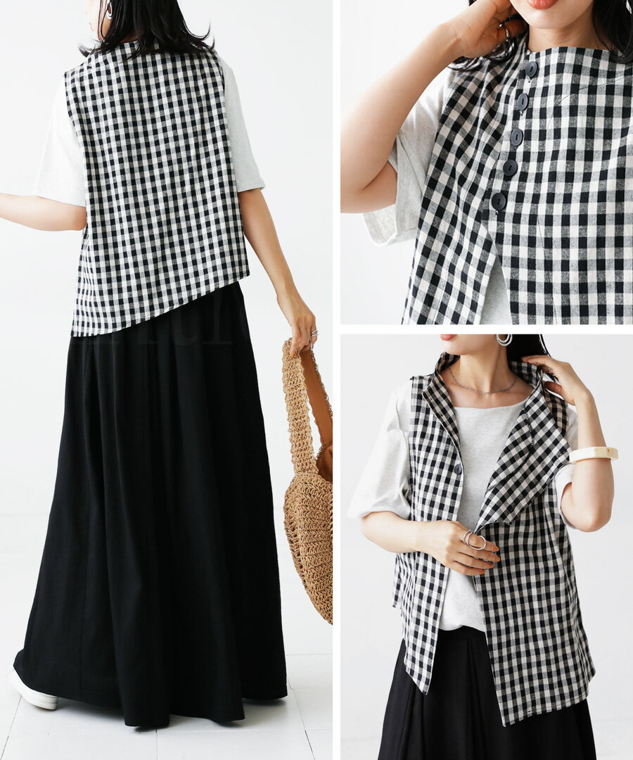 ベスト レディース トップス チェック柄 ノースリーブ 送料無料・(50)メール便可