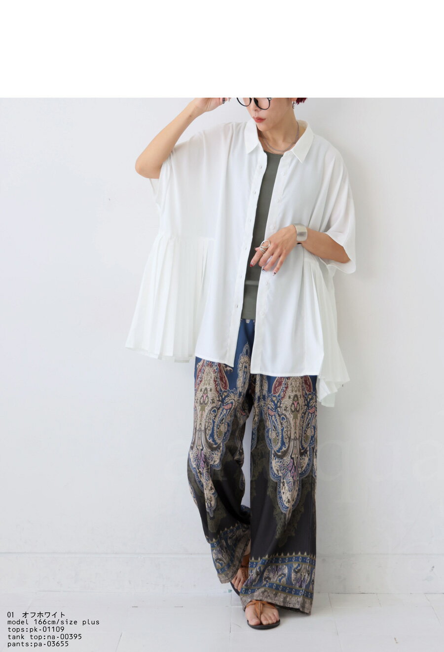 170センチ、ガッシリ体型です。袖や裾の丈感やフリルが体型を拾わずカワイイです。この夏とても重宝しそうなので色違いも購入しようと思います。