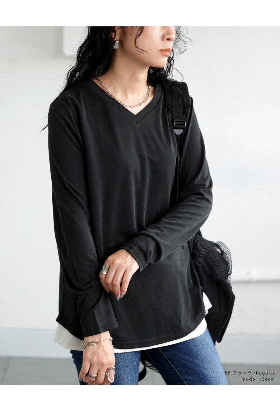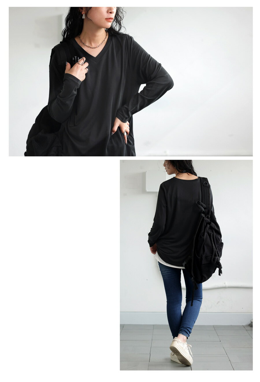 VネックロングTシャツ Tシャツ レディース トップス 送料無料・9月24日10時〜発売。(80)メール便可