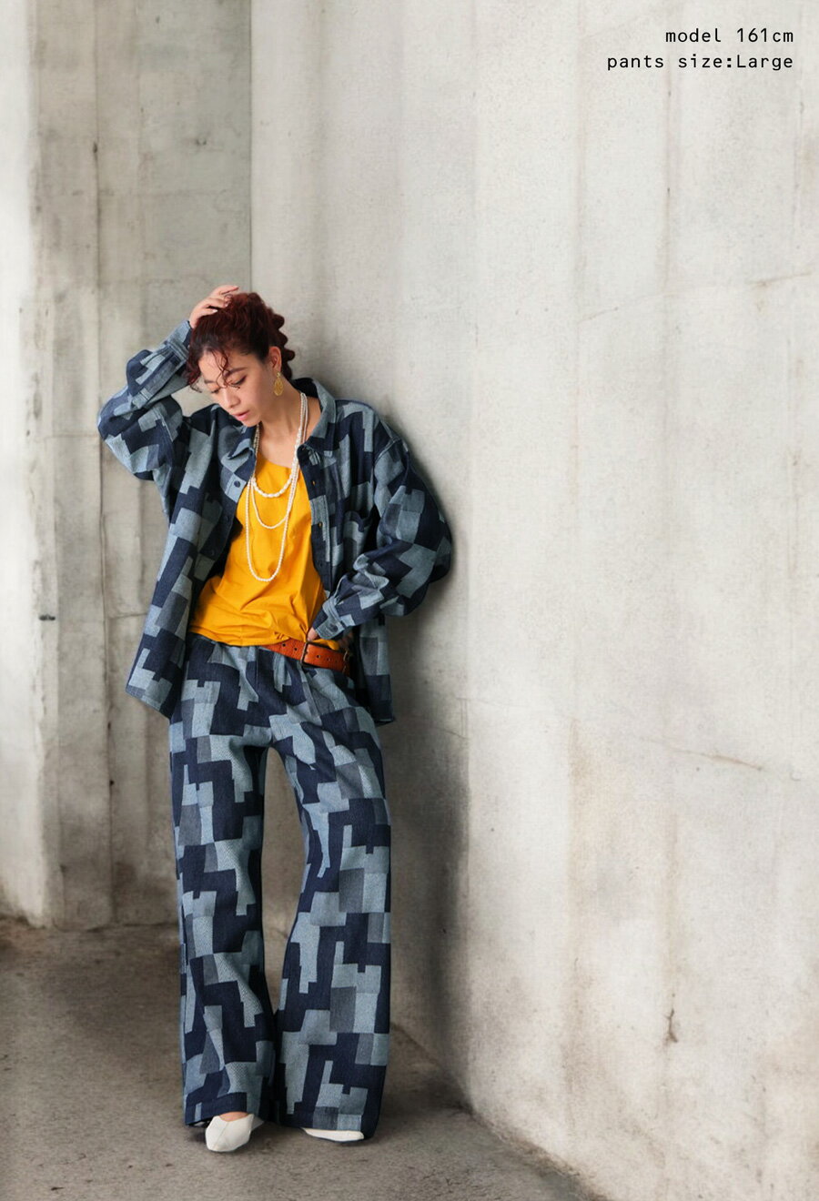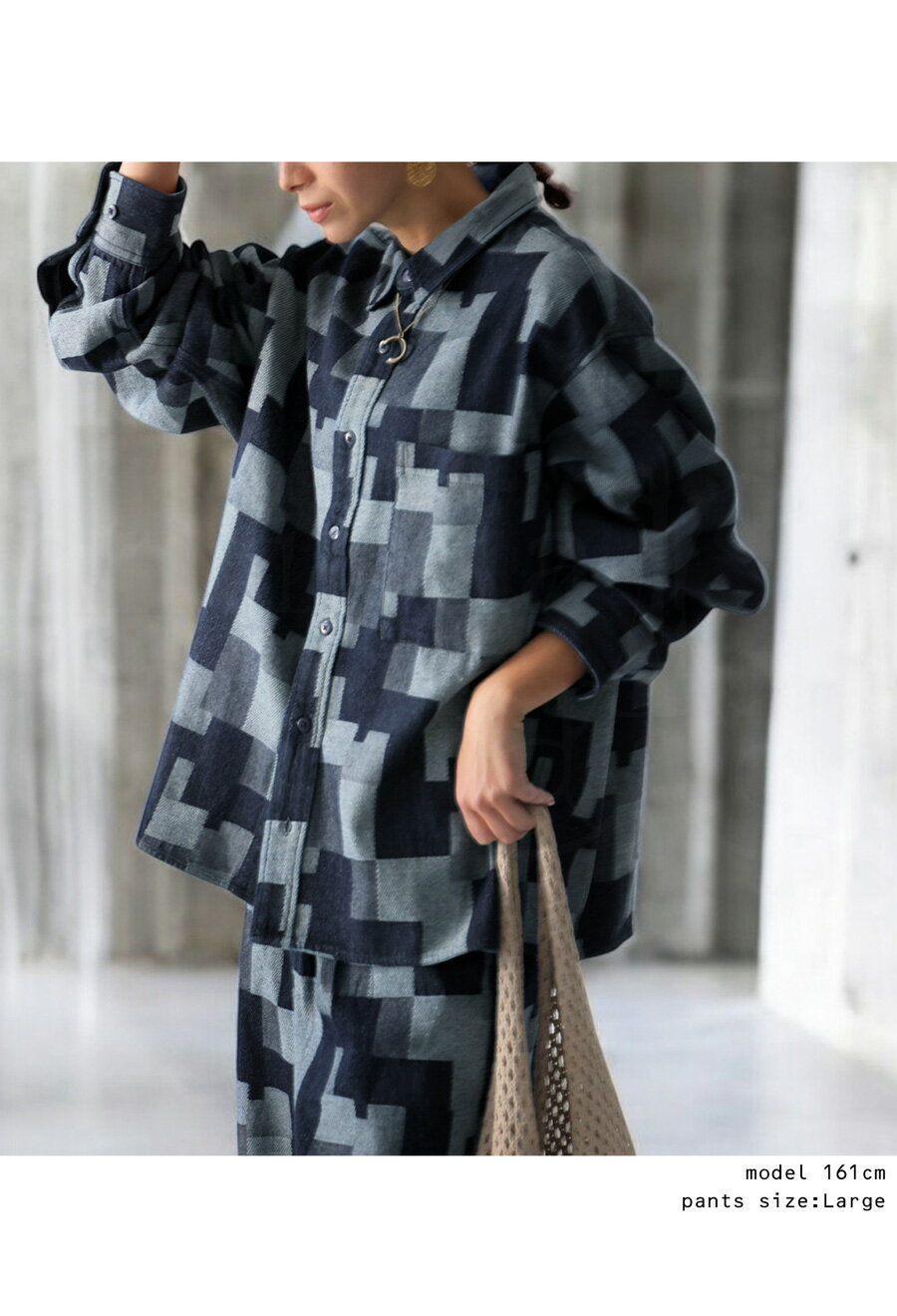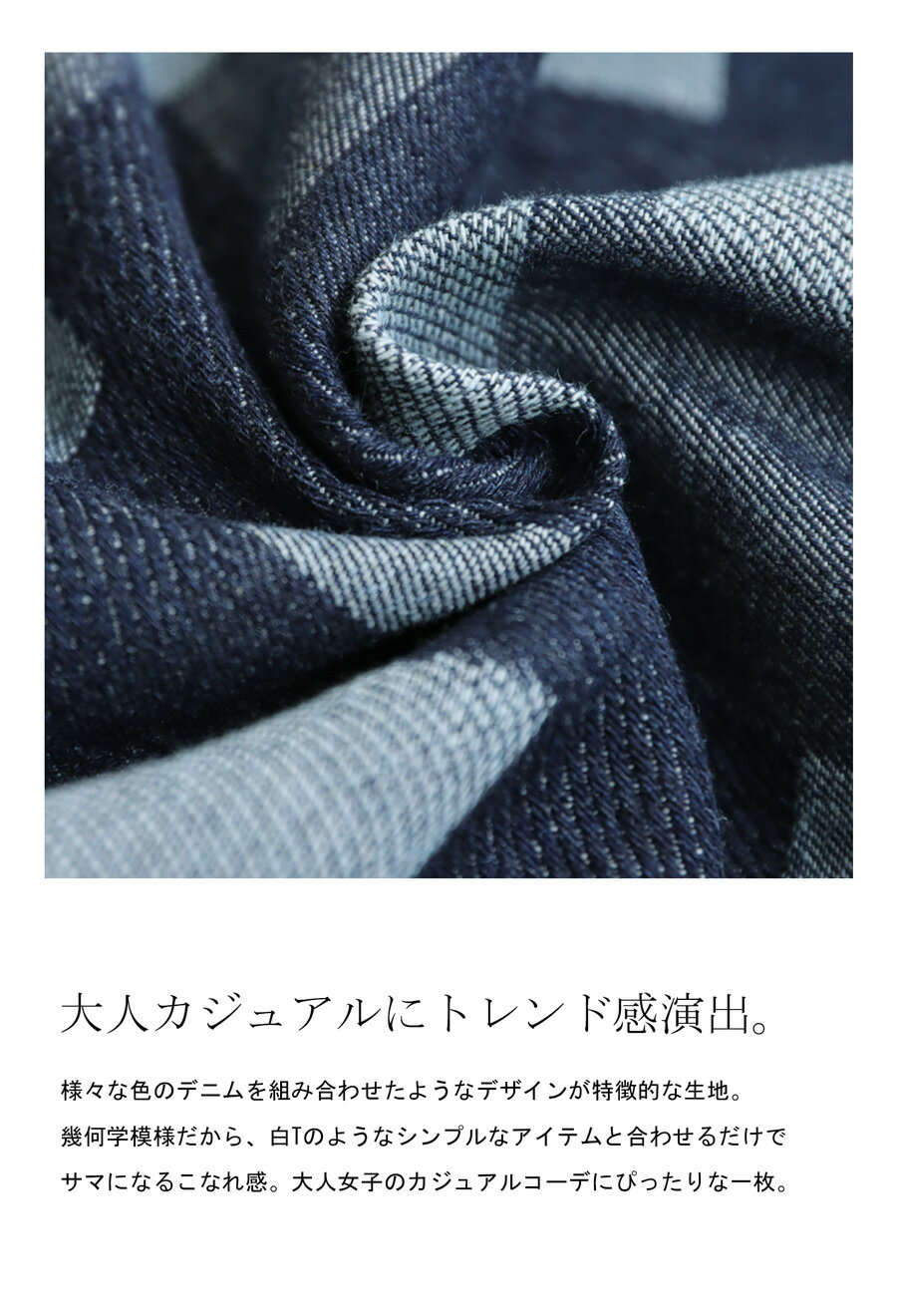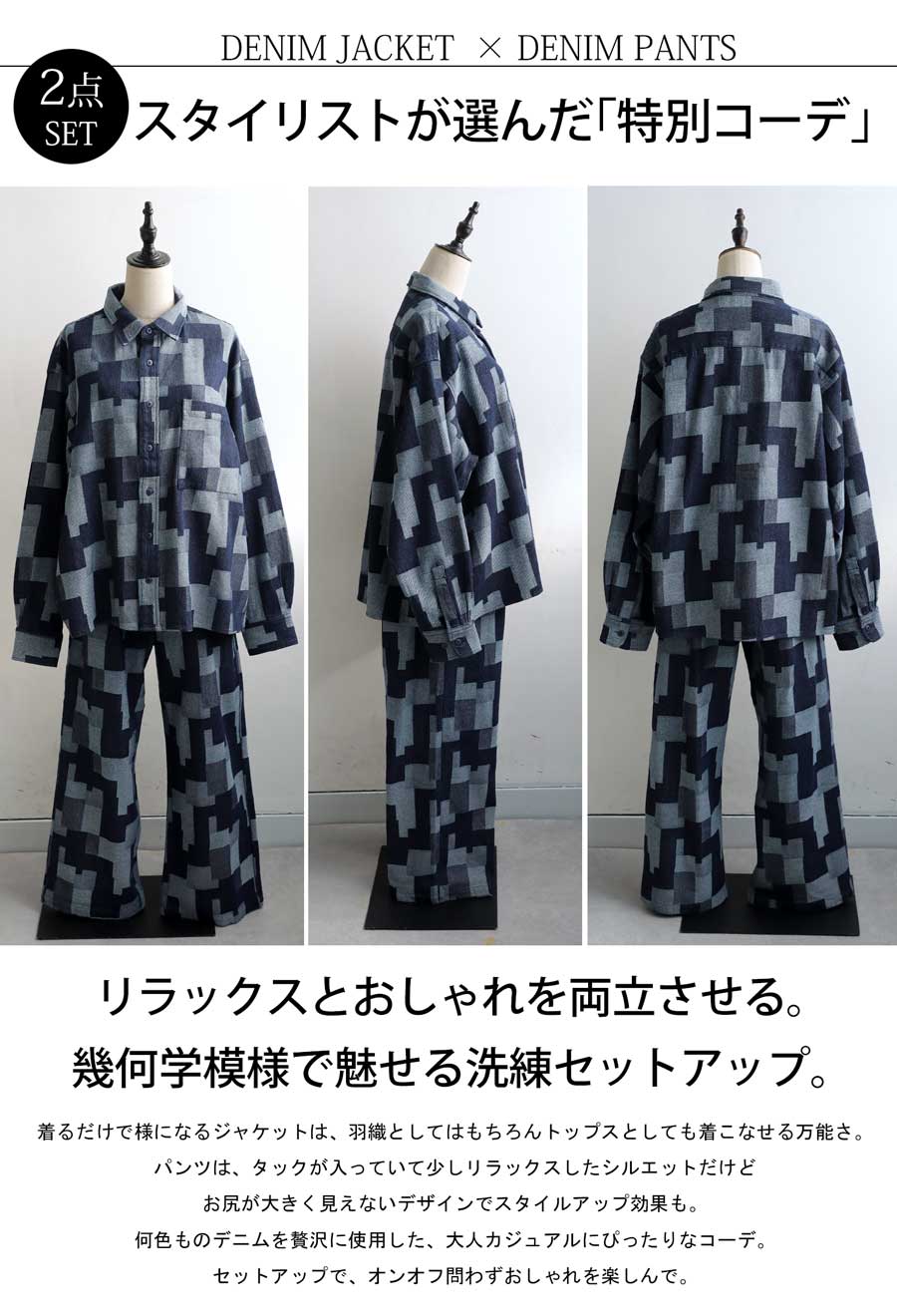 【プロ監修!お得コーデセット・予約:1月下旬納期】幾何学柄 デニムシャツ デニムパンツ レディース 送料無料・1月19日10時〜発売。メール便不可(返品・キャンセル・交換不可)