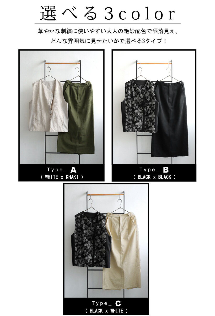 【プロ監修!お得コーデセット・予約:1月下旬納期】刺繍ベスト ロングスカート レディース 送料無料・1月19日10時〜発売。メール便不可(返品・キャンセル・交換不可)
