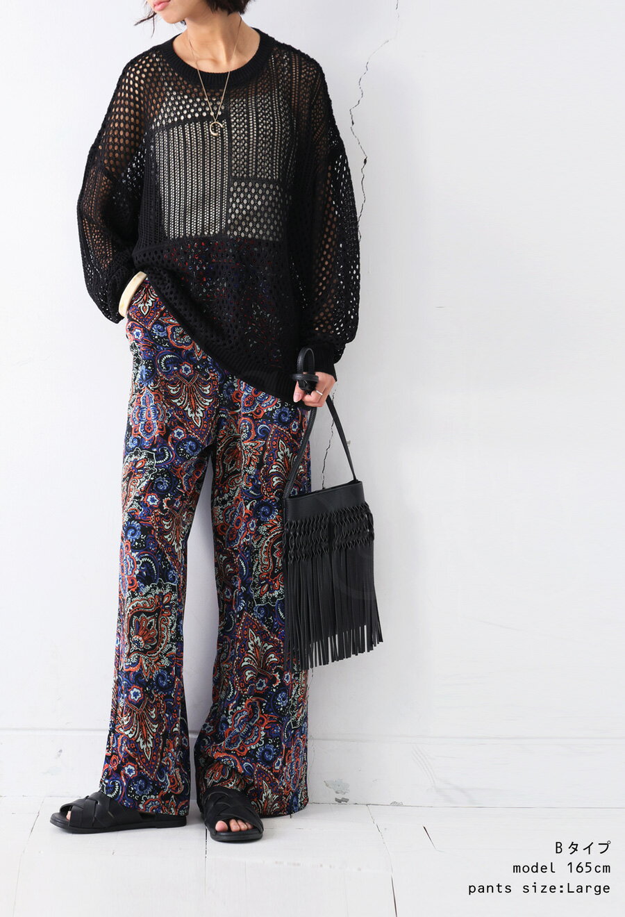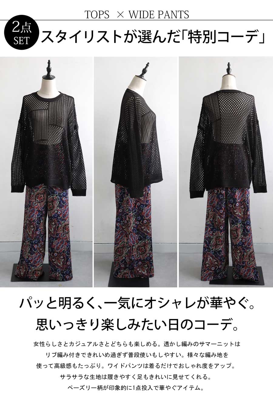 【プロ監修!お得コーデセット・予約:1月下旬納期】透かし編みニット 柄パンツ レディース 送料無料・1月19日10時〜発売。メール便不可(返品・キャンセル・交換不可)
