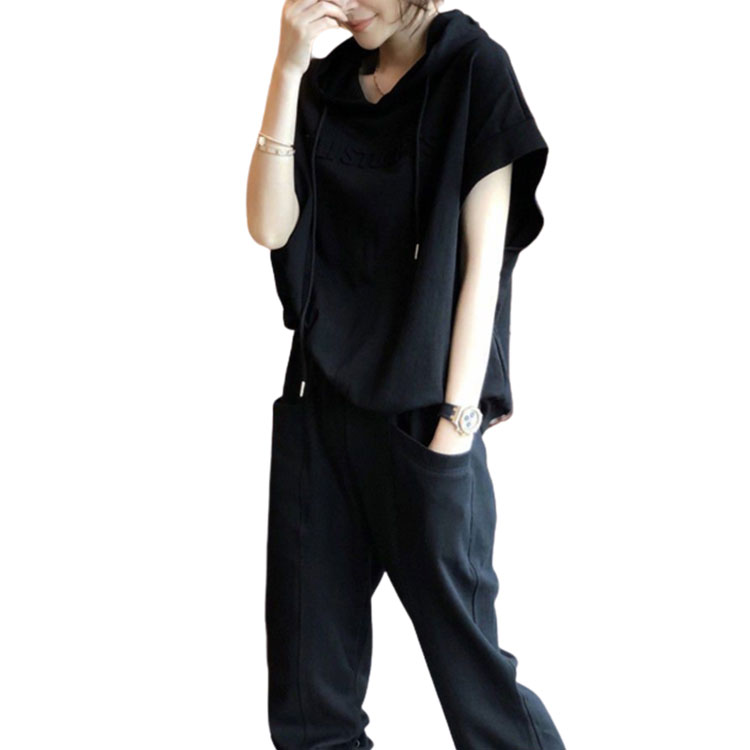 カジュアルセットアップ レディース スウェット 2点 上下セット 半袖 おしゃれ 夏 ジャージ フード付き スウェットパンツ 無地 ゆったり 着痩せ 体型カバー 春秋 大きいサイズ シンプル 部屋着 運動着 スポーツ お出かけ ギフト 送料無料