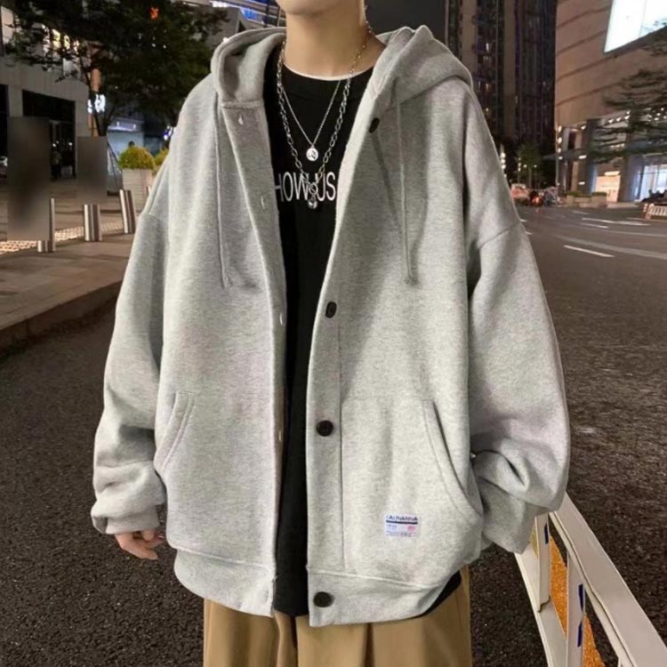原宿風 ビッグシルエット 裏起毛 パーカー 春 アウター カーディガン メンズ ボタン開き フード付きパーカー 大きサイズ ストリート系 学生 通学 中学生