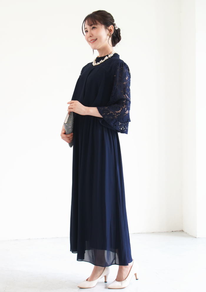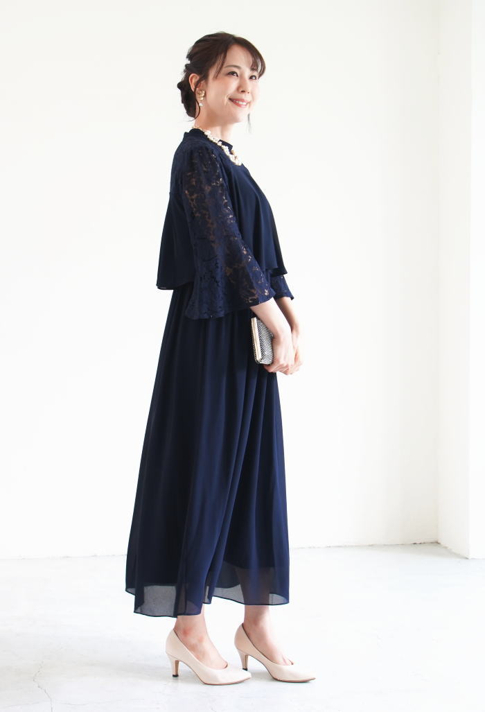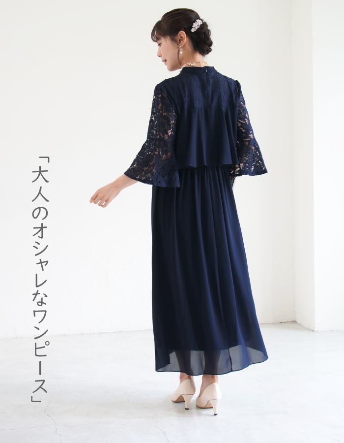 フォーマルドレス 50代 結婚式 ワンピース ロング丈 パーティードレス ロング フォーマル 親族 大きいサイズ 大きい ネイビー 黒 ロングドレス 袖あり 服装 成人式 謝恩会 同窓会 レース お呼ばれ ミセス 20代 30代 40代 60代 ママ 冬 秋 春 夏