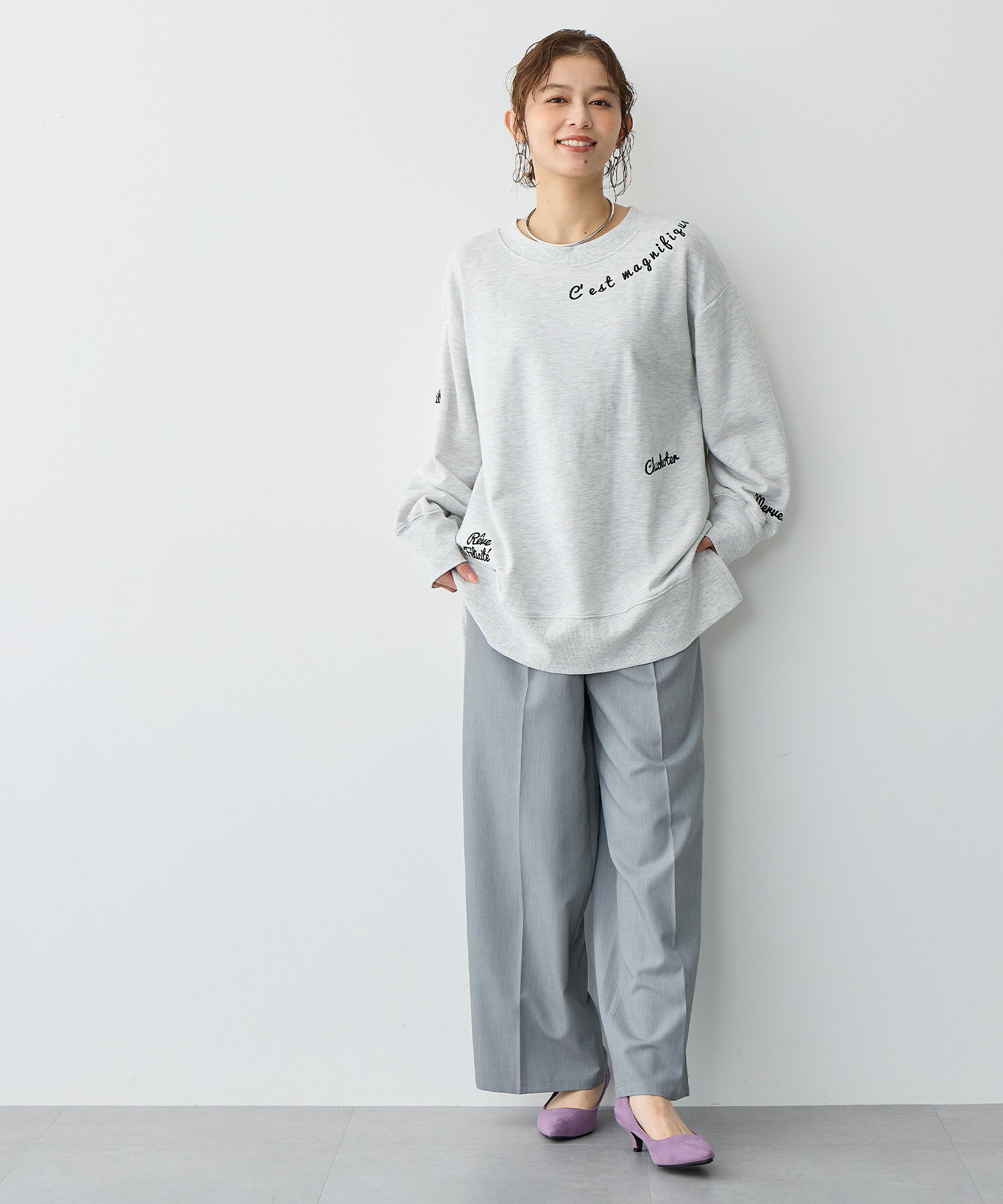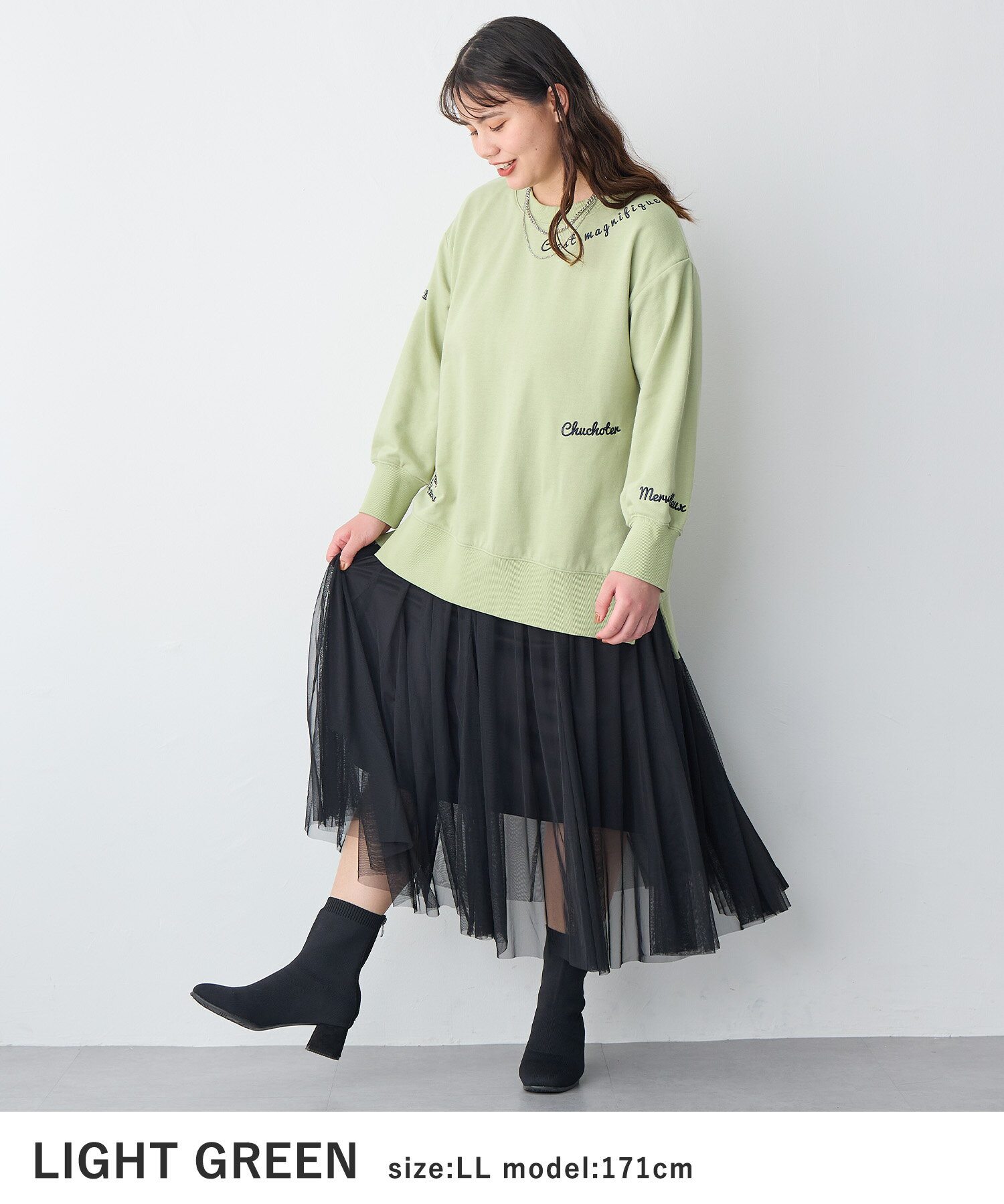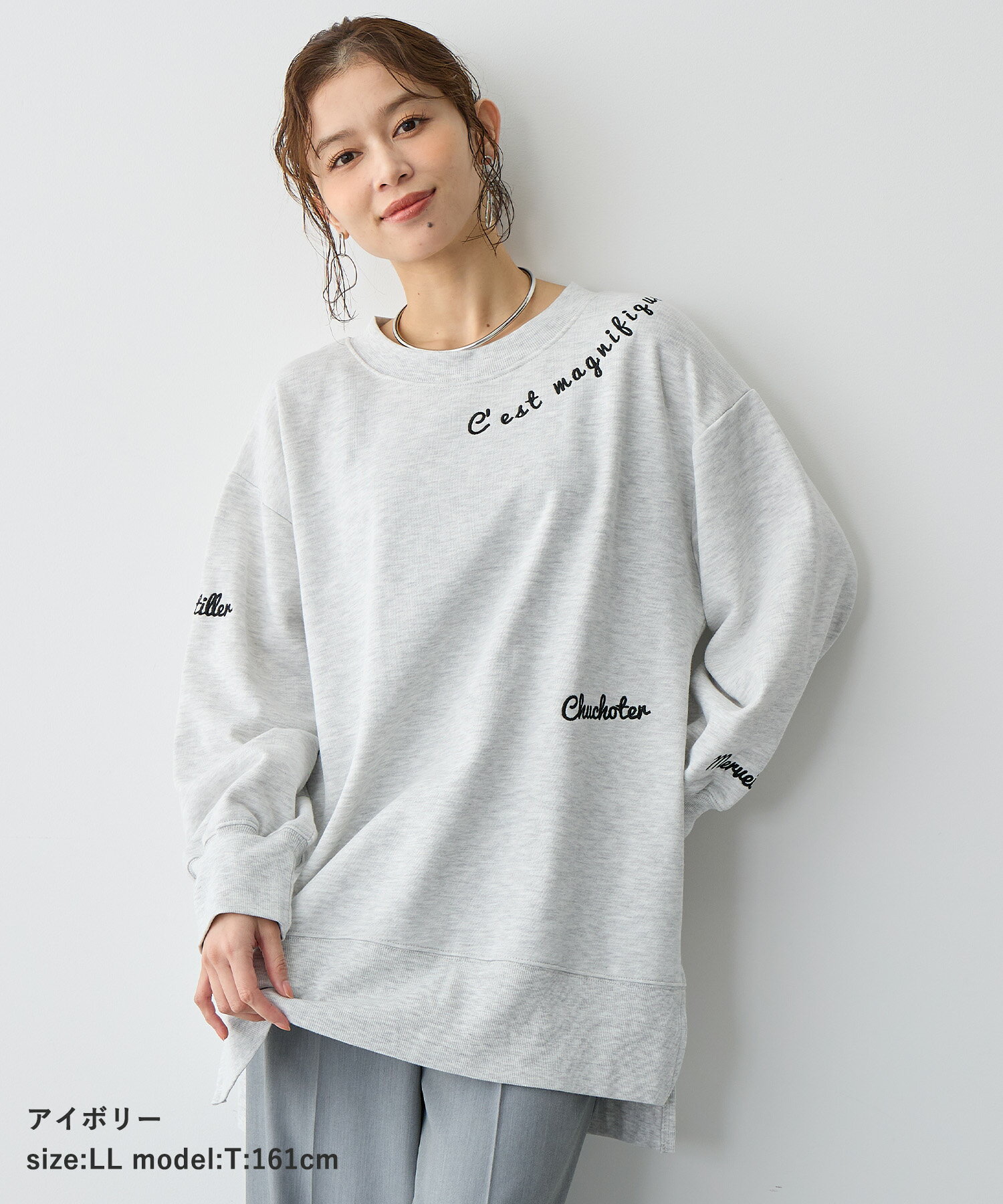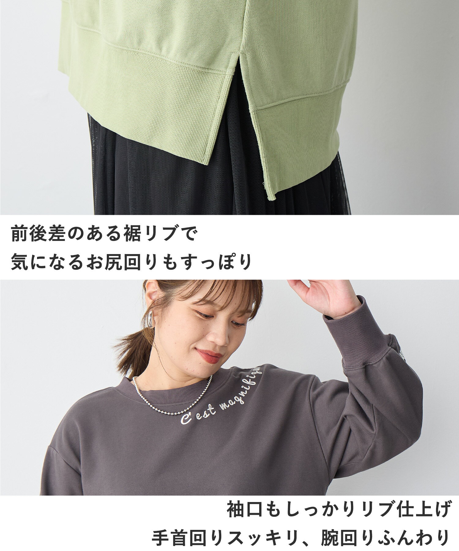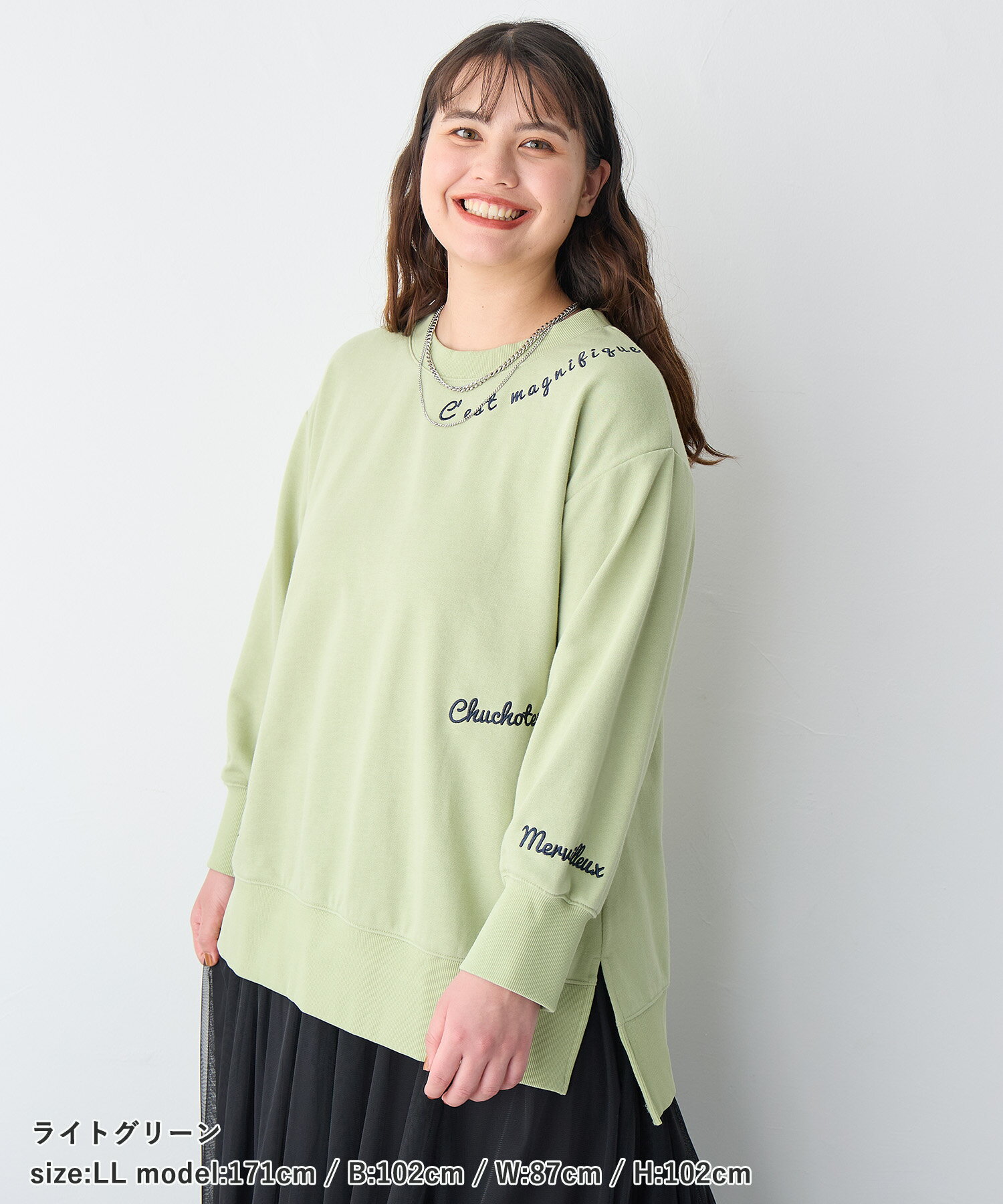 【OPEN記念!最大20%OFFクーポン】\楽天SS期間中ポイント10倍&送料無料!~9/11(水)9:59迄/ビッグシルエット裏毛刺繍プルオーバー anyfee エニフィー 大きいサイズ プラスサイズ レディース LL 3L 4L 5L ぽっちゃり ゆったり 体型カバー