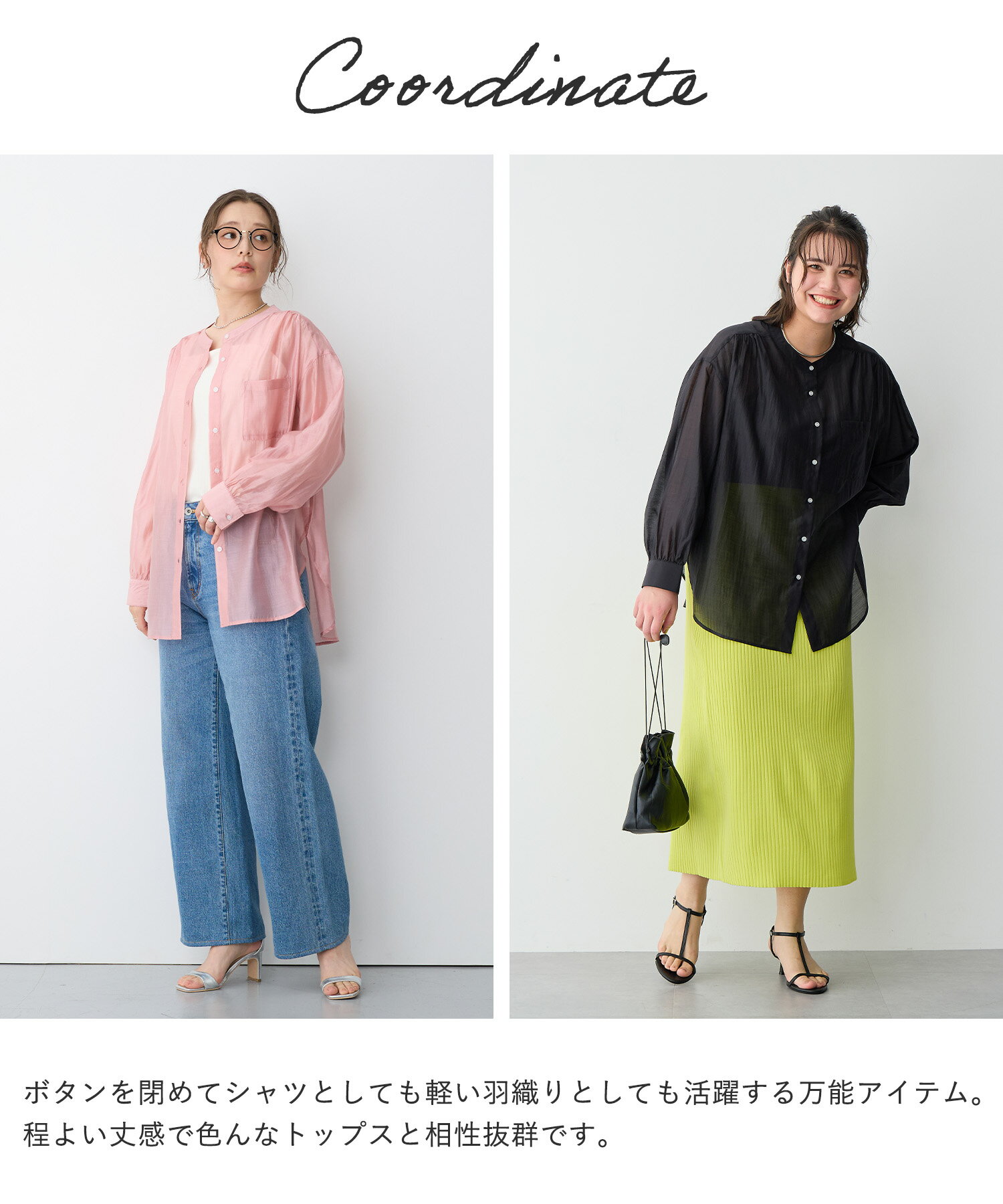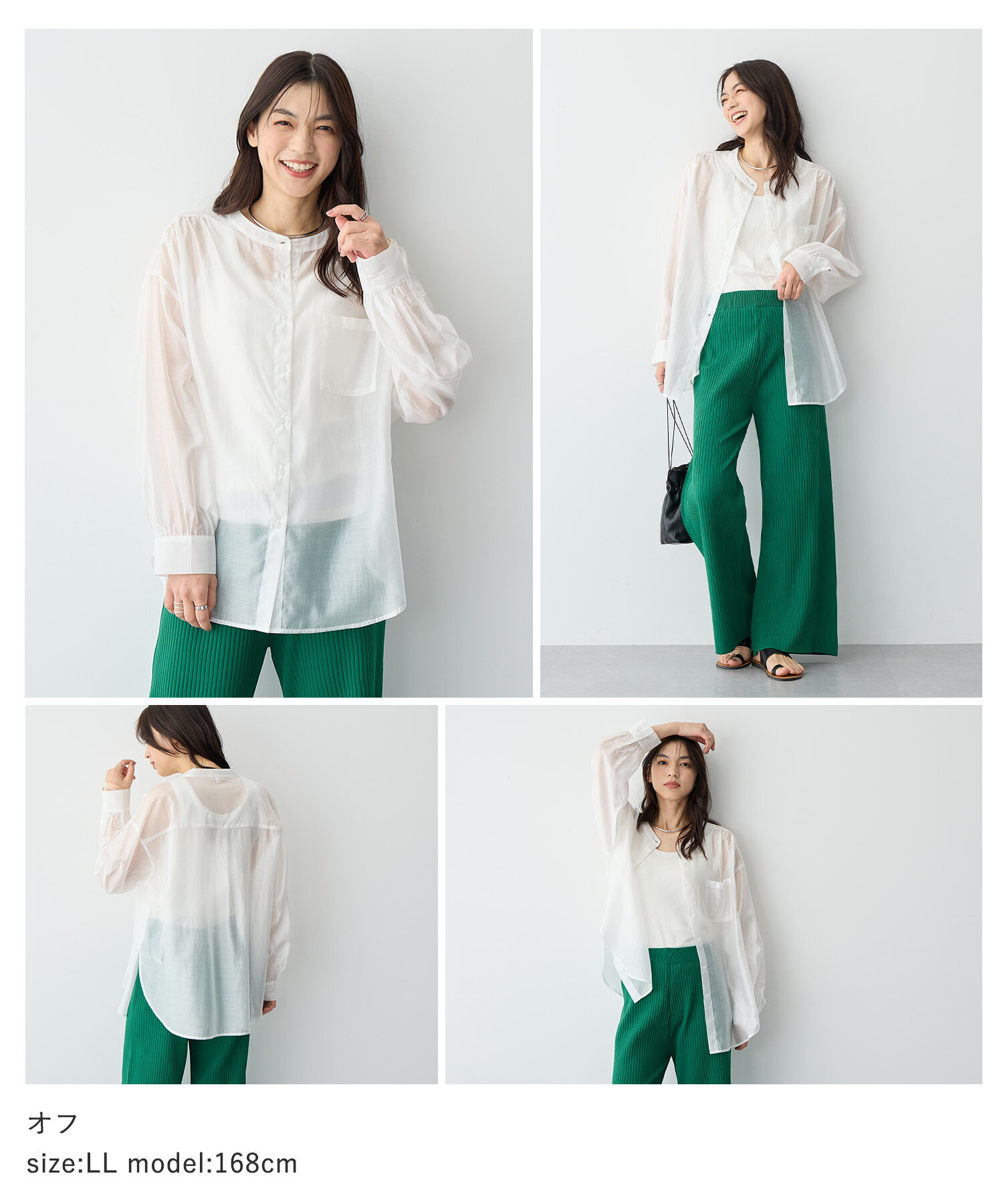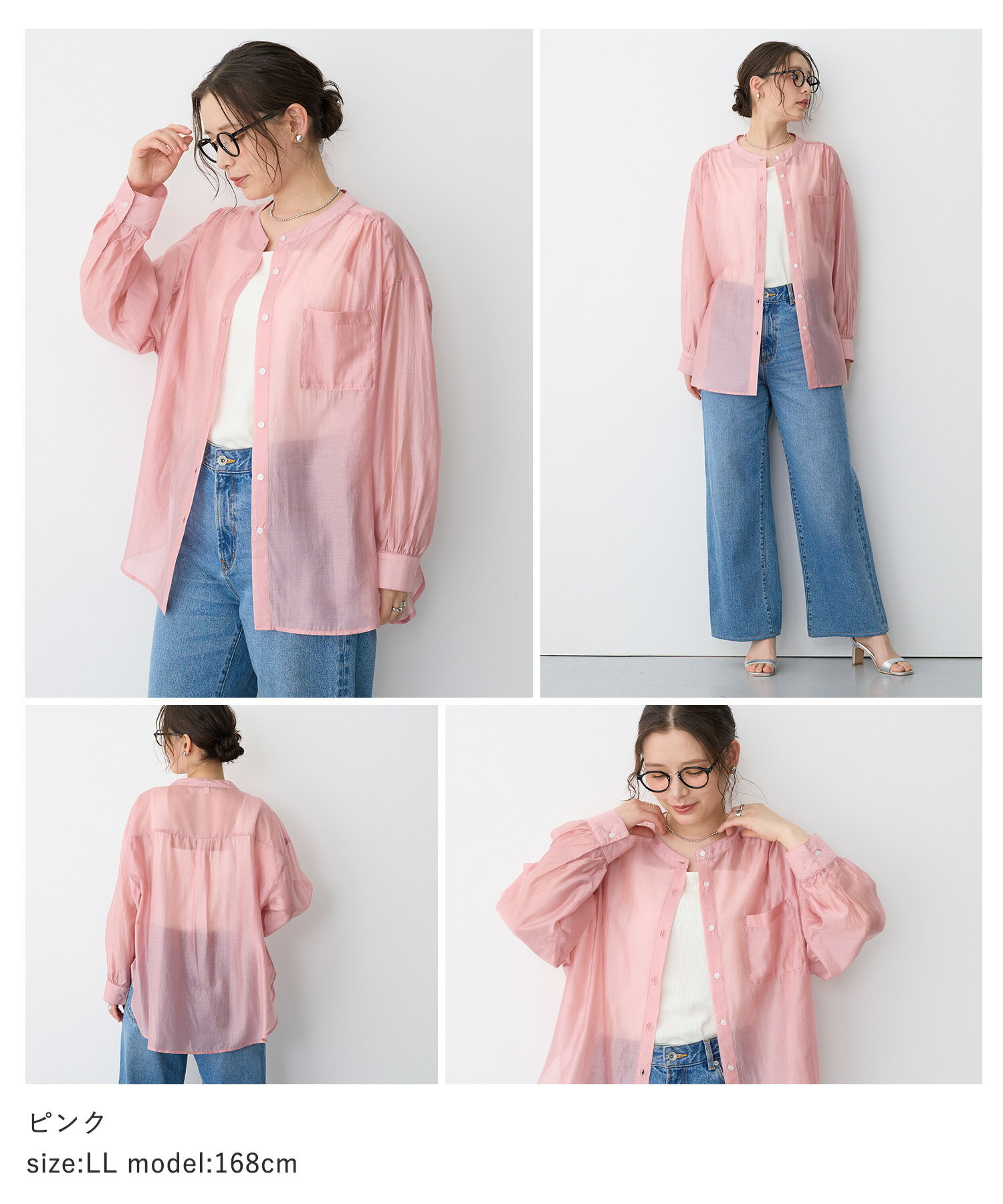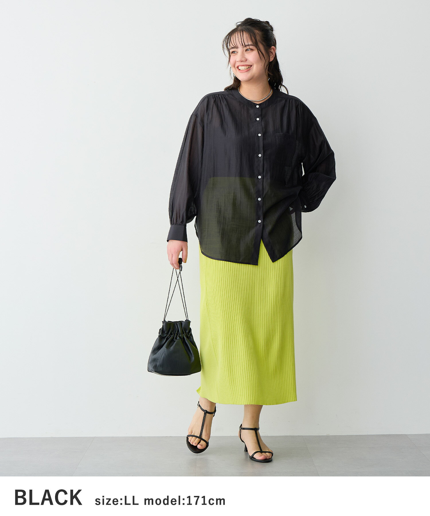 【楽天スーパーSALE 限定クーポン 送料無料 ポイント5倍 3/4 20:00~3/11迄】シアーバンドカラーシャツ anyfee エニフィー 大きいサイズ プラスサイズ レディース LL 3L 4L 5L ぽっちゃり ゆったり 体型カバー