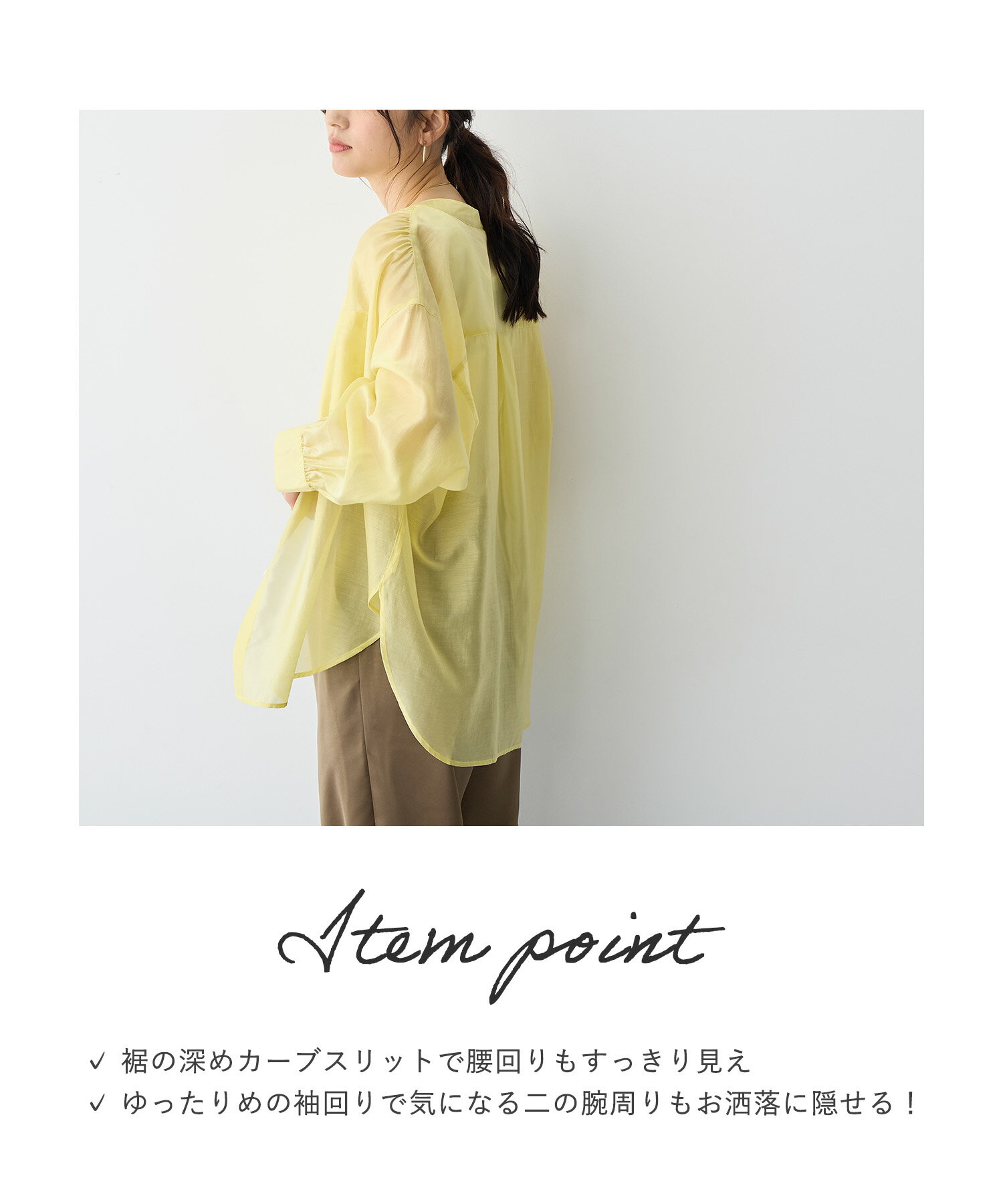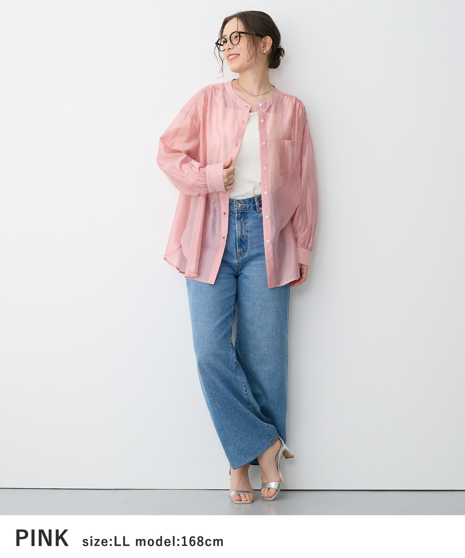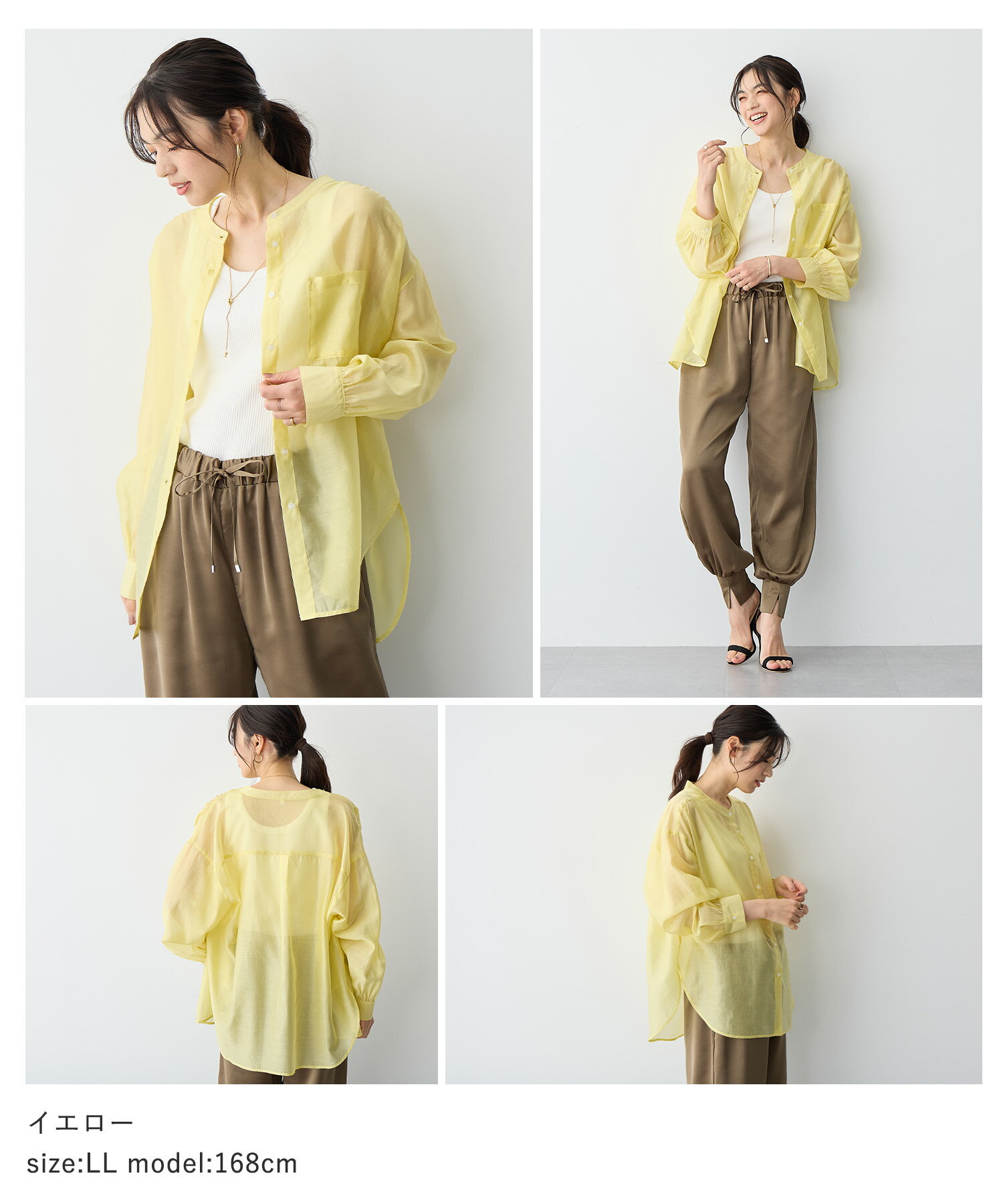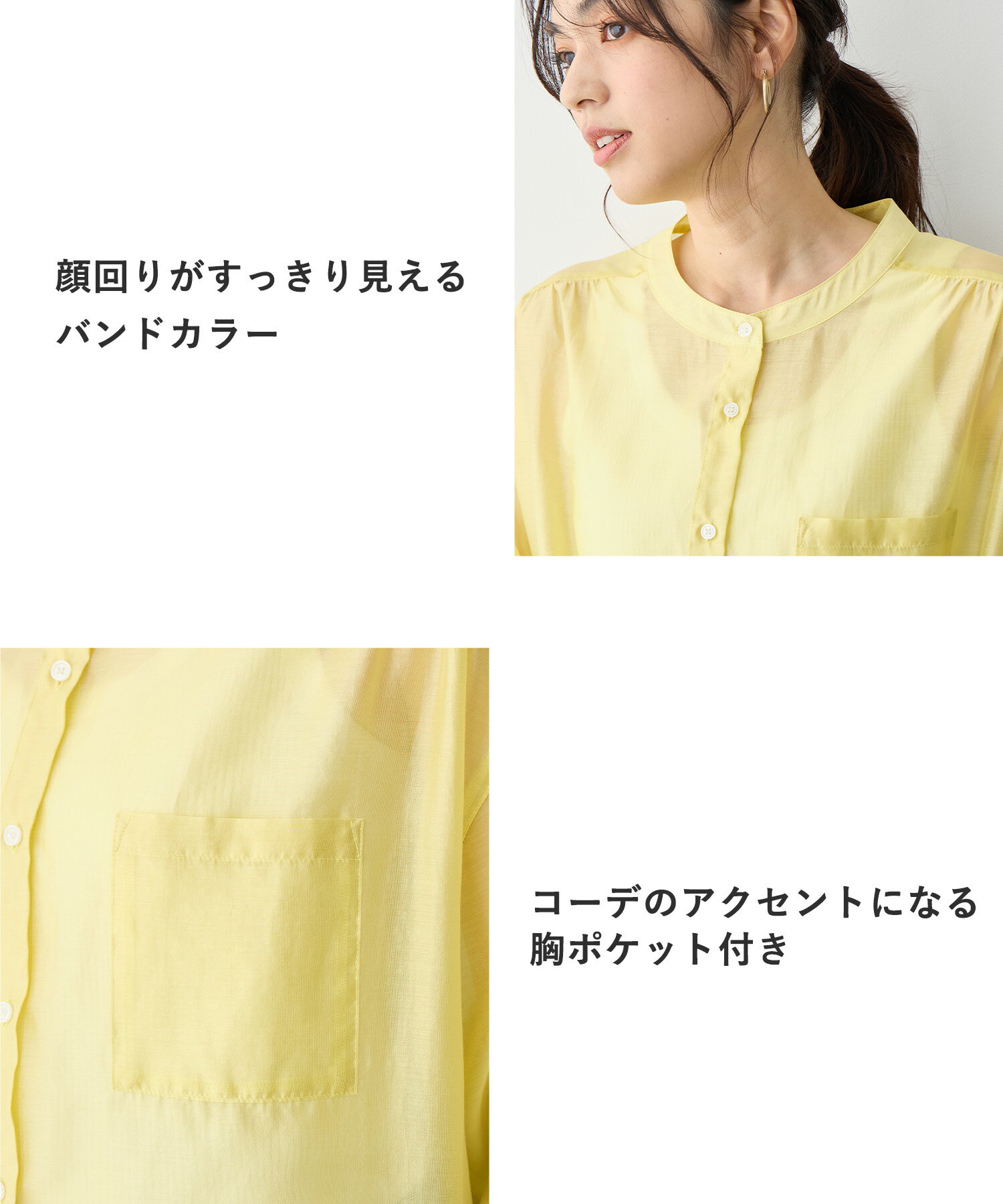 【楽天スーパーSALE 限定クーポン 送料無料 ポイント5倍 3/4 20:00~3/11迄】シアーバンドカラーシャツ anyfee エニフィー 大きいサイズ プラスサイズ レディース LL 3L 4L 5L ぽっちゃり ゆったり 体型カバー