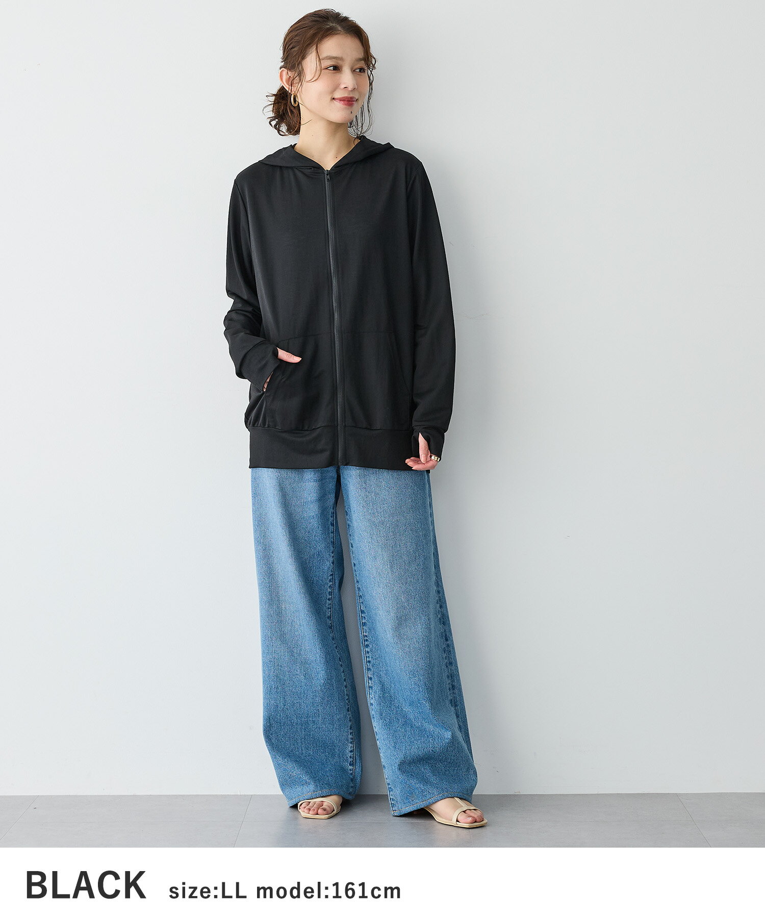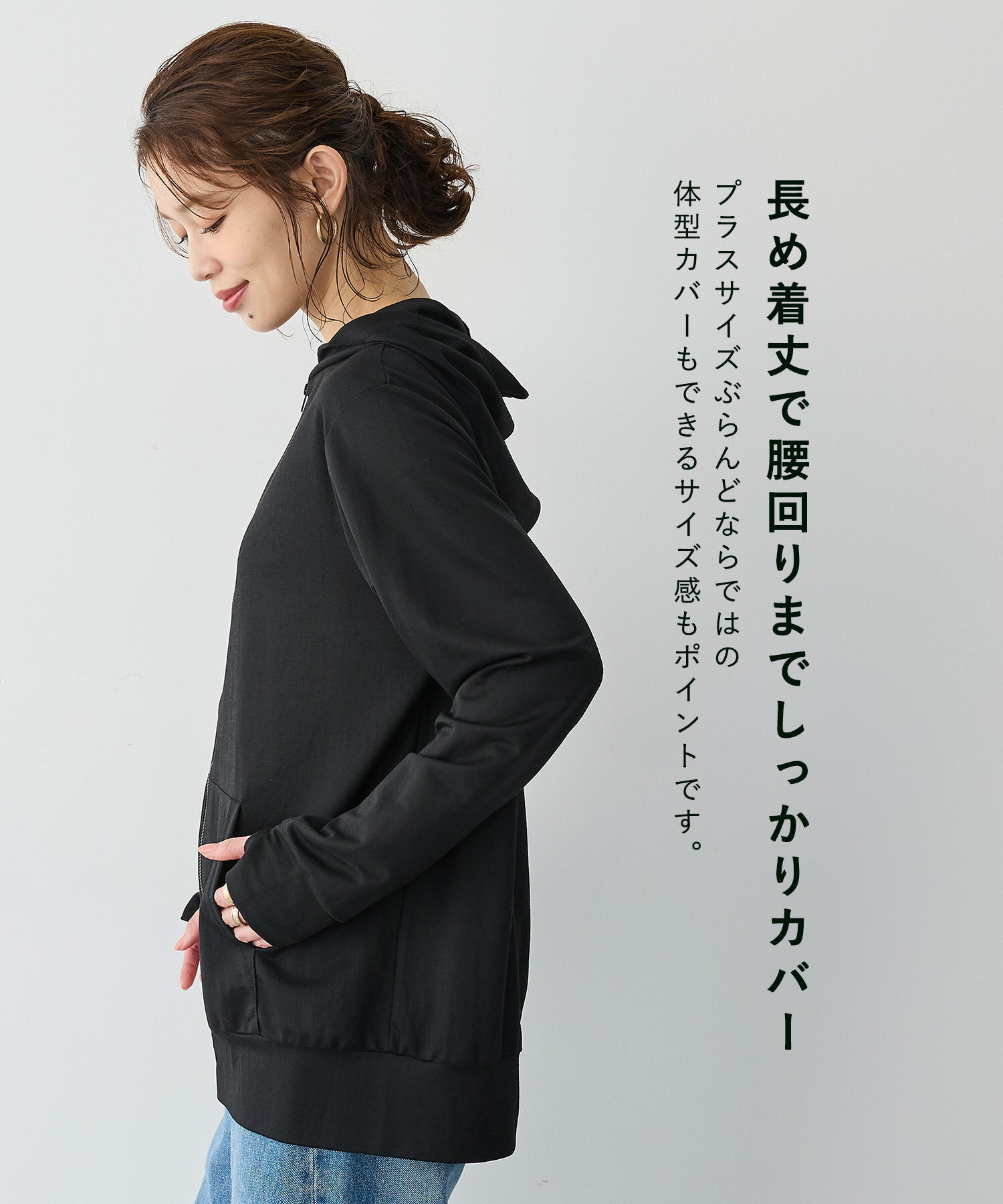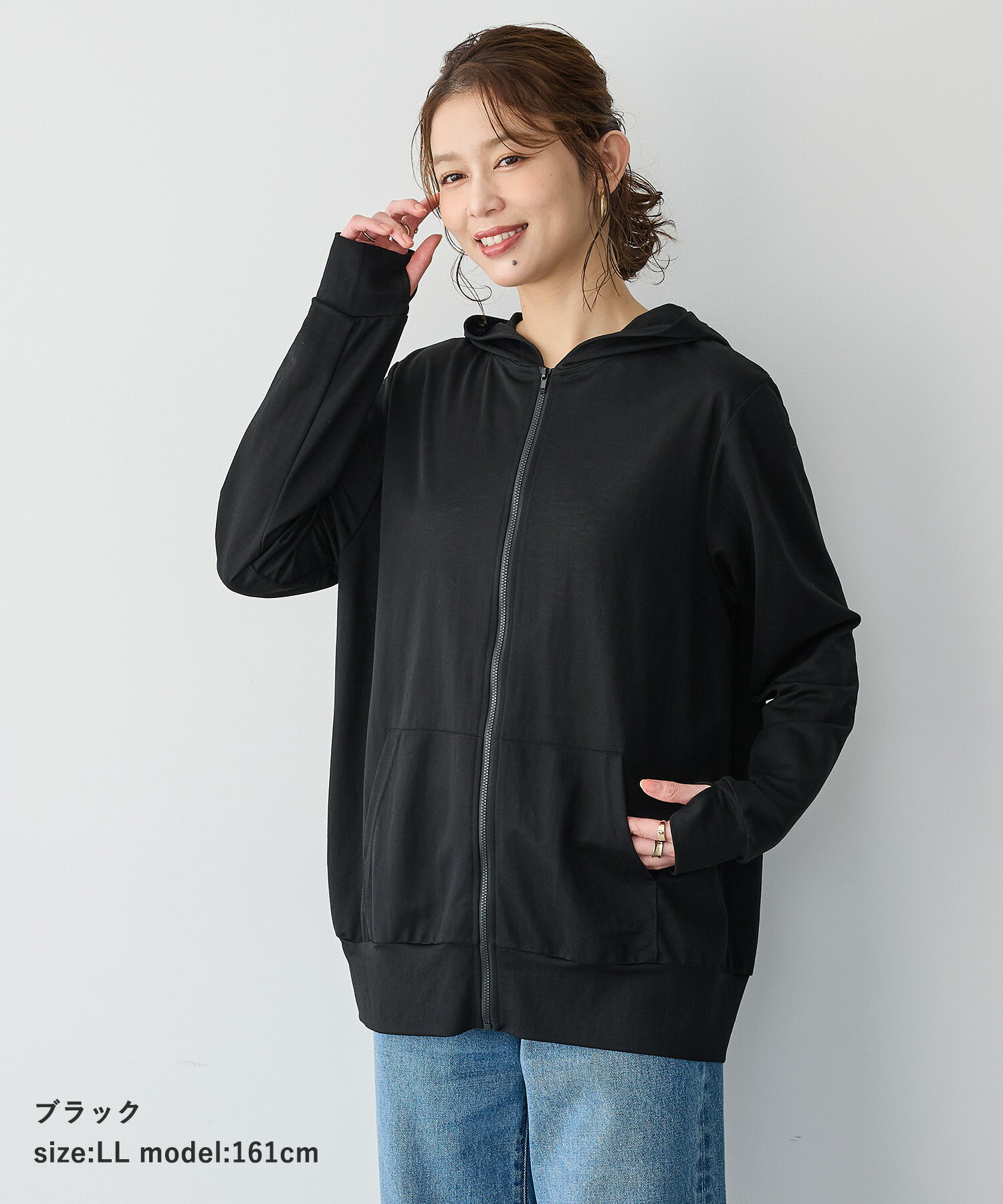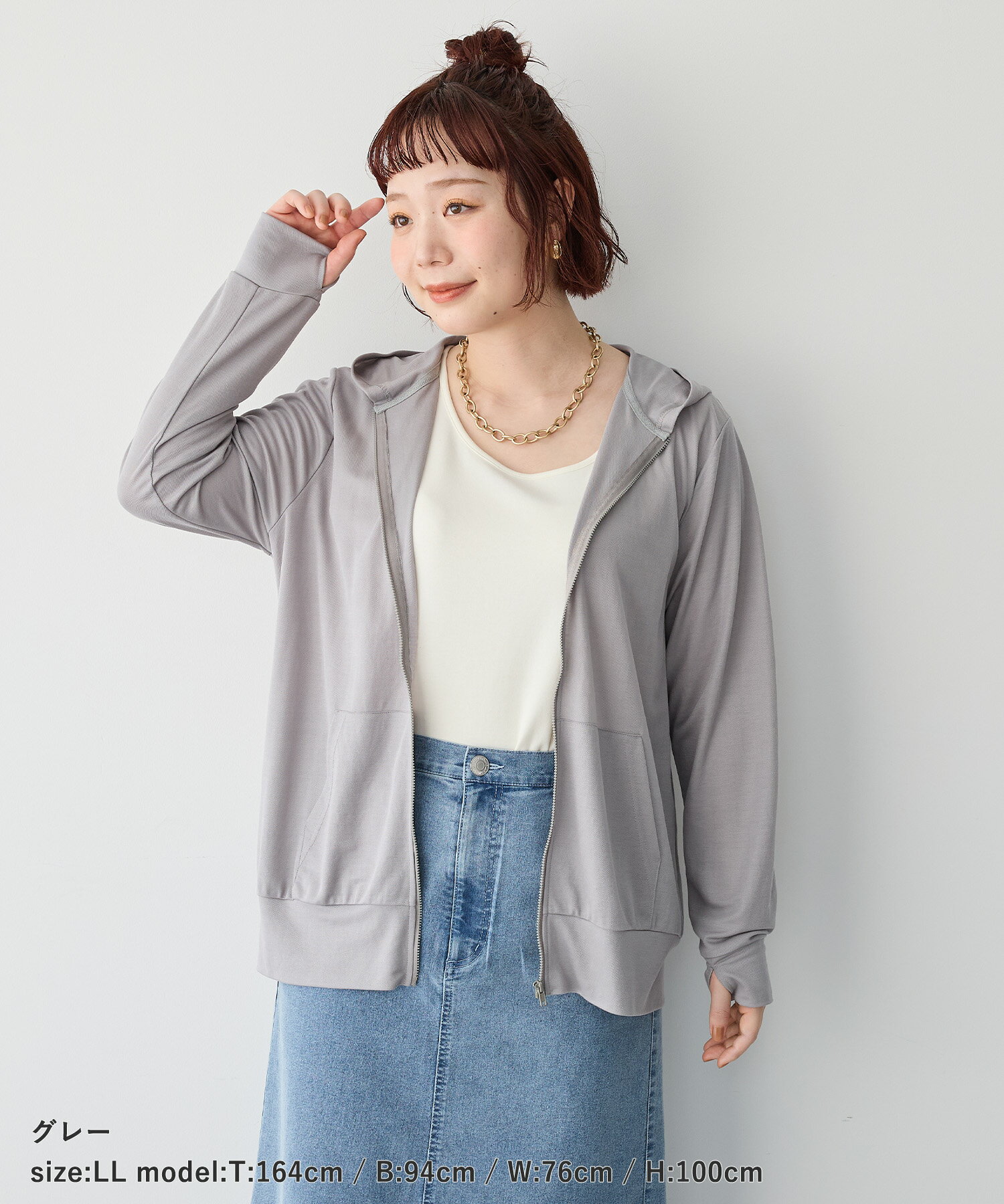 【お買い物マラソン SALE ポイント5倍 30%OFFクーポン 4/11 9:59迄】接触冷感・日陰を着るUVカットパーカー anyfee エニフィー 大きいサイズ プラスサイズ レディース LL 3L 4L 5L ぽっちゃり ゆったり 体型カバー