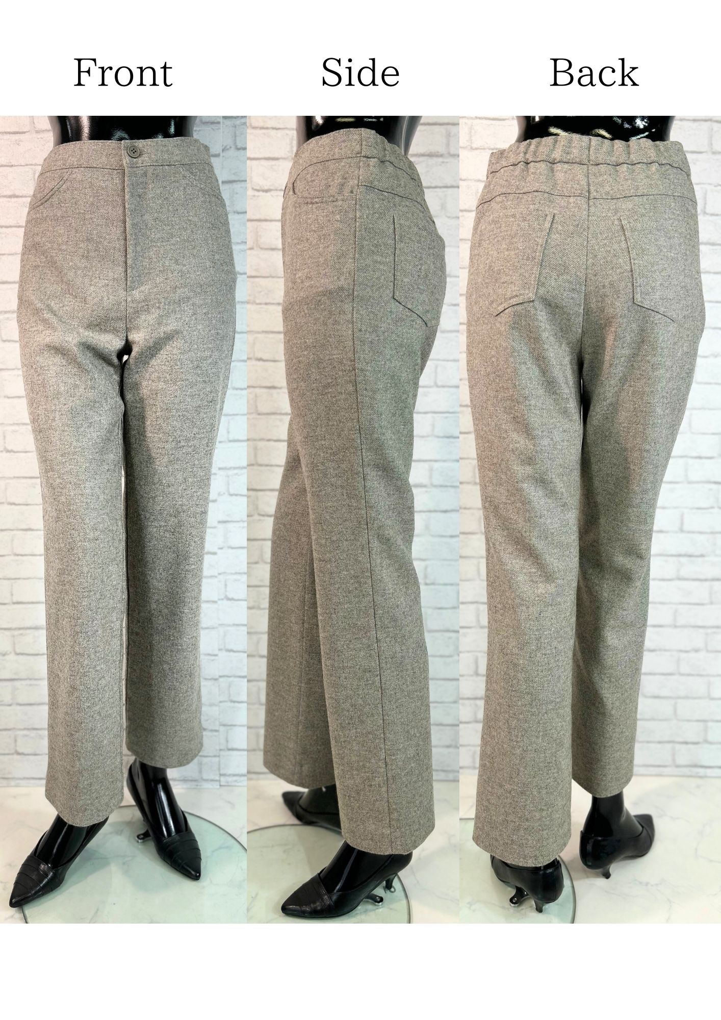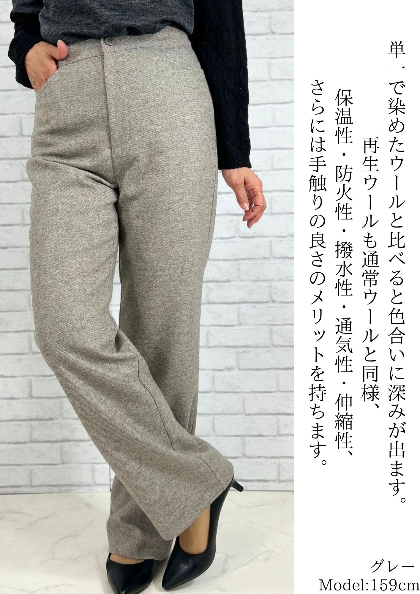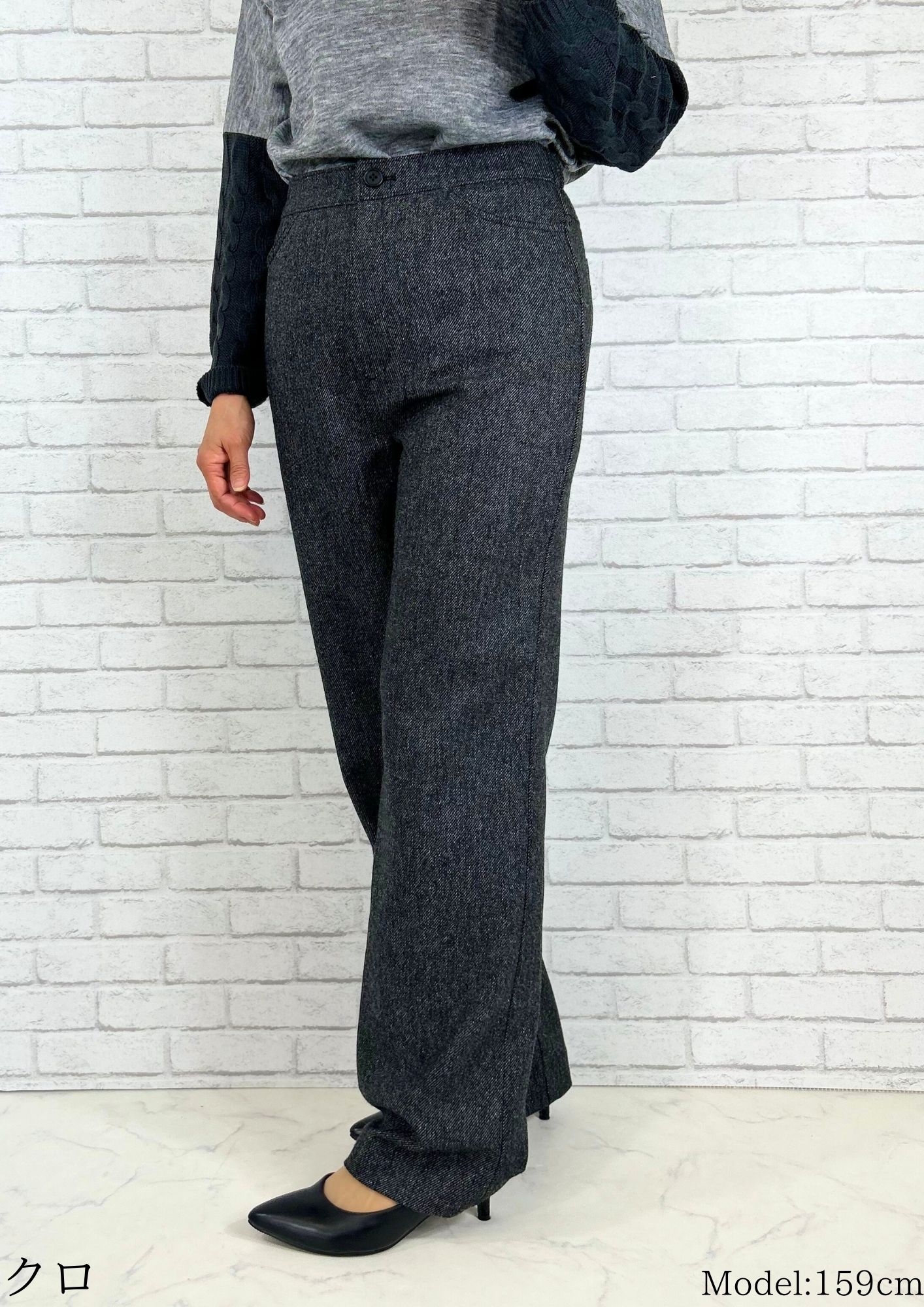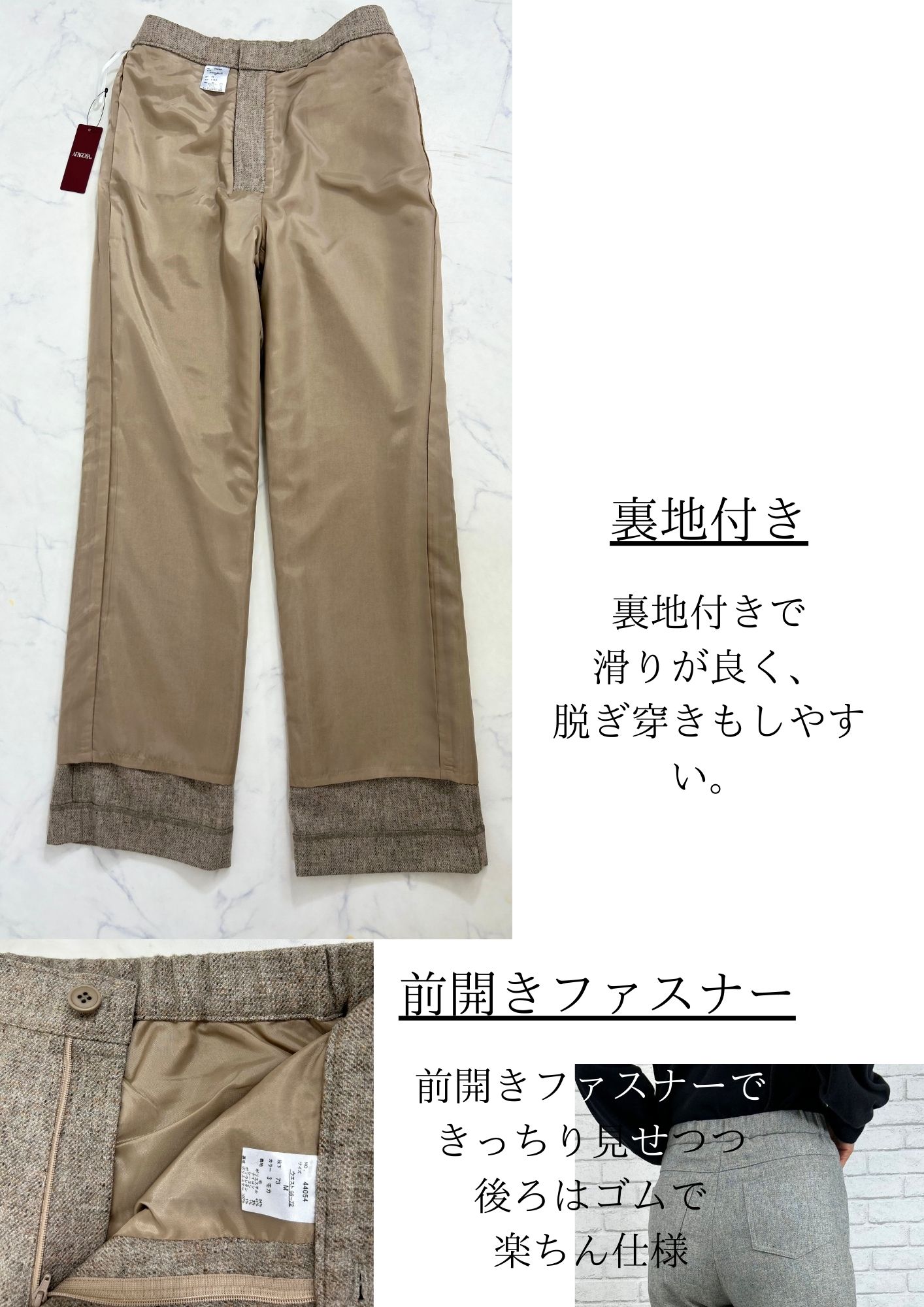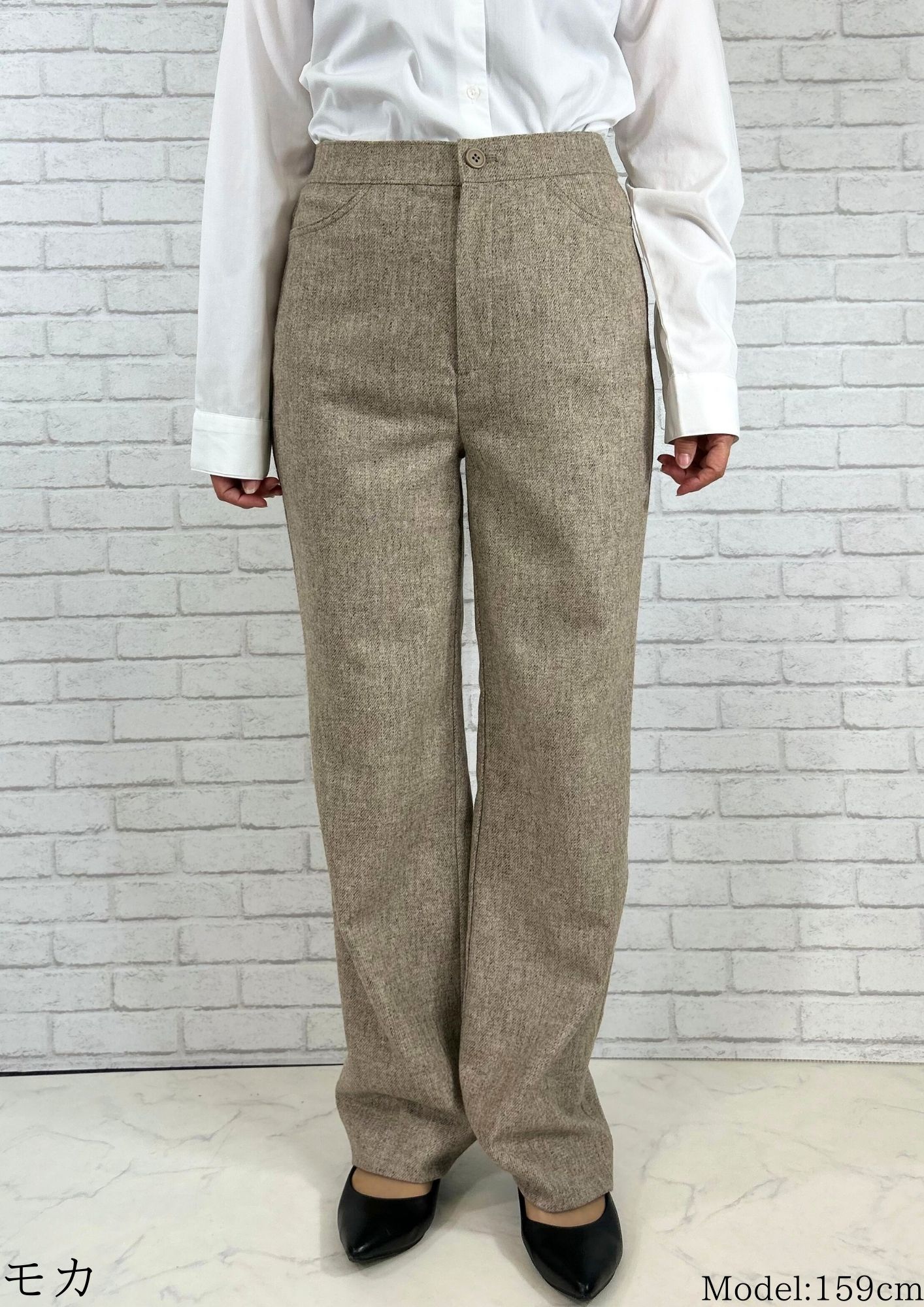 ツイードパンツ ブラウン パンツ ウール ワイドパンツ ストレートパンツ 暖パン お腹周りゆったり 毛 きれいめ 美脚 ツイード調 ウール調 暖かい パンツスーツ あったか 股上深め MIX SDGs 体型カバー サスティナブル エシカル 防寒 レディース 冬