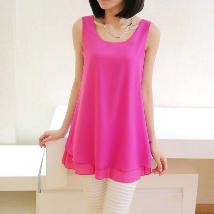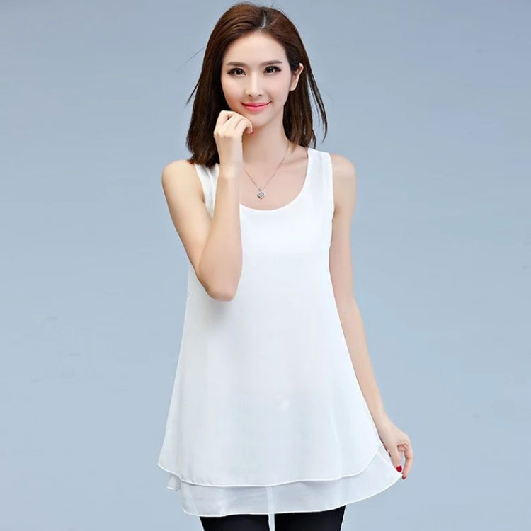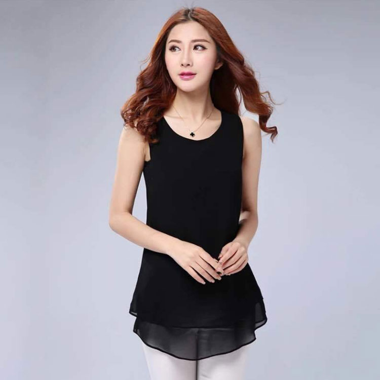 シフォンブラウス シフォンチュニック ノースリーブ ブラウス 夏 シフォントップス プルオーバー タンクトップ 薄手 トップス シフォン 2枚重ね シンプル 大人 女性