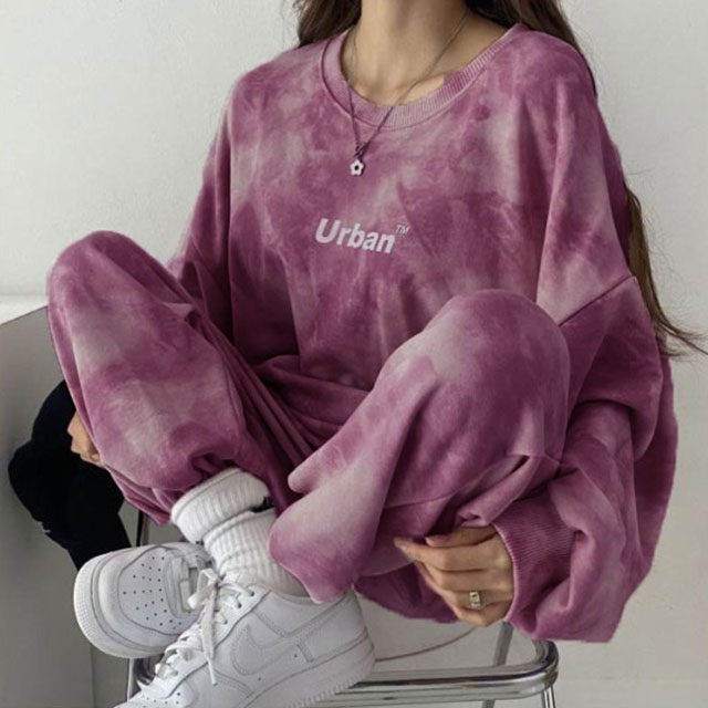 部屋着 セットアップ レディース トップス タイダイ柄 パンツ ドロップショルダー トレーナー タイダイ 染め ゆったり ワイドパンツ セットアップ 上下セット ルームウェア レディース 部屋着 パジャマ 長袖 大きいサイズ