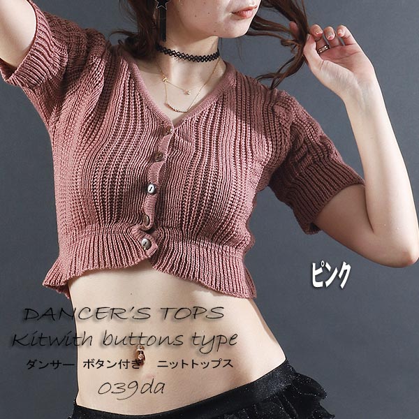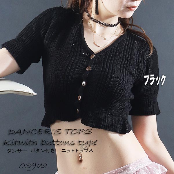 ボタン付きニットトップス☆/B【トップス プチプラ ダンス 衣装 シンプル 無地 人気 可憐 エレガント 華やか イベント ストレッチ素材 カラバリ豊富 送料無料】
