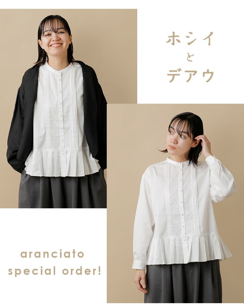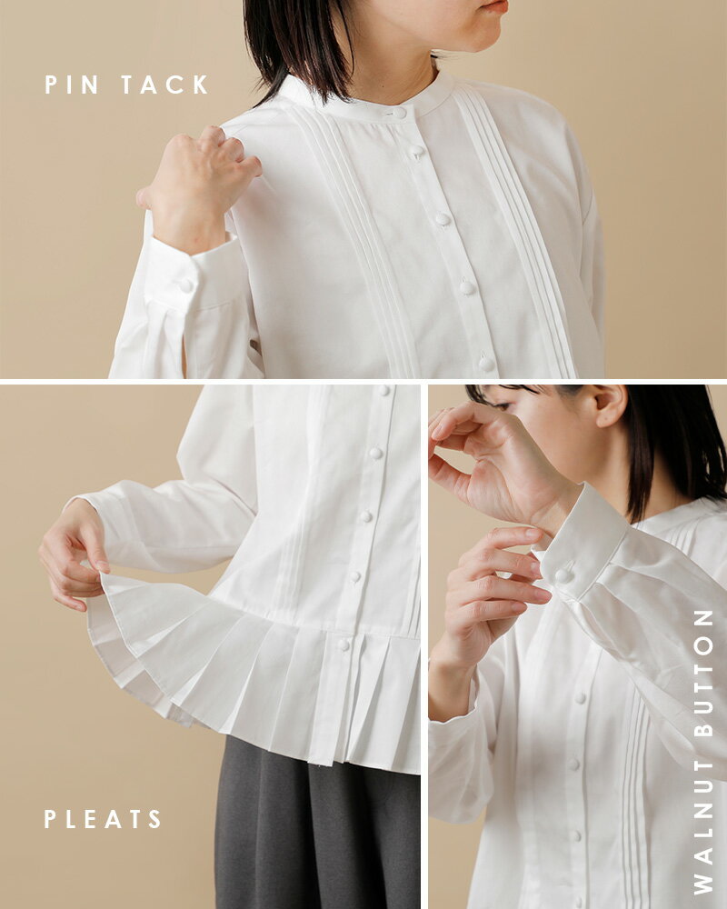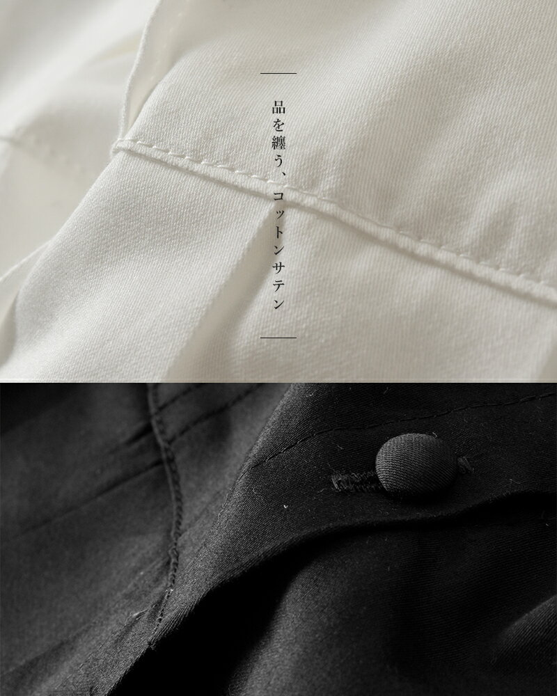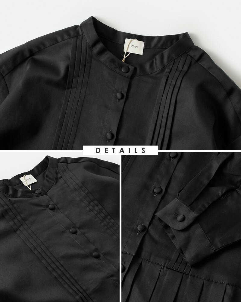 tumugu ツムグ aranciato別注 フロントタック裾プリーツコットンサテンブラウス tb19355-mn レディース