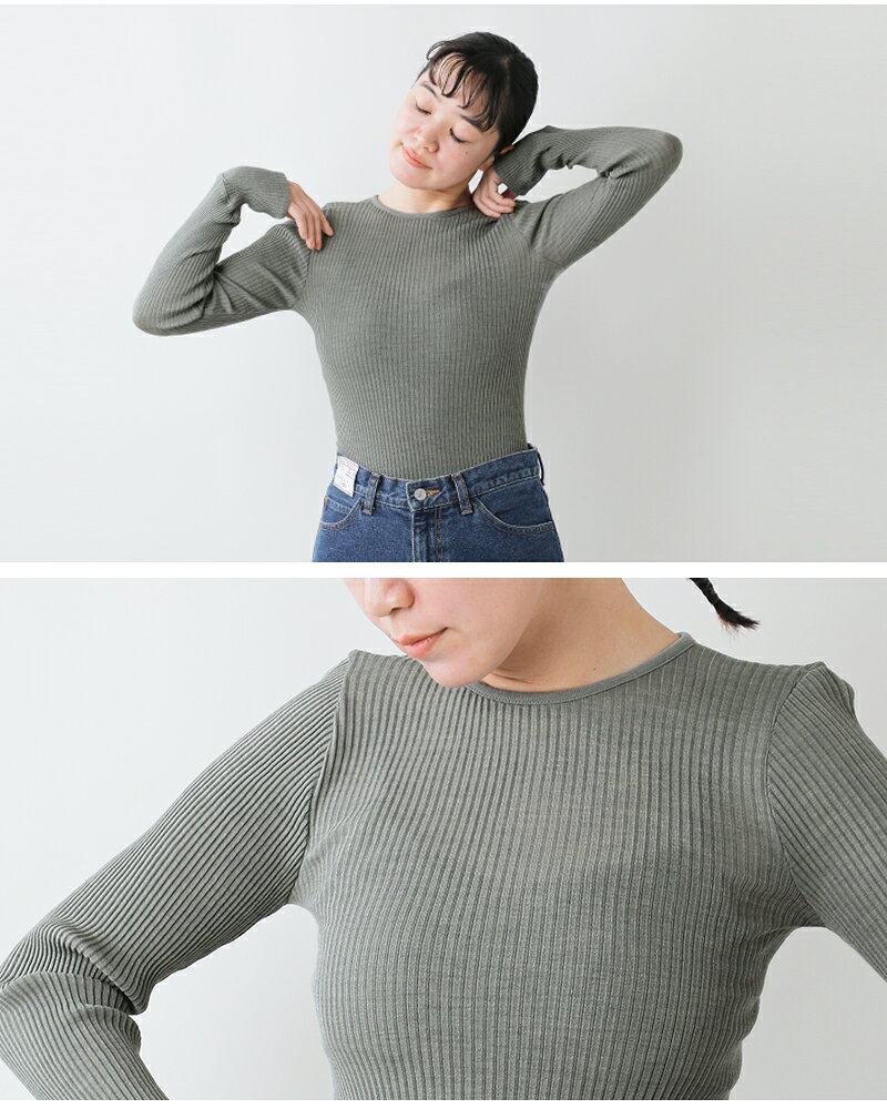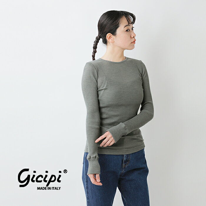 【30%OFF】GICIPI ジチピ ウール シルク クルーネック リブ ニットソー プルオーバー “Melanzana” 2420a-yo
