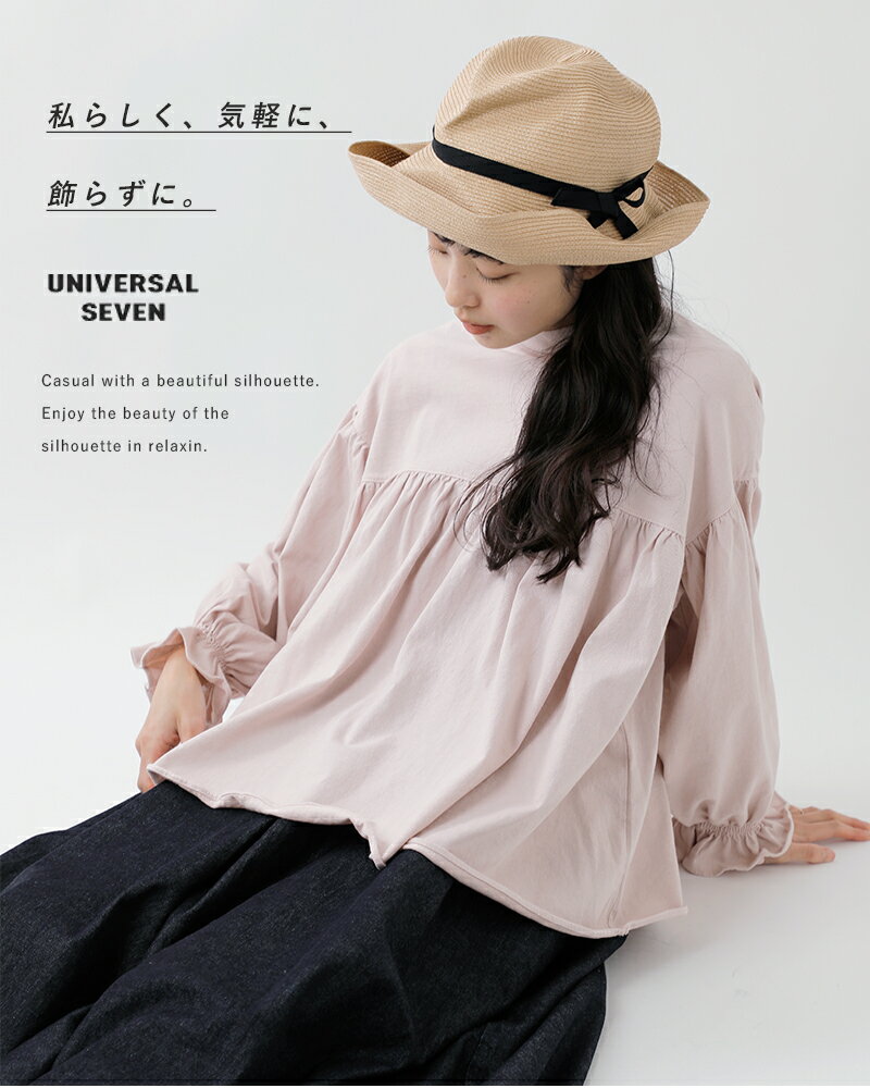 【3こ1】universal seven ユニヴァーサルセブン オールUSAコットン パネル ギャザー プルオーバー us230ct035-tr レディース