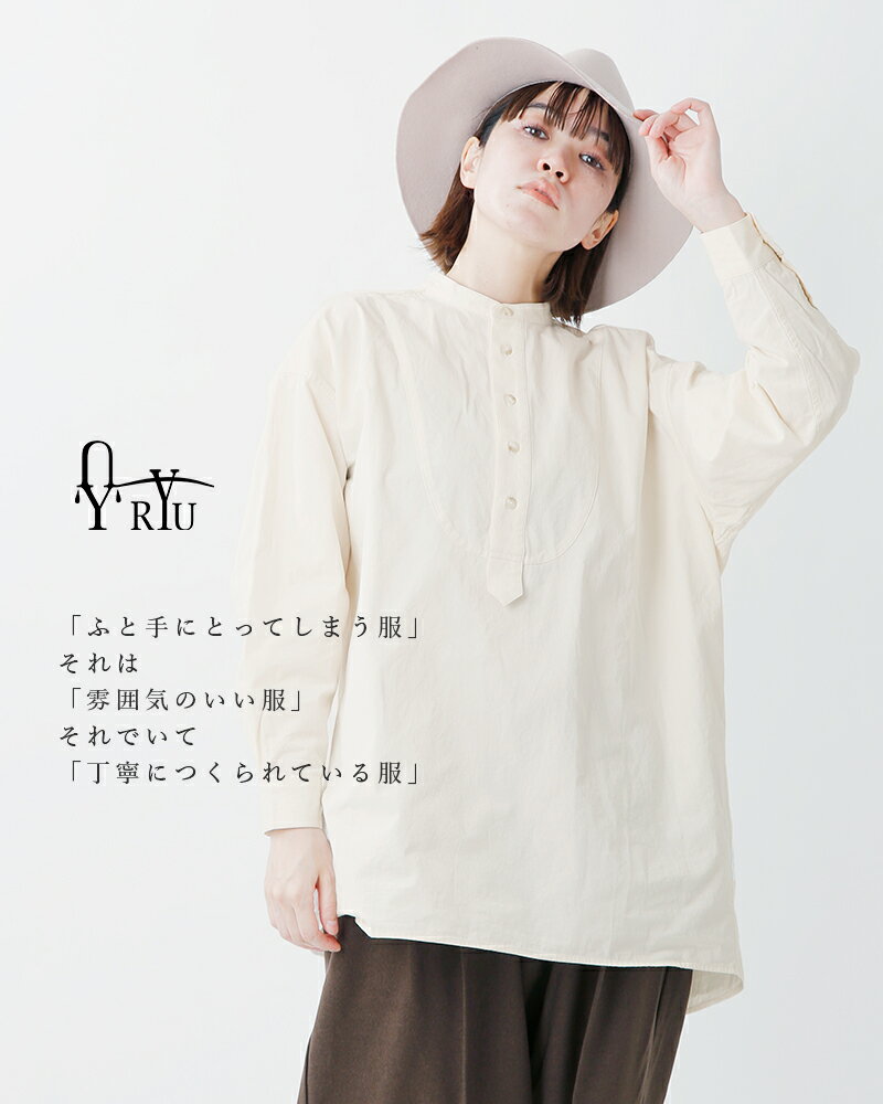 RYU リュー 天日干し ガーメントウォッシュ コットン バンドカラー オーバー ボザム シャツ r311-yo レディース