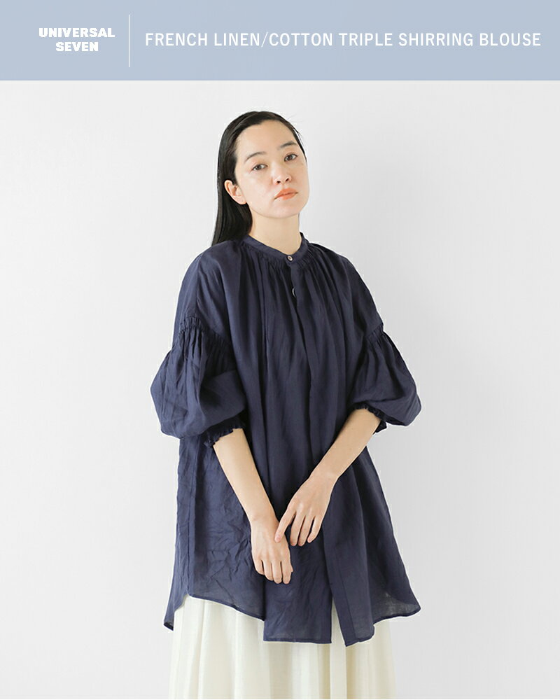 universal tissu ユニヴァーサルティシュ フレンチリネン / コットン トリプル シャーリング ブラウス ut241bl046-tr 2025ss新作レディース
