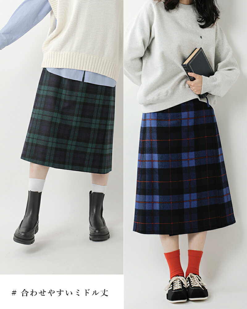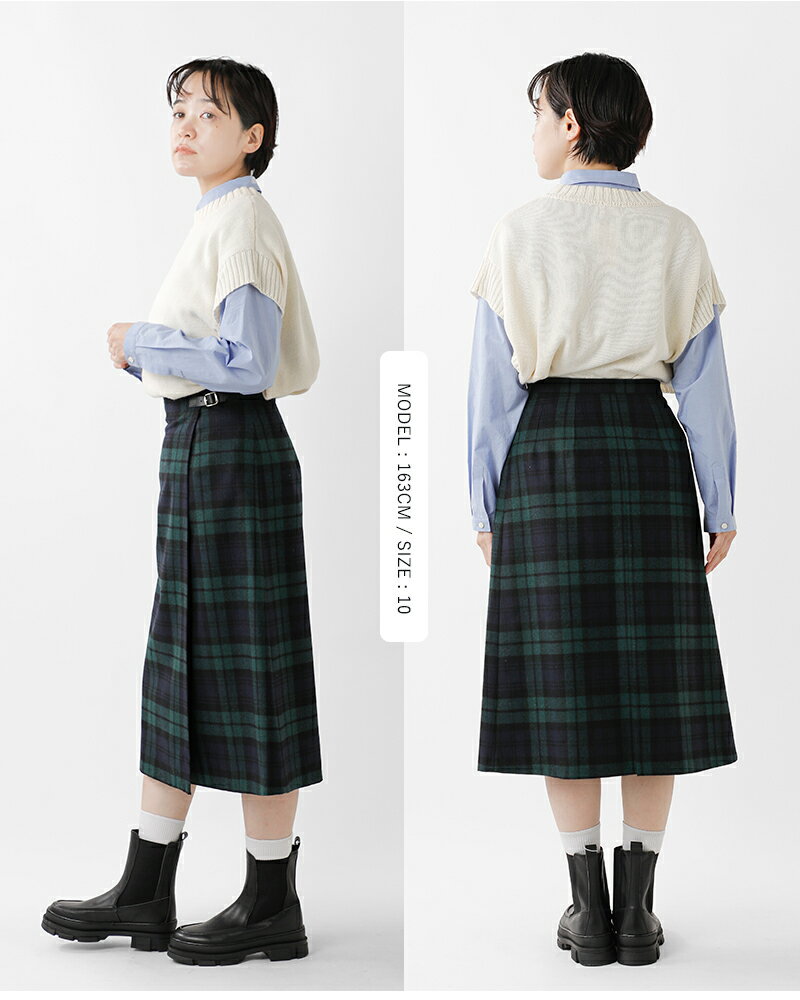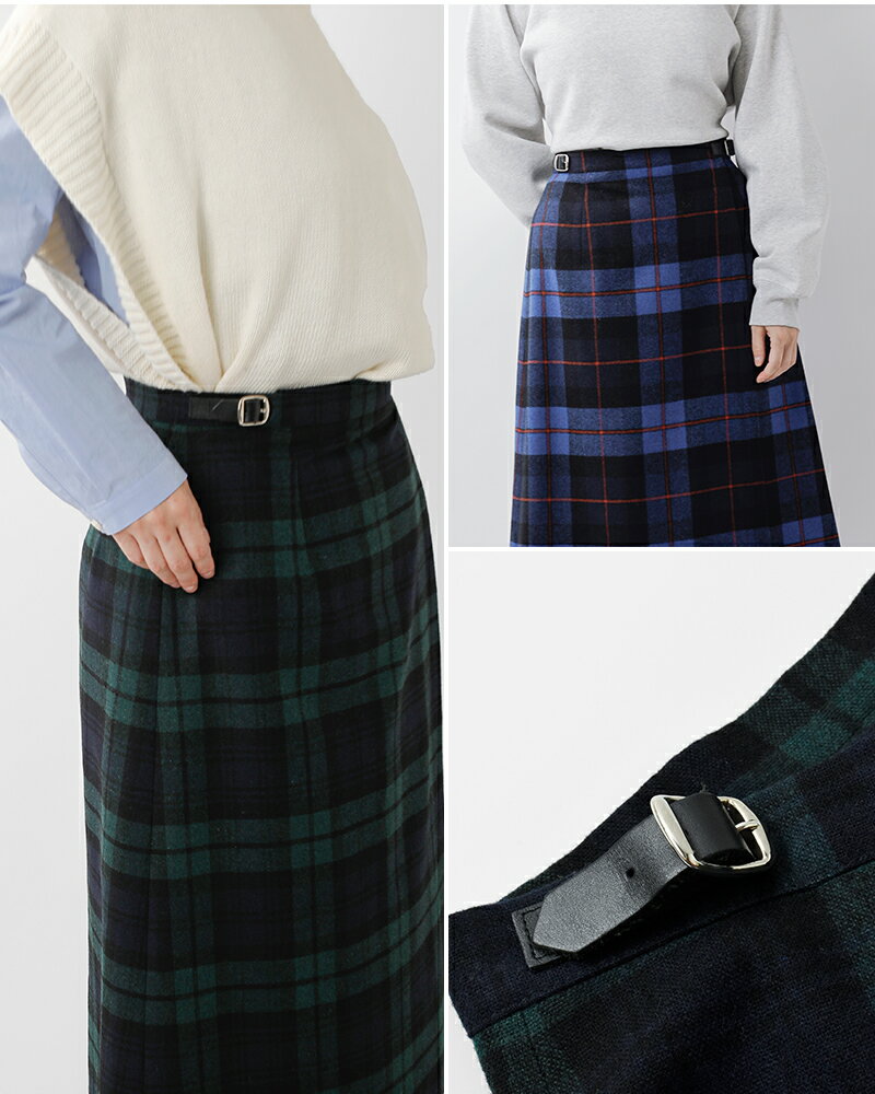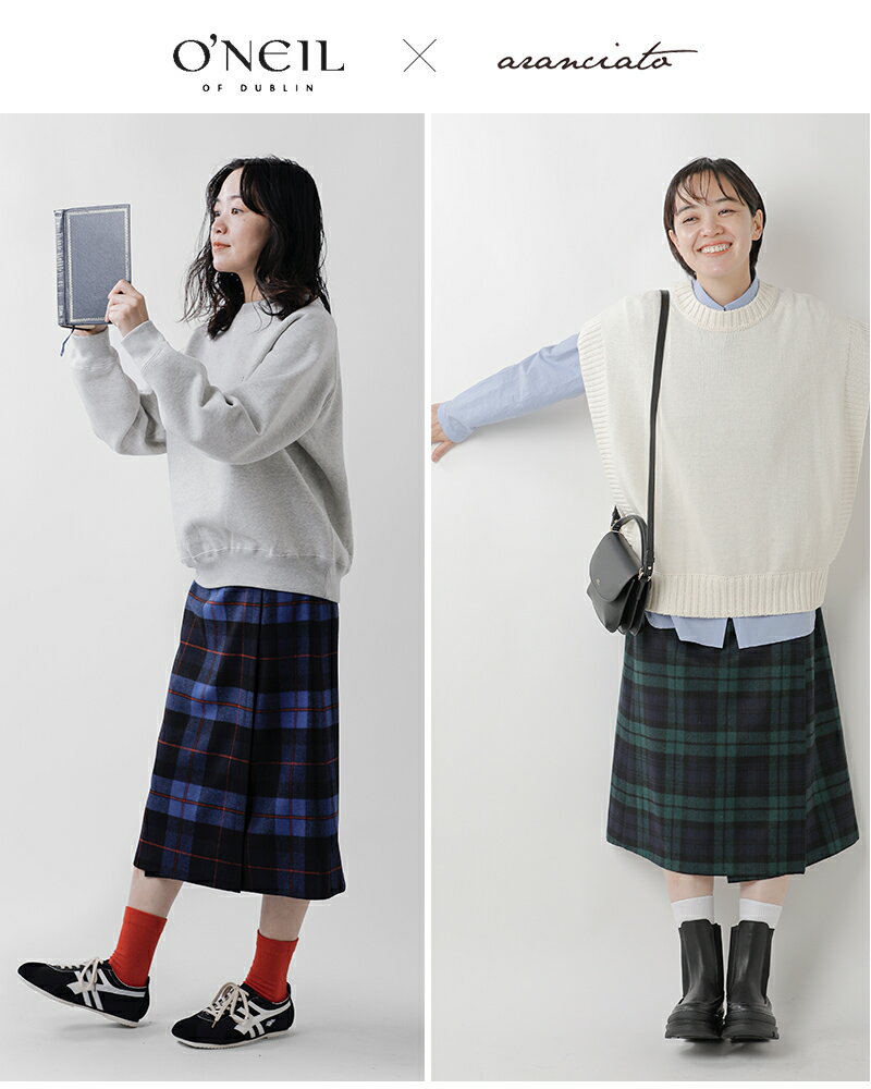 O'NEIL OF DUBLIN オニールオブダブリン aranciato別注 ウール ブレンド タック チェック ロングスカート s266wp-tr 2024aw新作 レディース【サイズ交換初回無料】