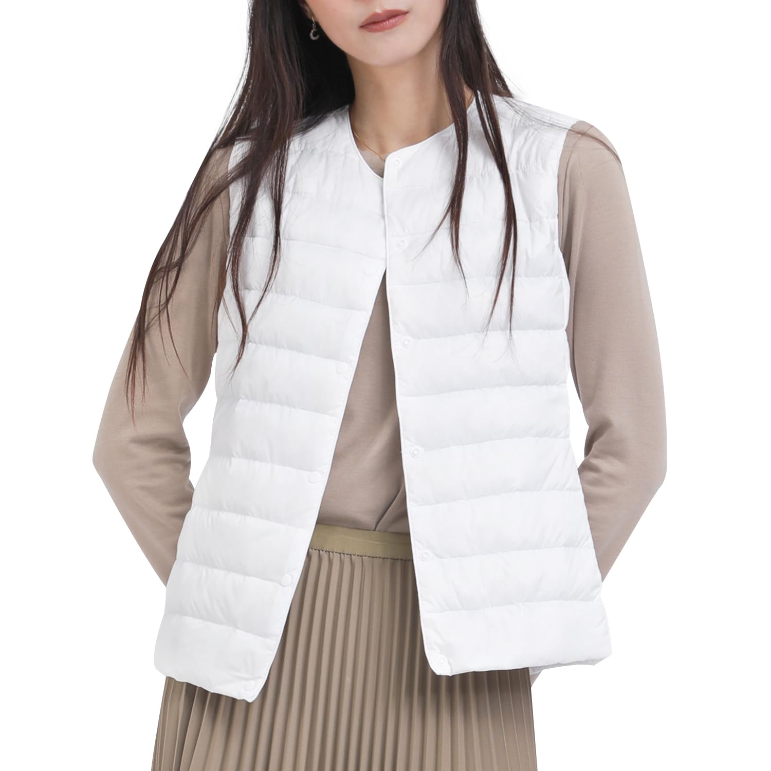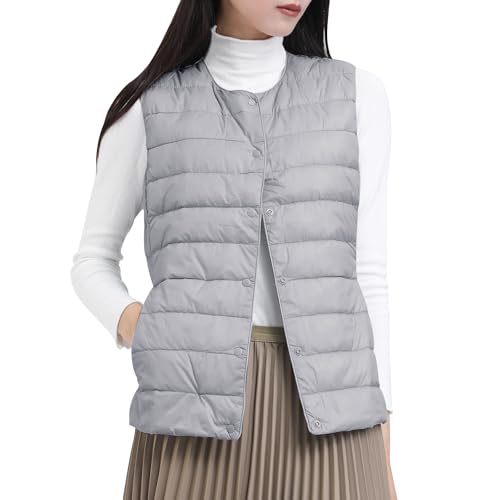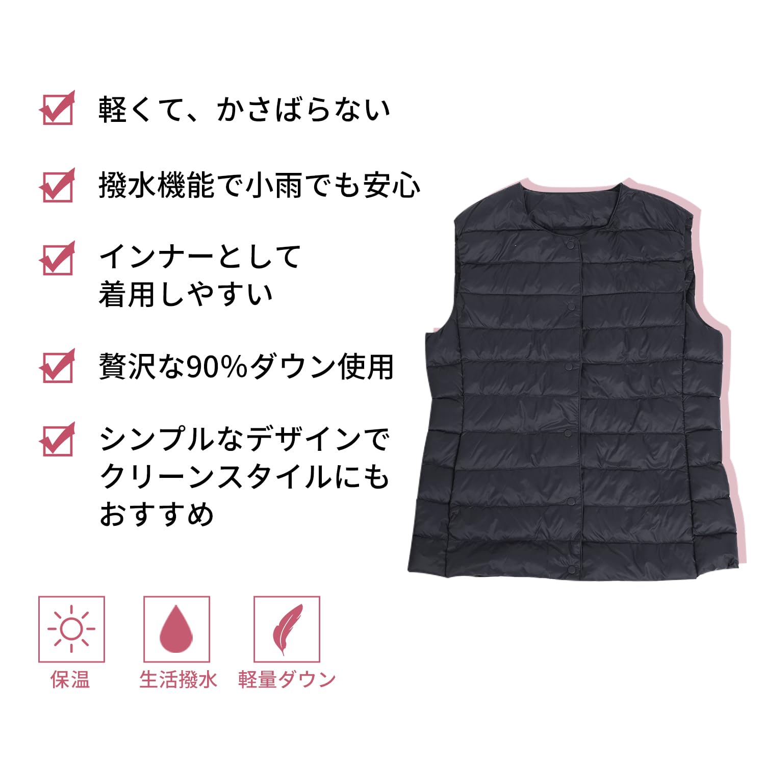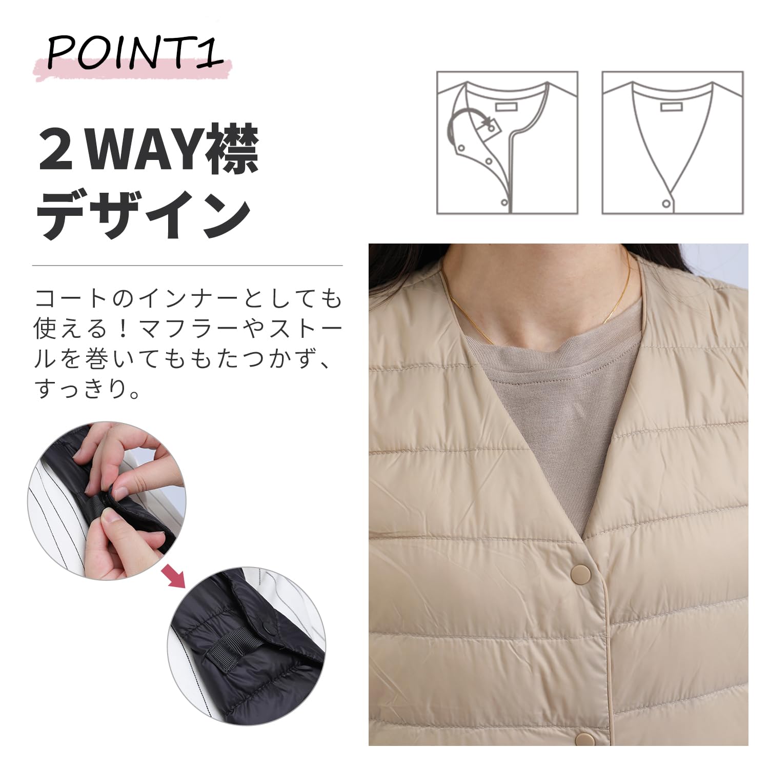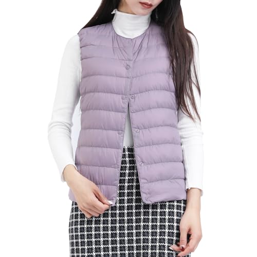 ダウンベスト レディース Vネック 丸首 2WAY襟デザイン ウルトラライト インナーダウンベスト 軽量 防風 保温 防寒 春秋冬 収納袋付き