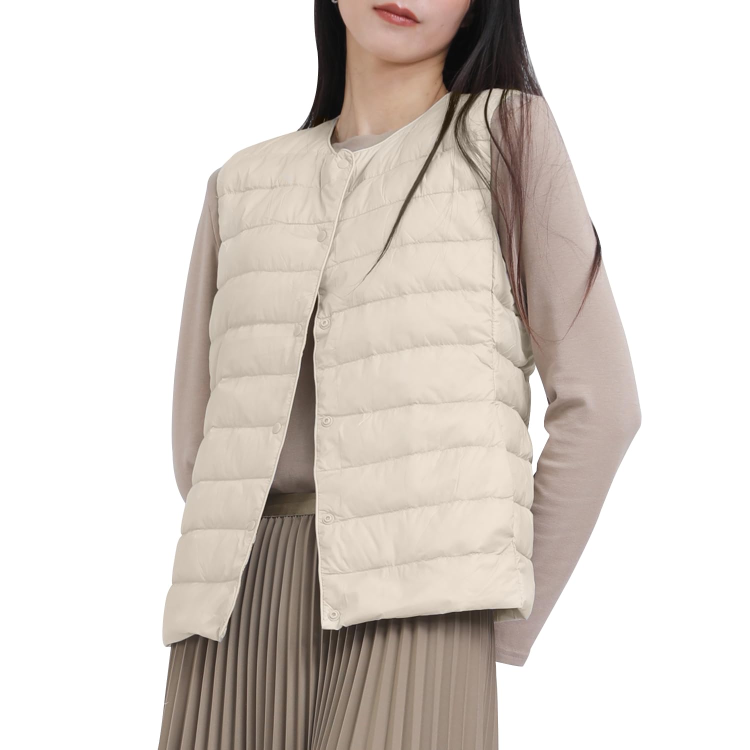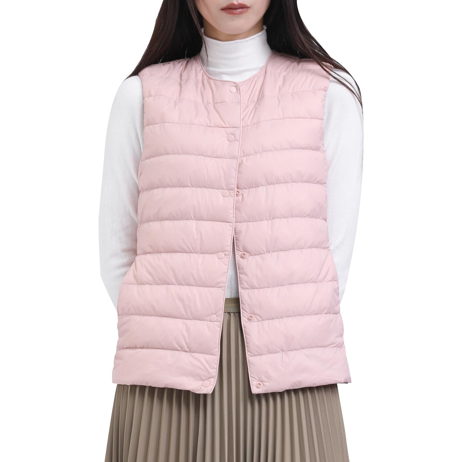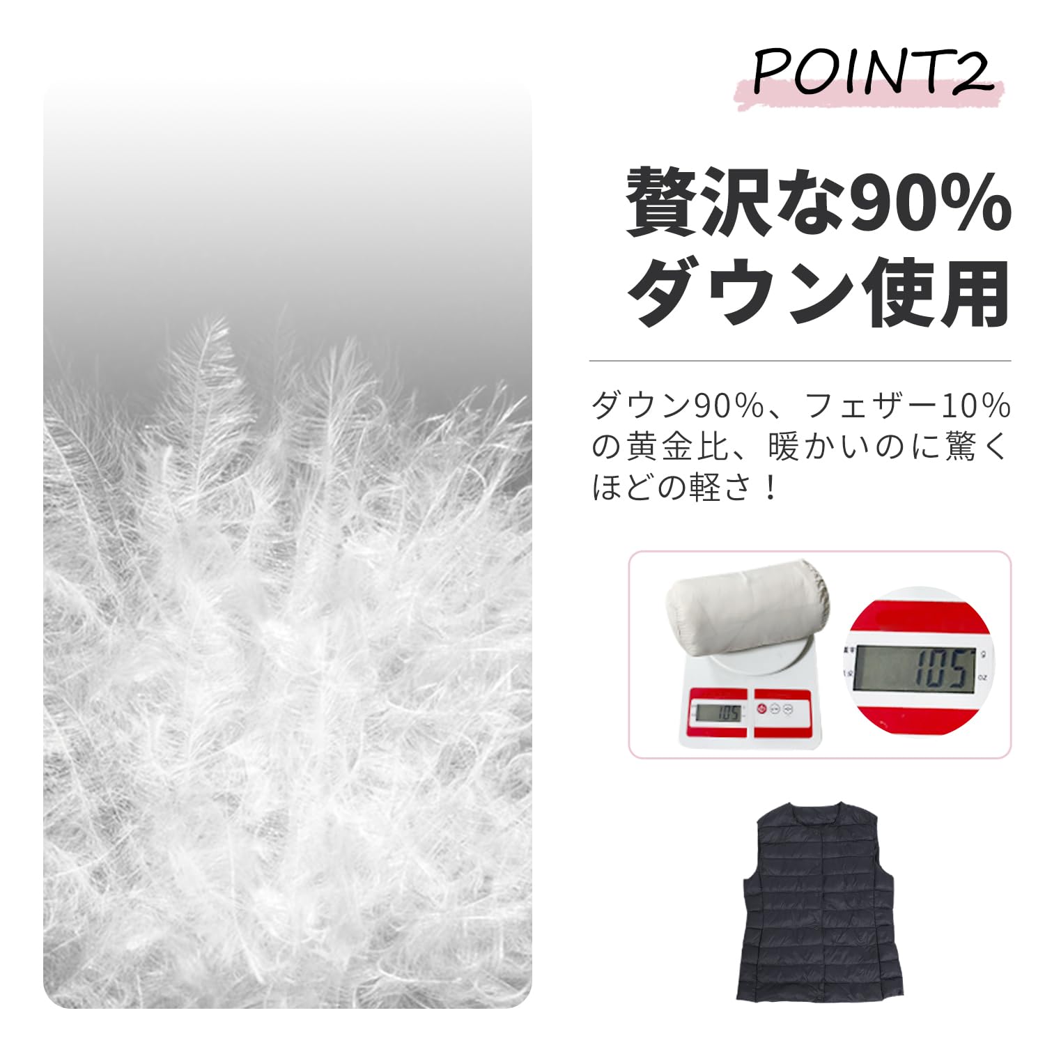 ダウンベスト レディース Vネック 丸首 2WAY襟デザイン ウルトラライト インナーダウンベスト 軽量 防風 保温 防寒 春秋冬 収納袋付き