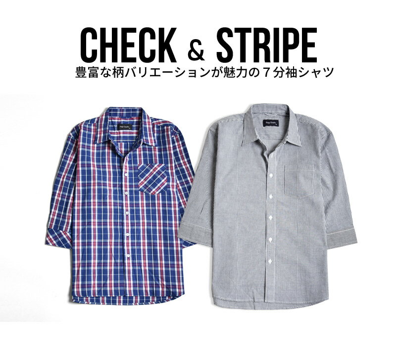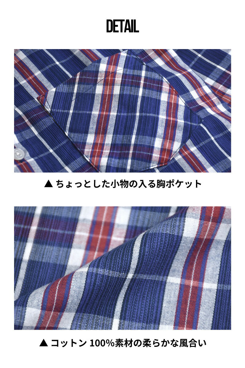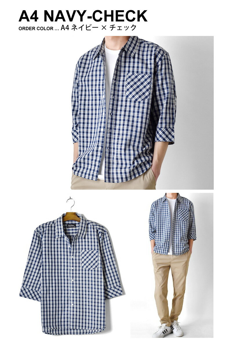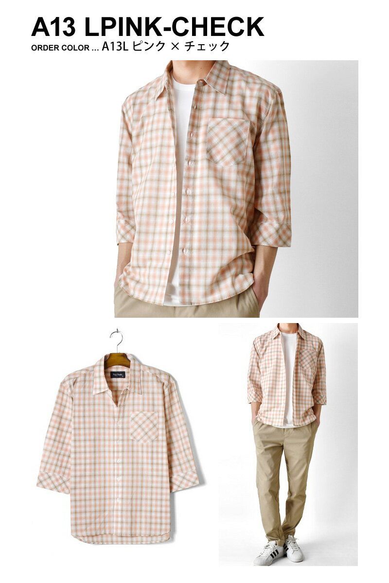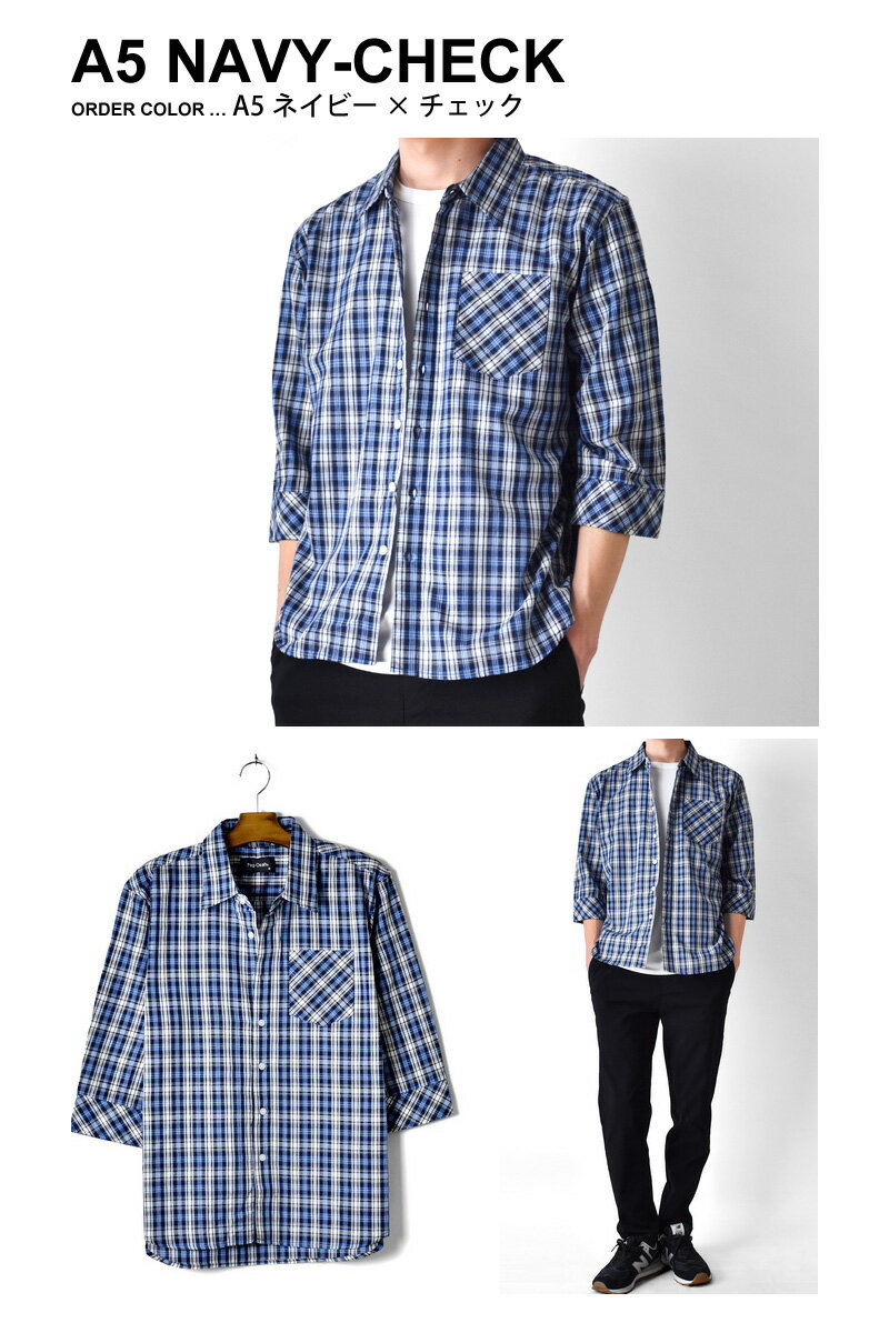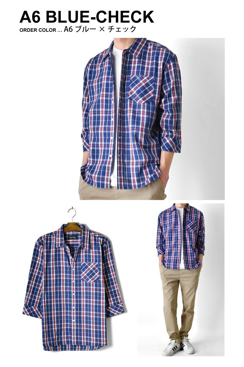チェックシャツ メンズ 七分袖 ポケット付き レギュラーカラー 綿100% さらっと快適 春 夏【ゆうパケット送料無料】【1-E12S】