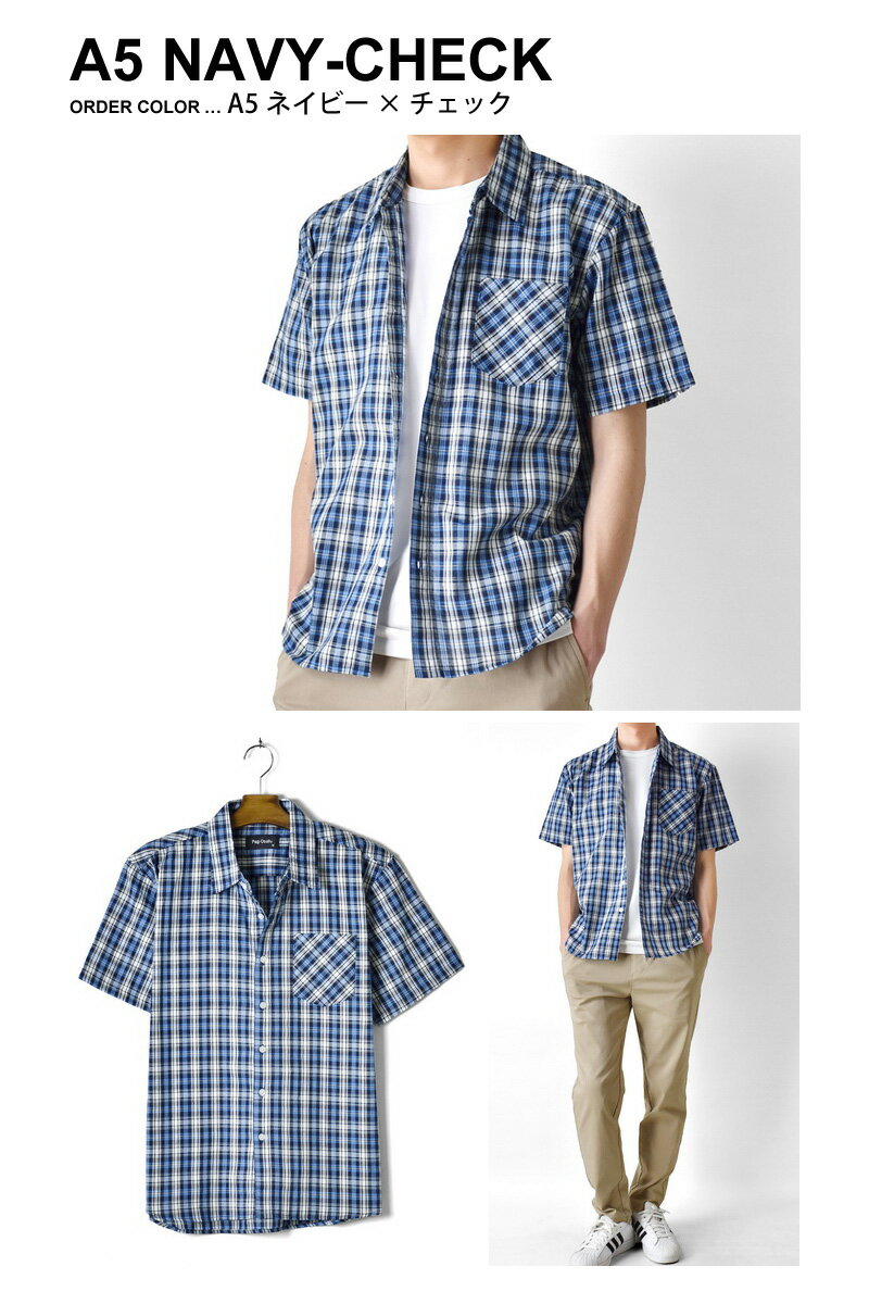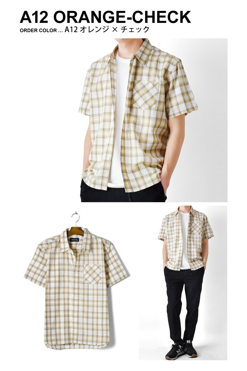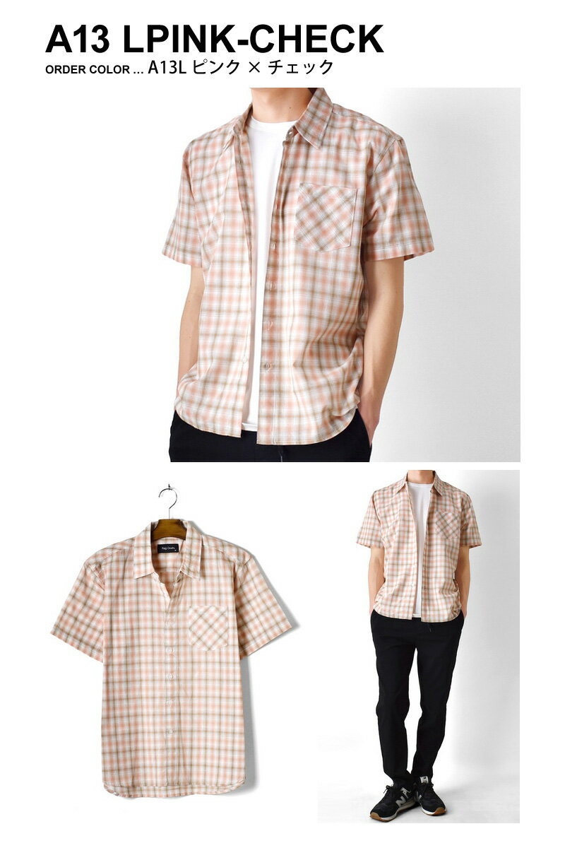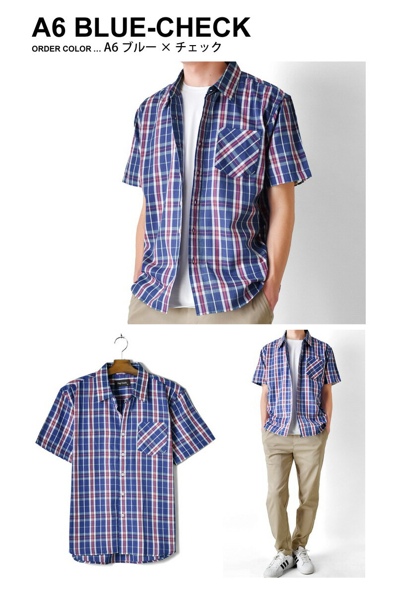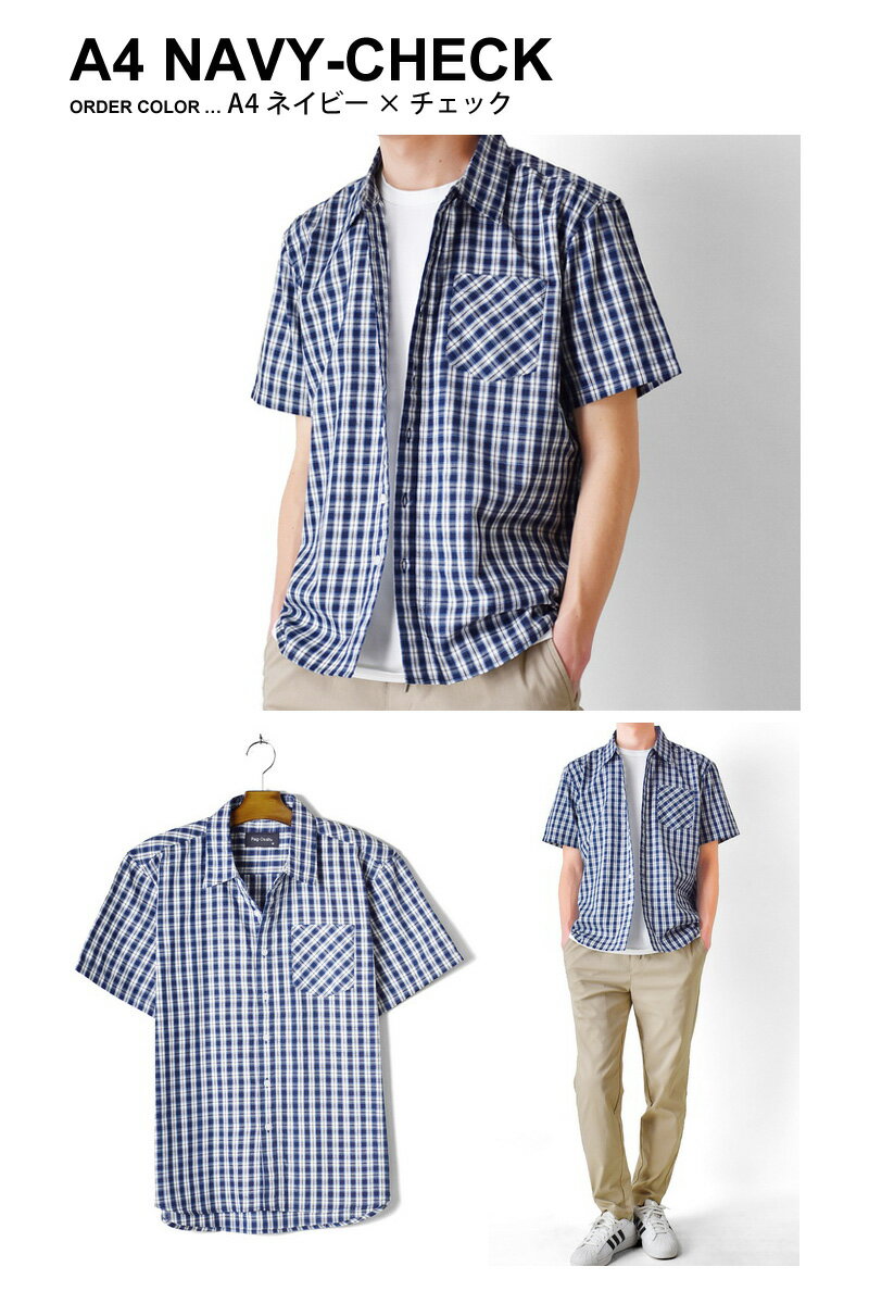 チェックシャツ メンズ 半袖 綿100% レギュラーカラー ポケット付き 涼しい 夏シャツ 大きいサイズ対応【ゆうパケット送料無料】【1-E12V】