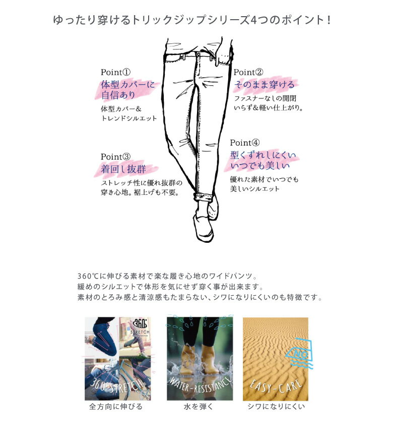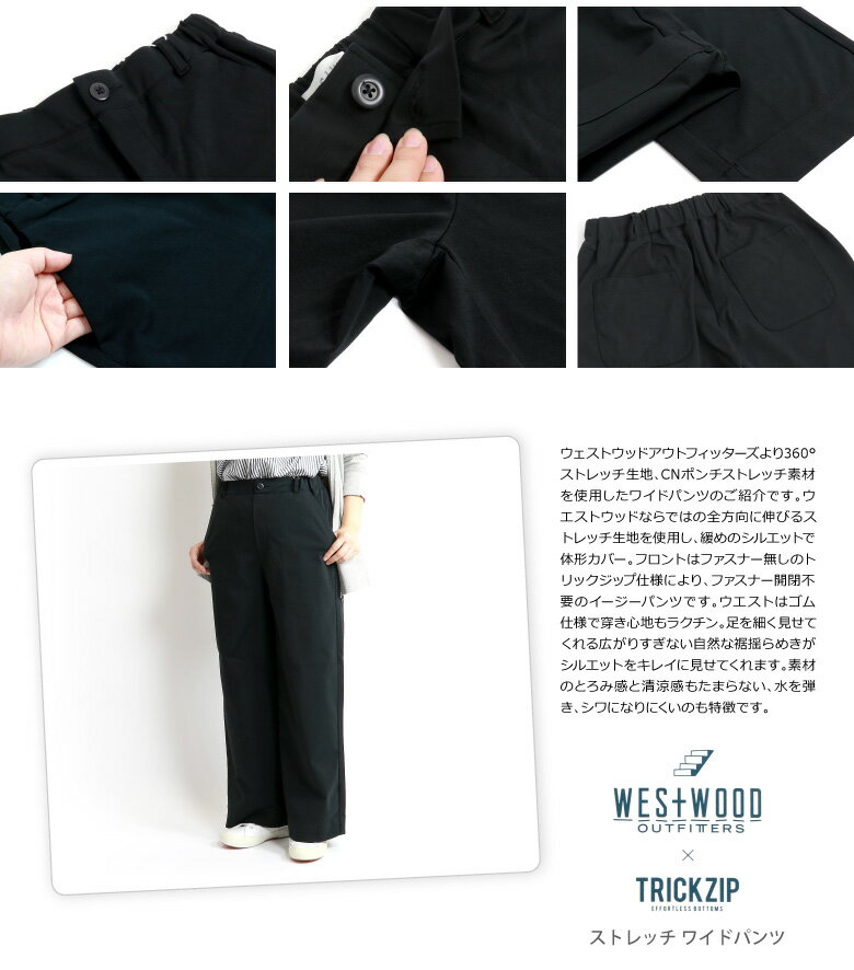 ★期間限定!最大15%OFFクーポン対象★【送料無料】Westwood Outfitters(ウエストウッド アウトフィッターズ) ワイドパンツ ガウチョパンツ CNポンチ素材 トリックジップ ストレッチ レディース (8138106)