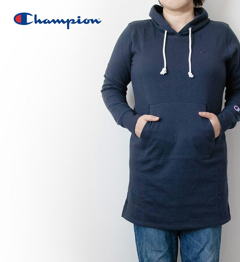 【20%OFF/セール】★期間限定!最大15%OFFクーポン対象★Champion(チャンピオン) スウェット チュニックパーカー ワンピース フーディー 長袖 ベーシック無地 レディース (cw-u109)