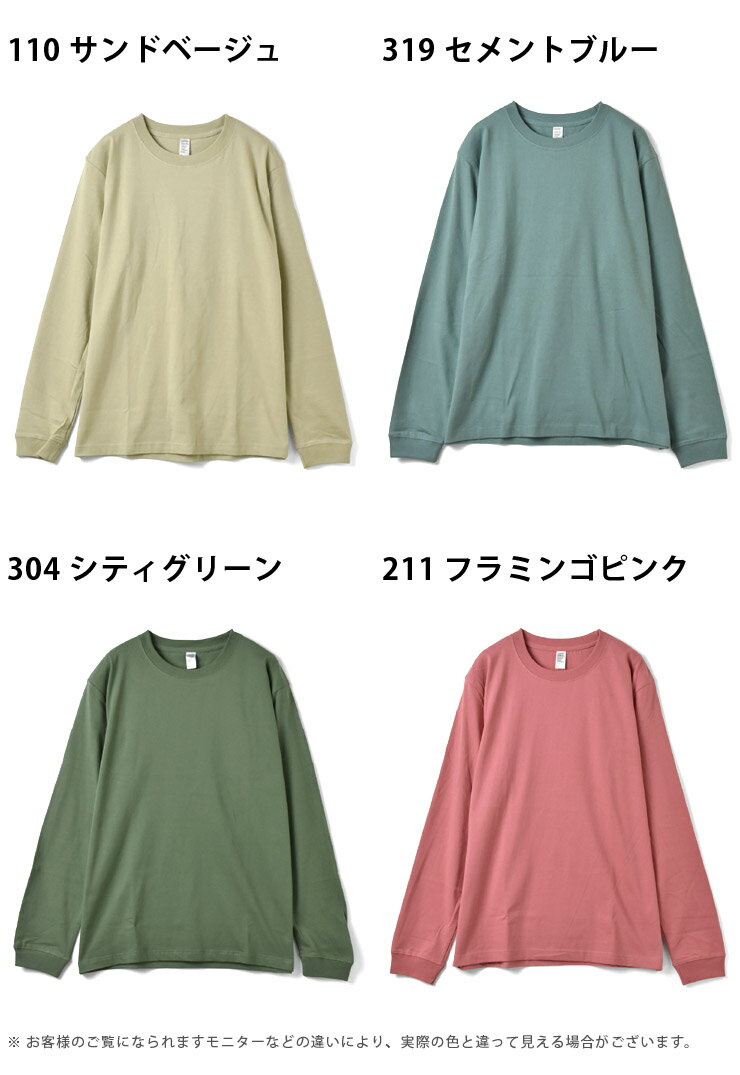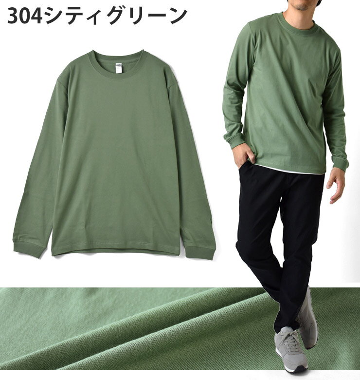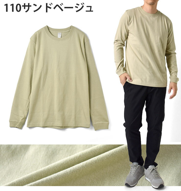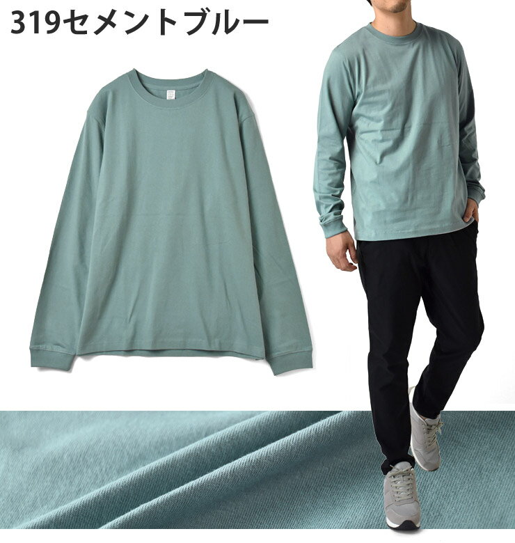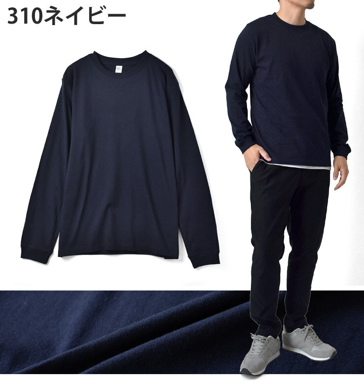 長袖Tシャツ メンズ ロンT ヘビーウェイト 無地 6.6オンス 6.6oz 度詰め天竺 225g ヘヴィウェイト クルーネック 丸首 厚生地 しっかり 綿 プレミアムコットン【P5A】【送料無料】【メール便2】【メンズ】