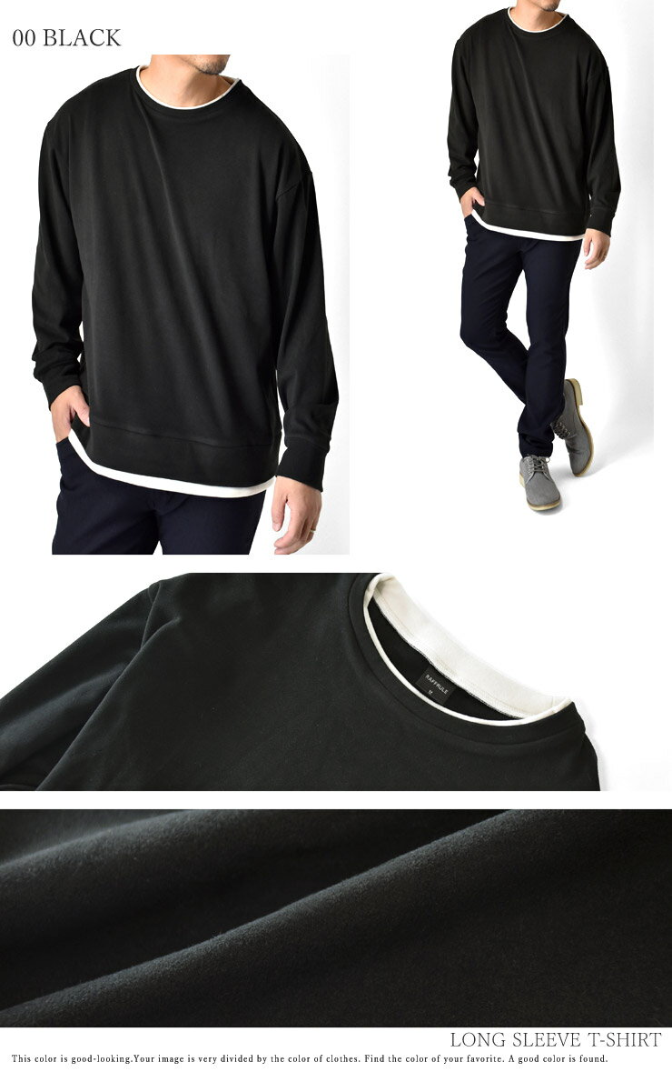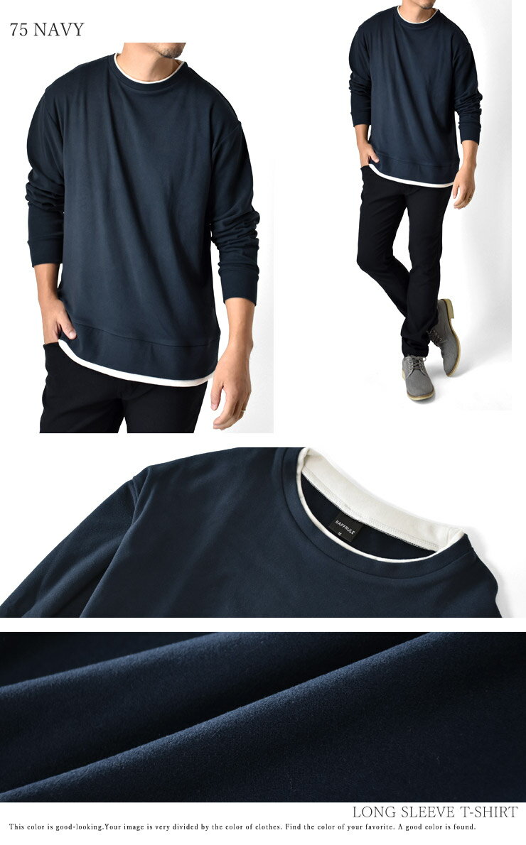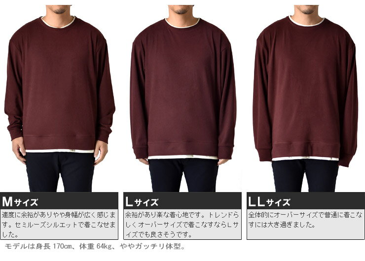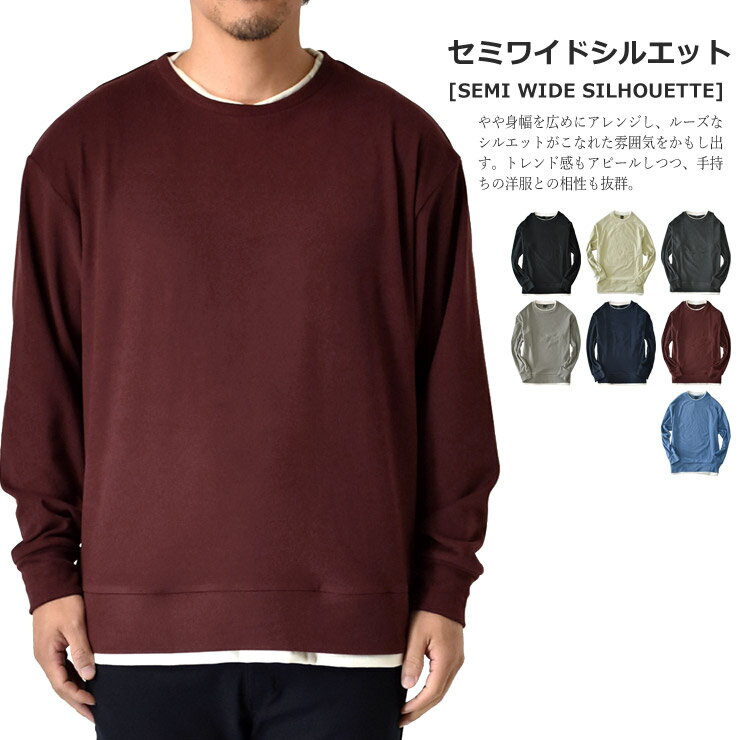 \10%OFF★楽天スーパーSALE期間限定/ 厚手クルーネック 長袖Tシャツ メンズ 重ね着風 両面起毛 フェイクレイヤード オーバーサイズ【D9C】【送料無料】【ゆうパケット】【メンズ】【mens】
