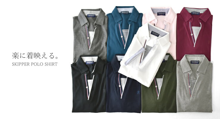 ポロシャツ メンズ トリコロールテープ スキッパー 鹿の子【C8K】【送料無料】【ゆうパケット】【メンズ】【mens】