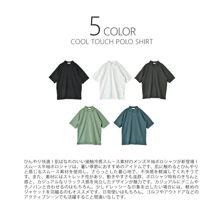 接触冷感 スムース 半袖ポロシャツ ポロ メンズ ストレッチ サラリ ひんやり COOL スームース【C5F】【送料無料】【メール便2】【メンズ】