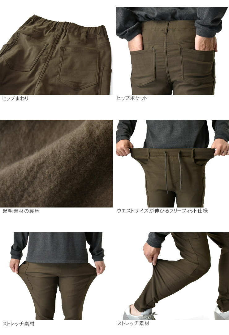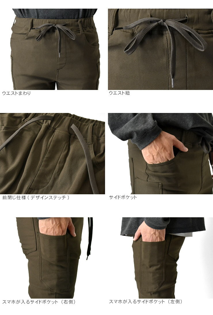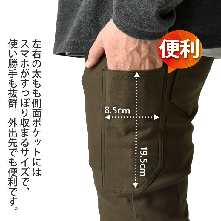 裏起毛 伸縮ストレッチ チノパンツ 前閉じ スマホポケット 左右 暖 防寒 保温 冬パンツ【D2V】【送料無料】【ゆうパケット】【メンズ】