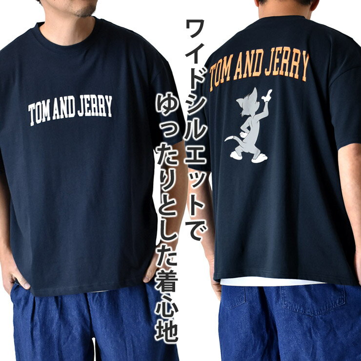 \ポイント20倍★3/28 10:59まで/ トム&ジェリー 正規品 半袖Tシャツ メンズ tシャツ 綿 ワイド ビッグT バックプリント Tom and Jerry【B5J】【送料無料】【メール便2】【メンズ】【mens】