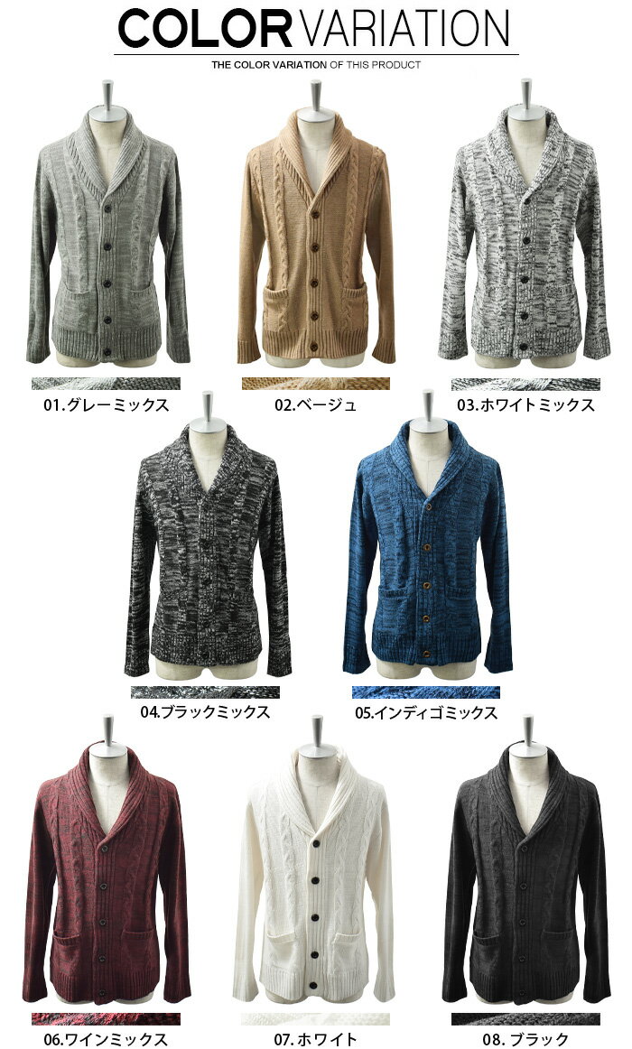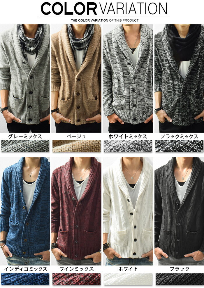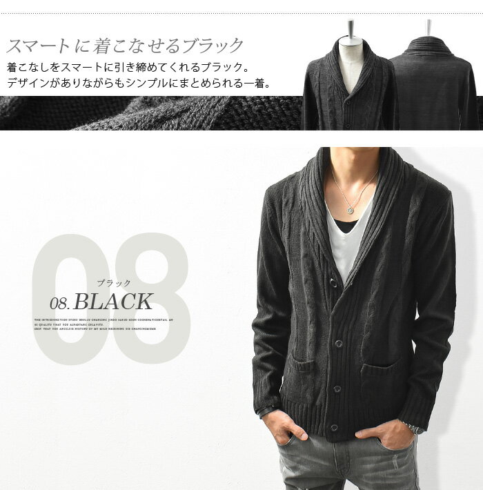 カーディガン メンズ ニット ニットカーディガン ショールカラー ケーブル編み ボタン カーデ スリム ショート カジュアル 羽織り 秋 冬 秋冬 服