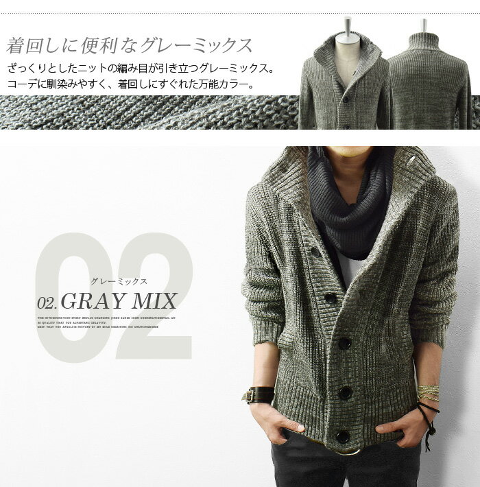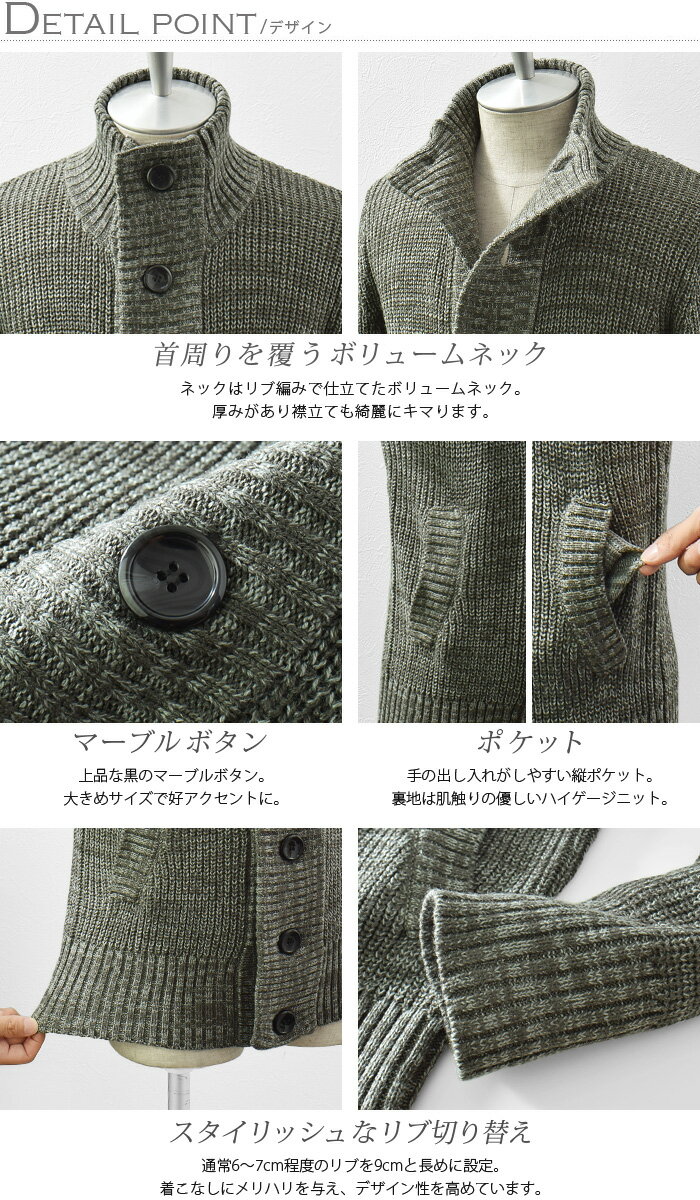 カーディガン メンズ ニット ニットカーディガン ボリュームネック スタンドネック ボタン カーデ 厚手 ざっくり 秋 冬 秋冬 カジュアル 大きいサイズ