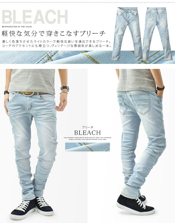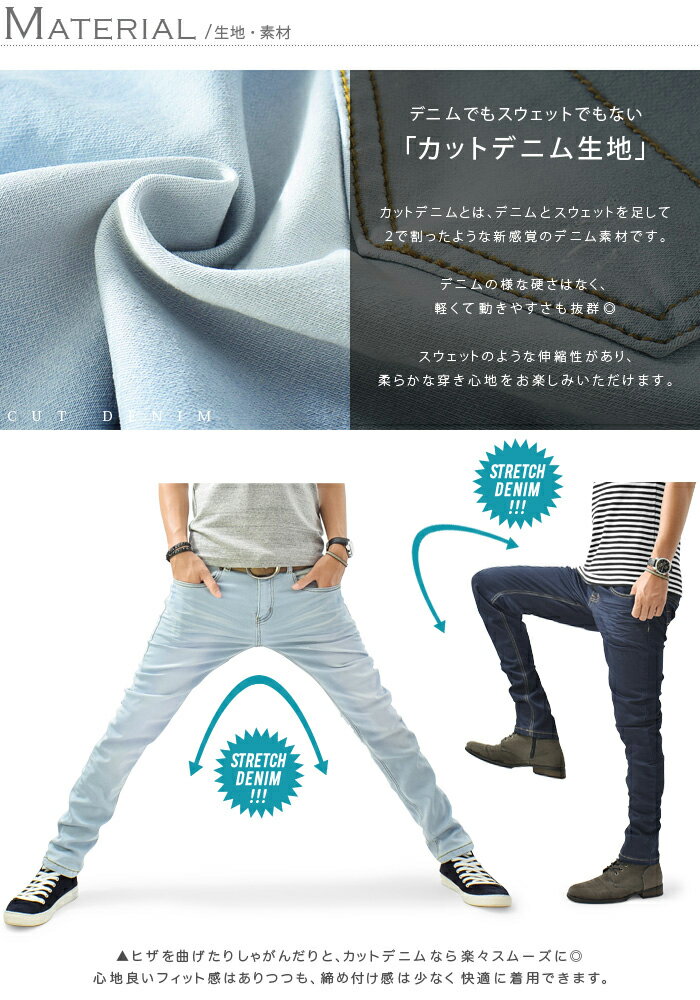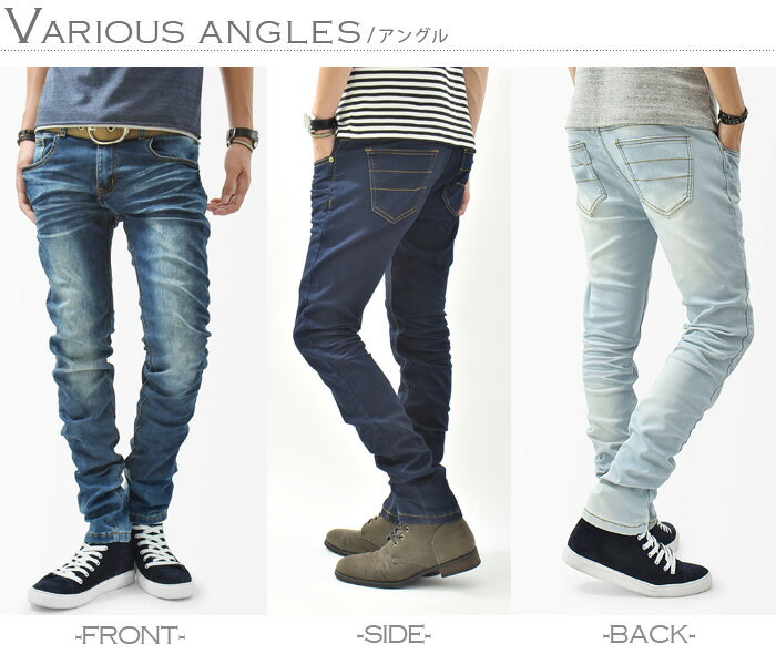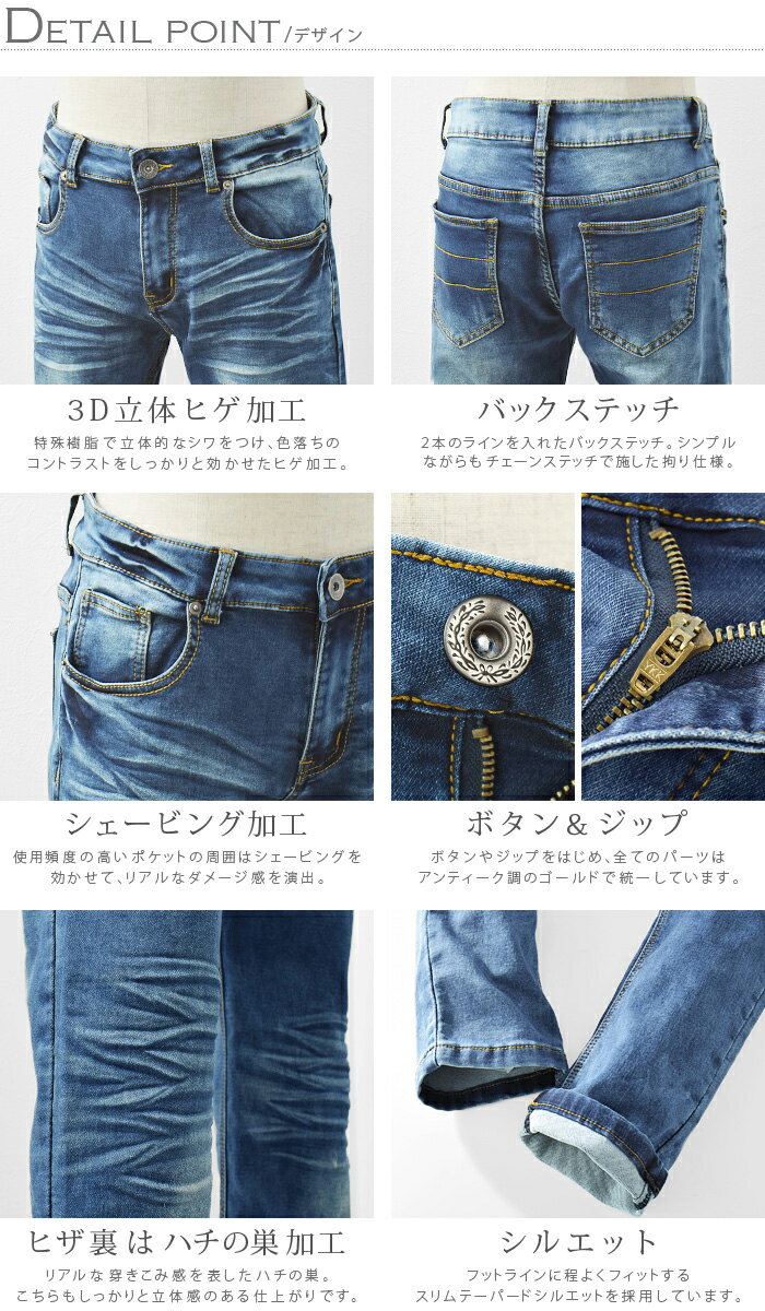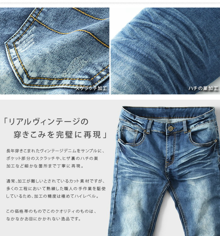 【リアルユーズド加工 ストレッチ入り カットデニムパンツ 全5色】 メンズ デニム ウォッシュ加工 ローライズ スリム 美脚 テーパード ジーンズ カジュアル キレイめ アメカジ