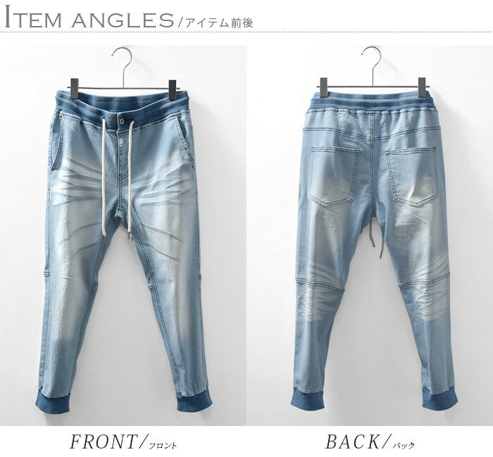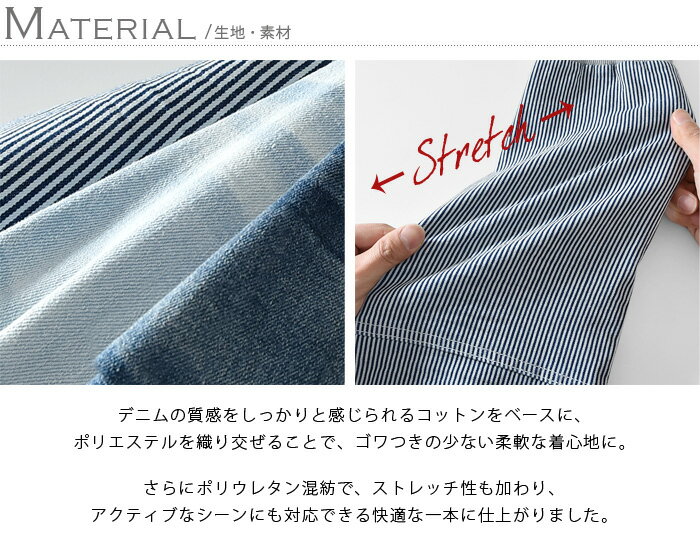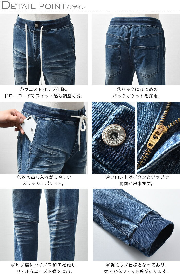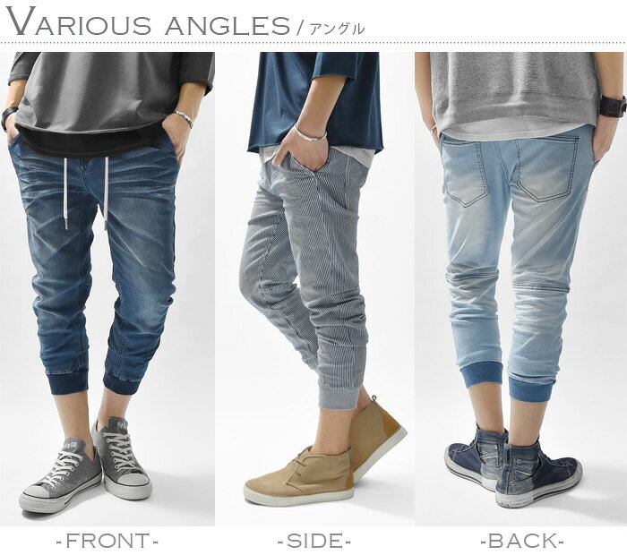 クロップドパンツ メンズ デニム パンツ クロップドデニム ジョガーパンツ 七分丈 半端丈 ハーフパンツ リブ インディゴ ヒッコリー カジュアル