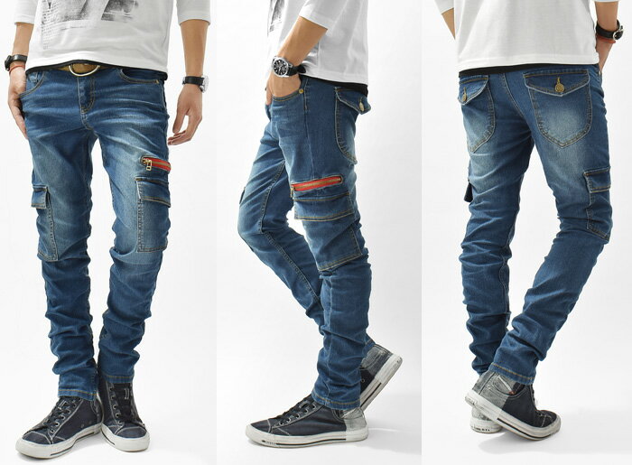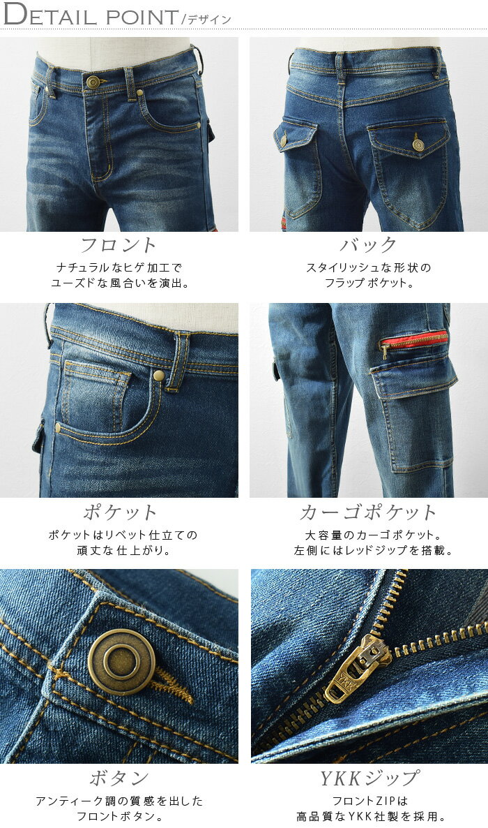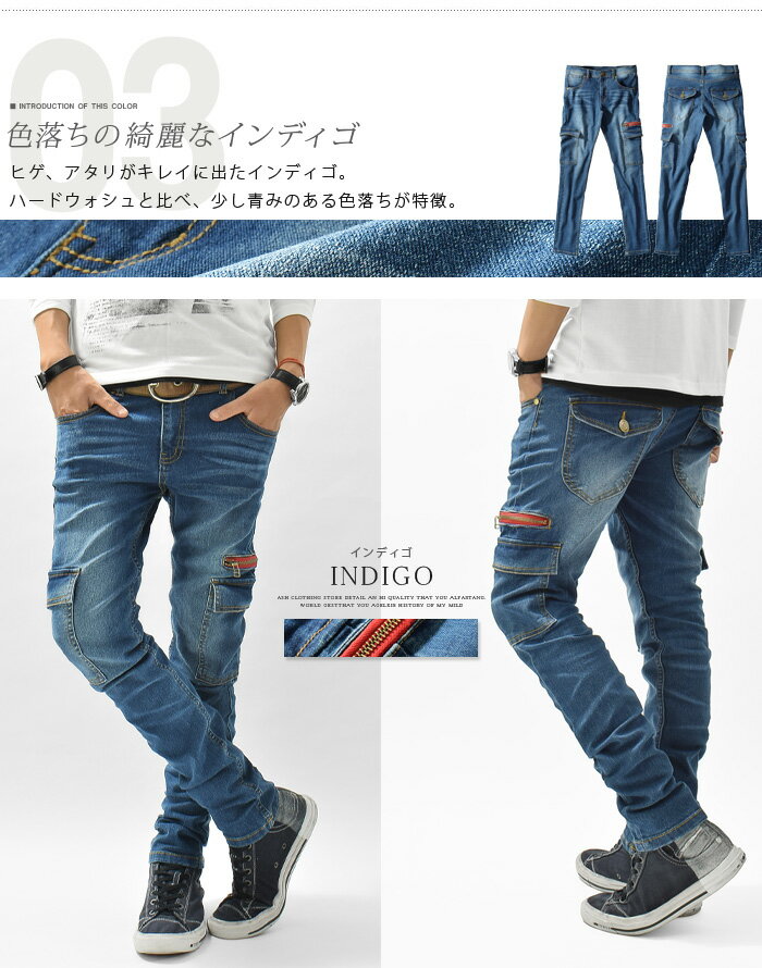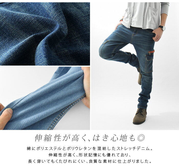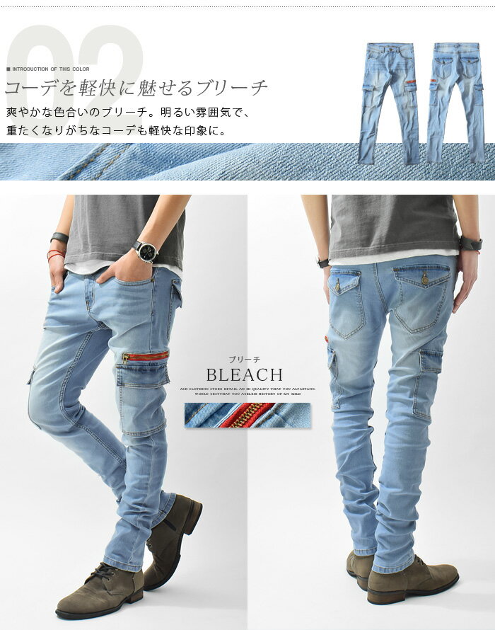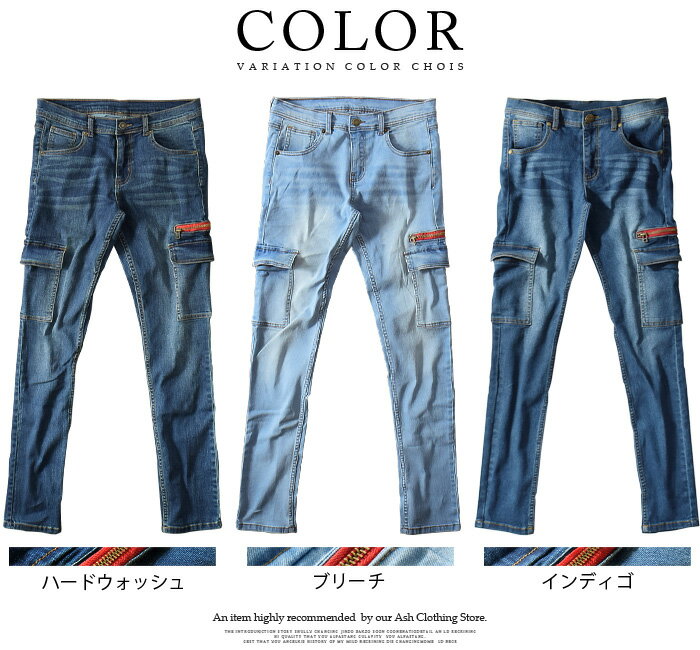スキニーデニム メンズ カーゴパンツ スキニーカーゴ スリムカーゴ デニムパンツ デニム スキニー ローライズ ストレッチ Ash