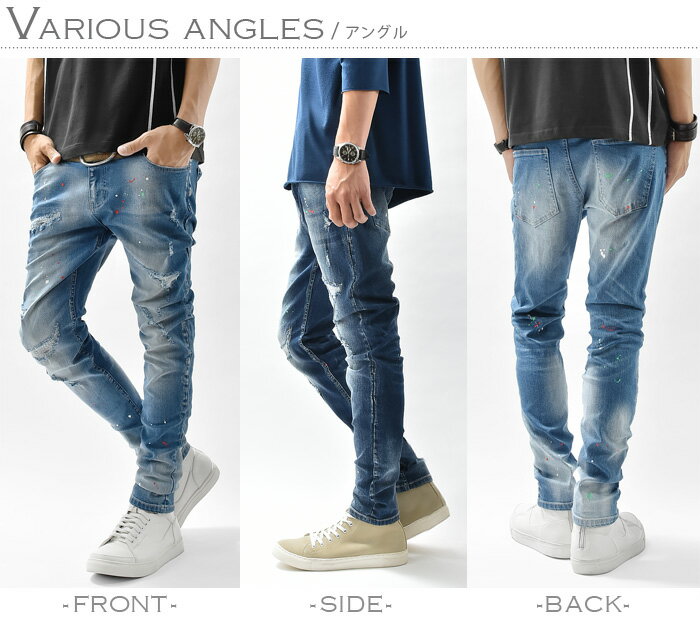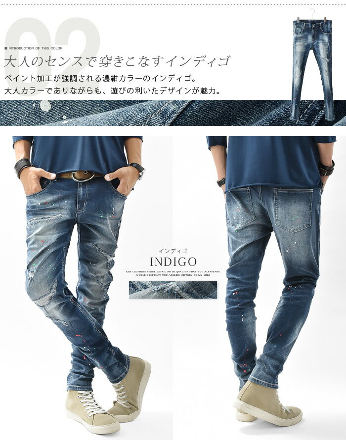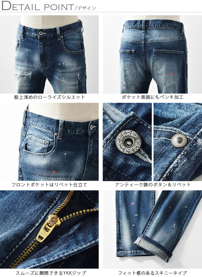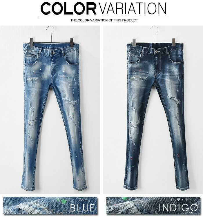 デニム メンズ スキニーデニム ダメージデニム デニムパンツ クラッシュ スキニーパンツ スリム ストレッチ メンズファッション Ash