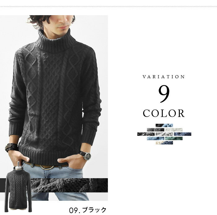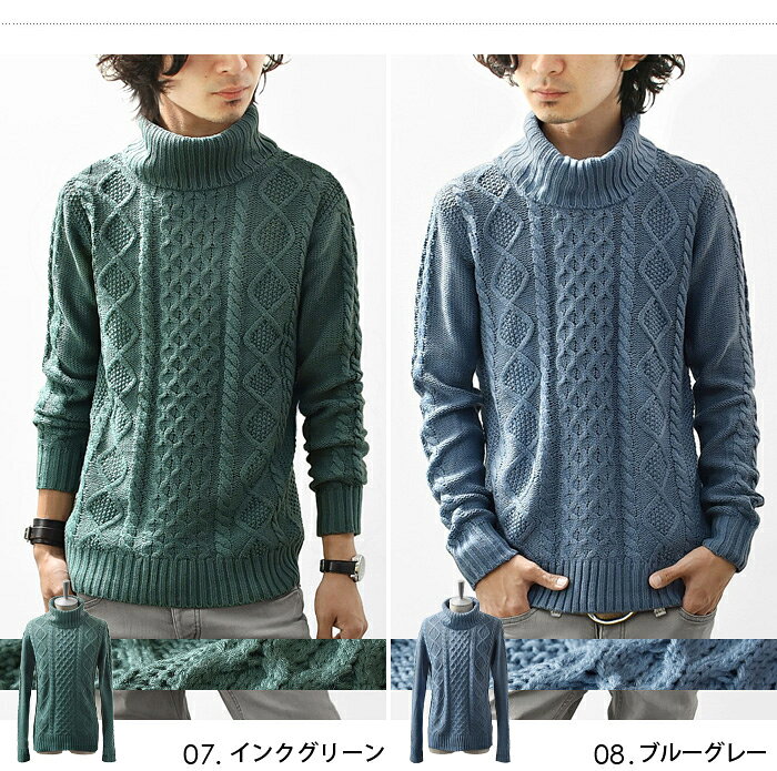 ニット メンズ ケーブル編み ケーブル セーター タートルネック フィッシャーマン 長袖 無地 スリム ショート丈 キレイめ カジュアル 秋 冬 秋冬 服 M L XL