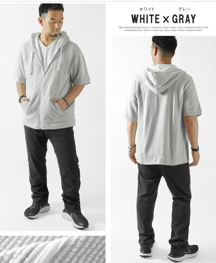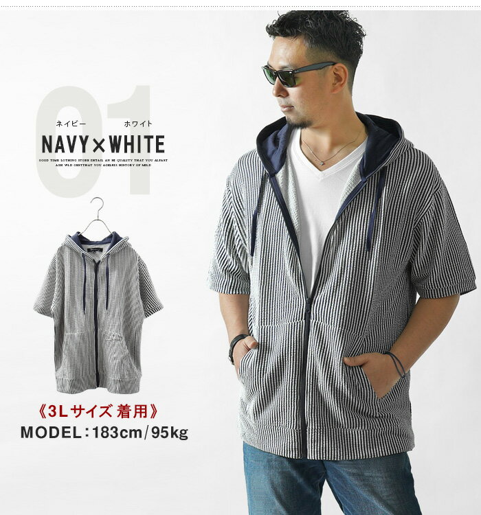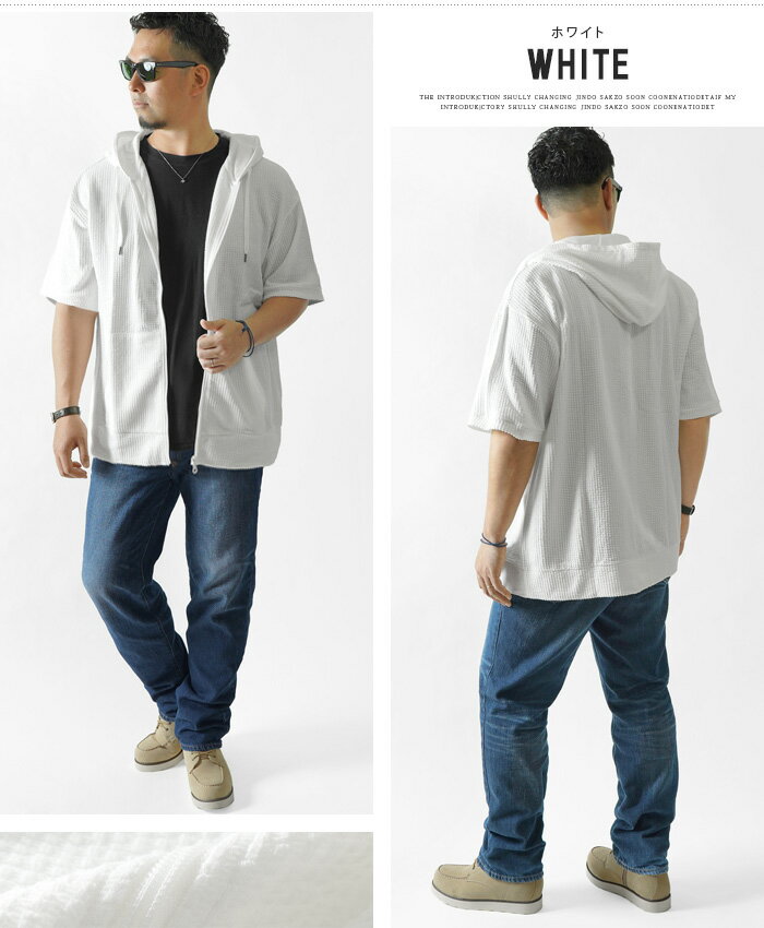 大きいサイズ パーカー 半袖 カットソー ジップアップ キングサイズ ビッグサイズ 大きめ ゆったり 新作 おしゃれ カジュアル