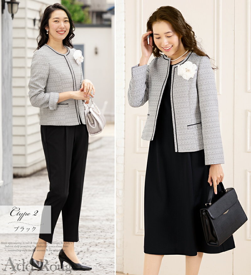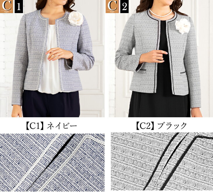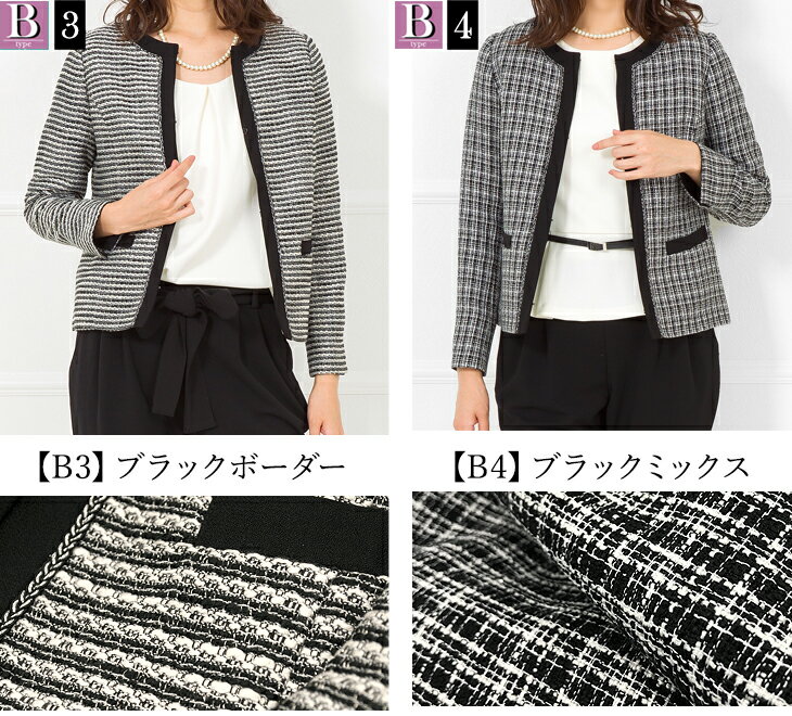 \クーポンご利用で6490円/【35%OFF】ジャケット レディース 入学式 卒業式 ママ 服装 母親 ノーカラー カラーレス 通勤 ビジネス フォーマル 大きいサイズ セレモニー 結婚式 パーティー 入学式 ママ 黒 おしゃれ コーデ 体型カバー