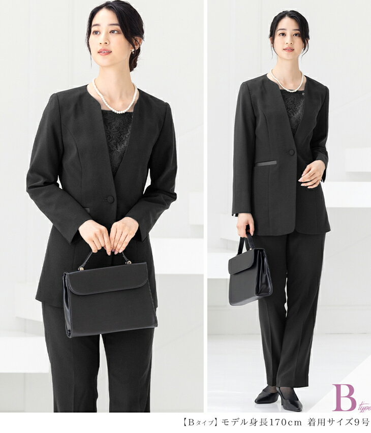 \最大3,000円OFFクーポン配布/【40%OFF】喪服 レディース ブラックフォーマル パンツ 上下セット 大きいサイズ オールシーズン 洗える 七五三 ママ スーツ 母親 フォーマルスーツ 冠婚葬祭 セットアップ ゆったり 体型カバー 試着チケット対象