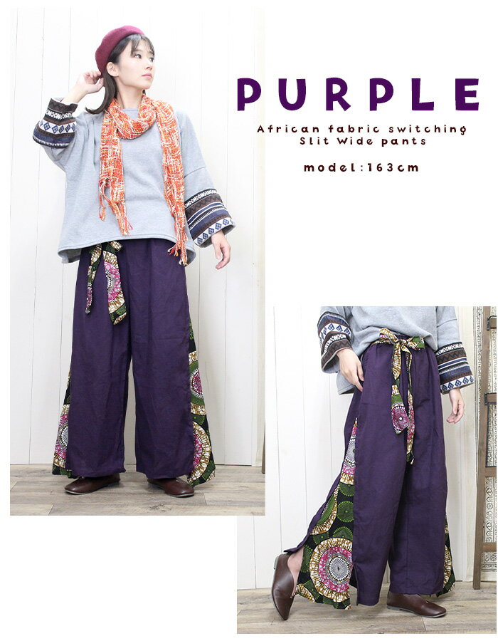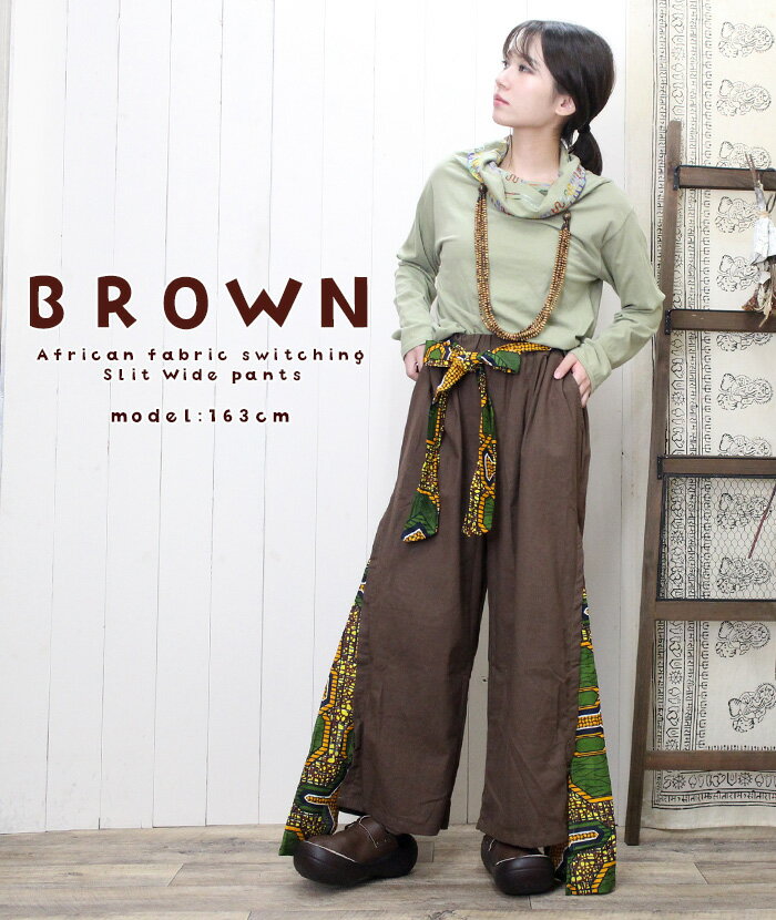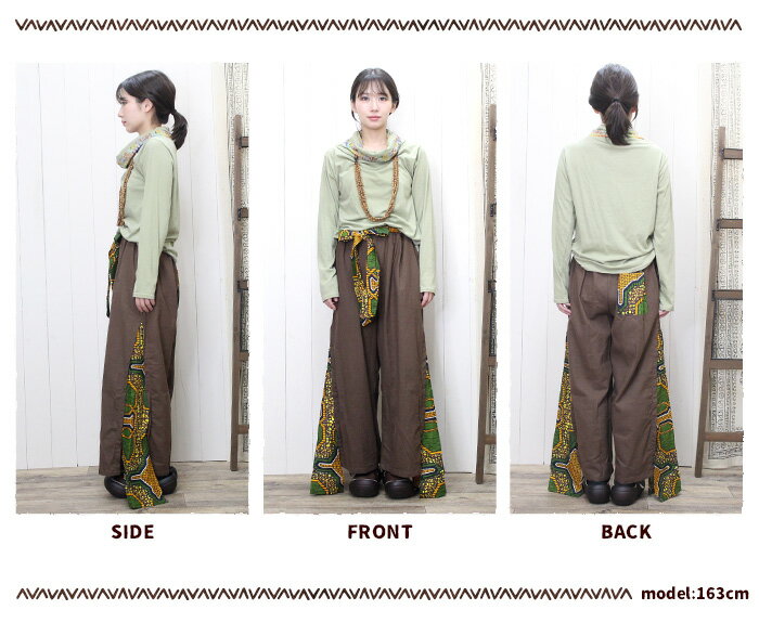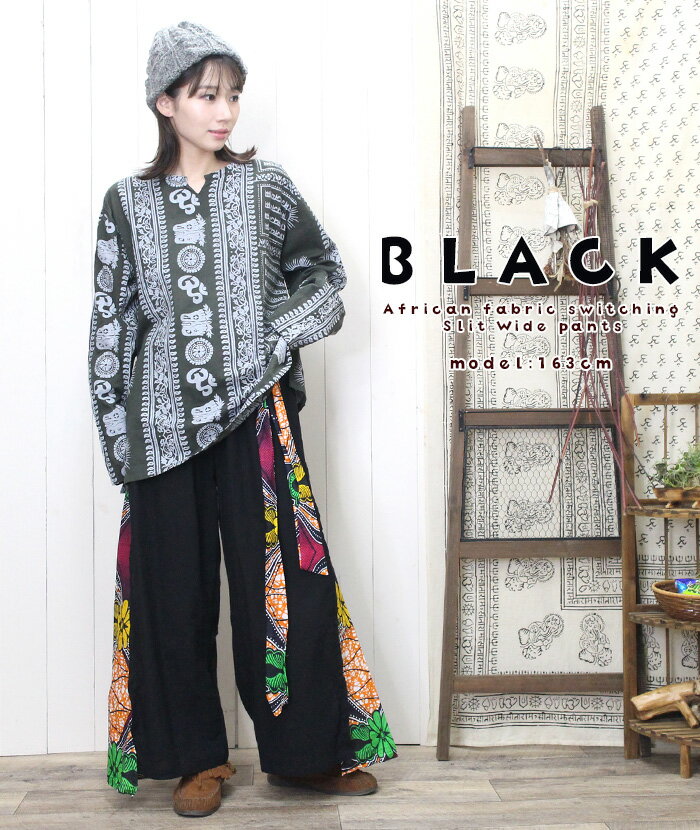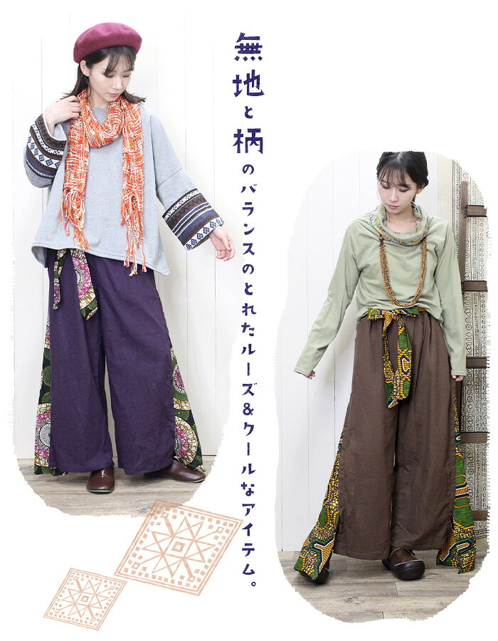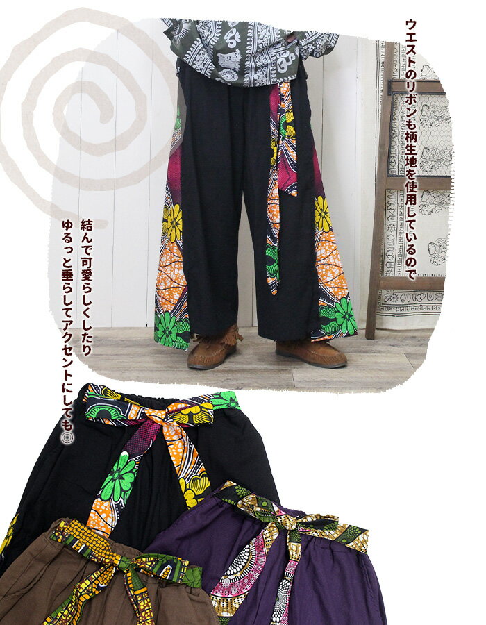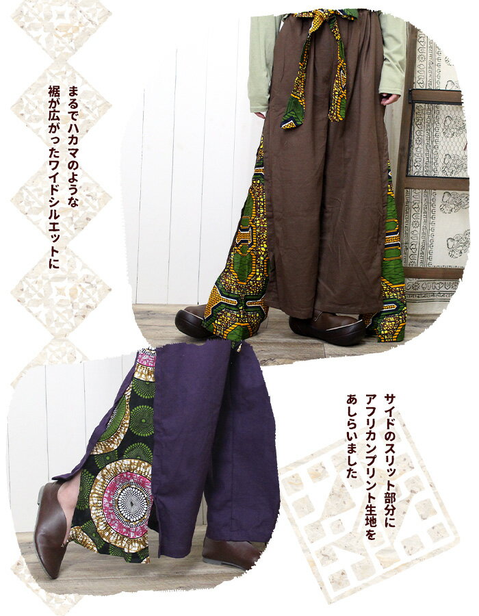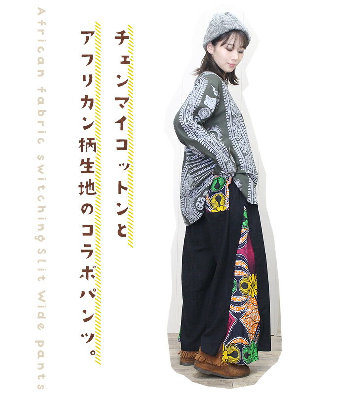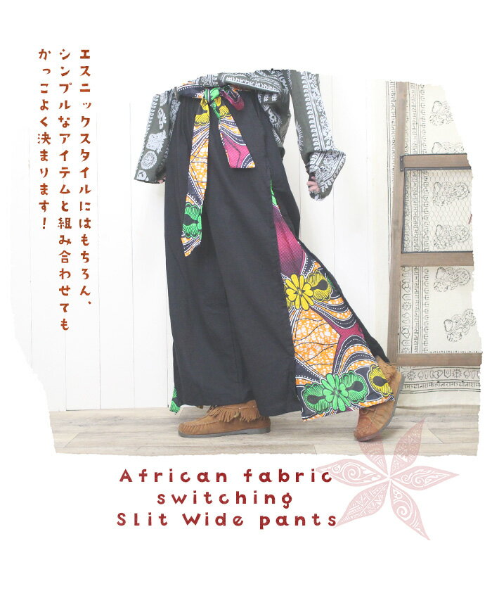パンツ ロング丈 レディース メンズ ユニセックス SPT アフリカン生地切り替えスリット ワイドパンツ アジアン ファッション エスニック ファッション ワイドパンツ レディース 柄 フレアパンツ ethnic wide pants ladies