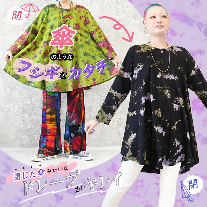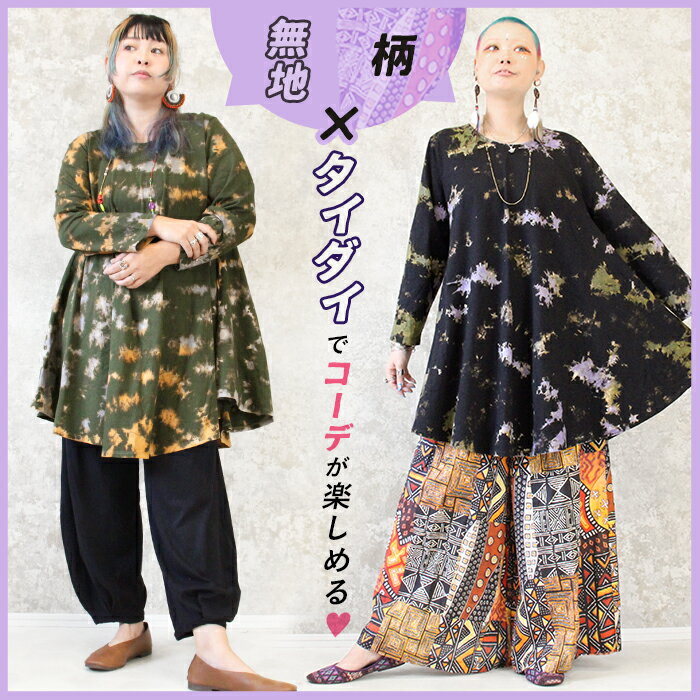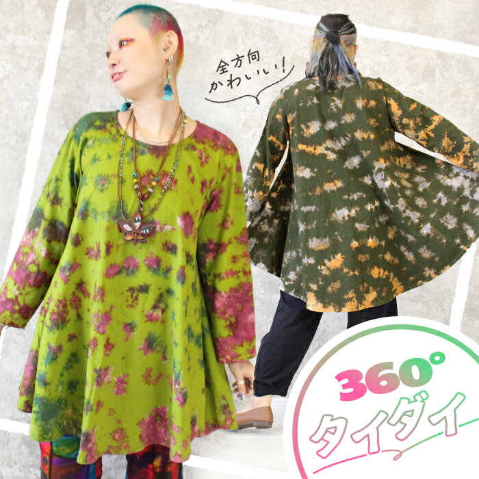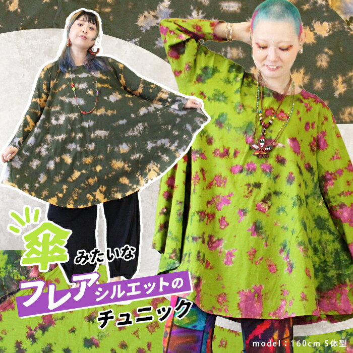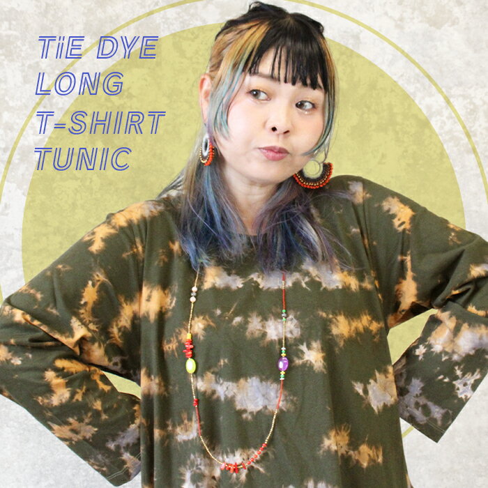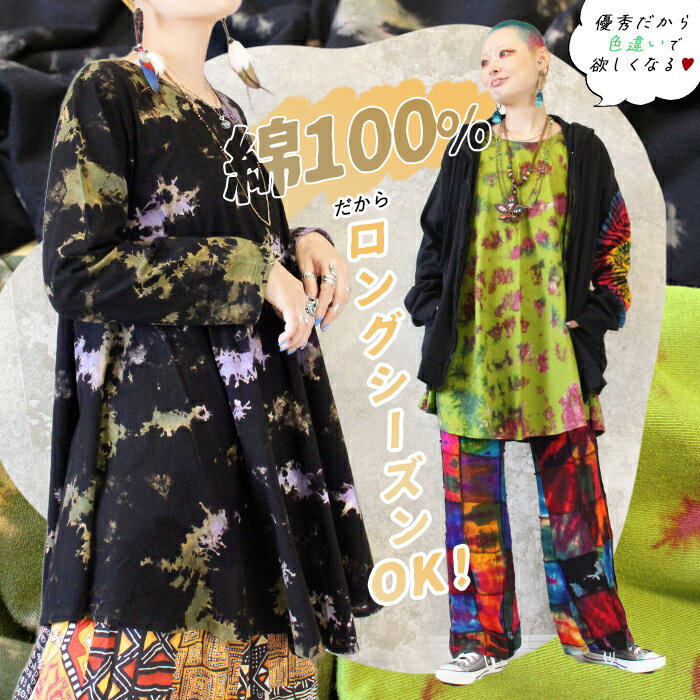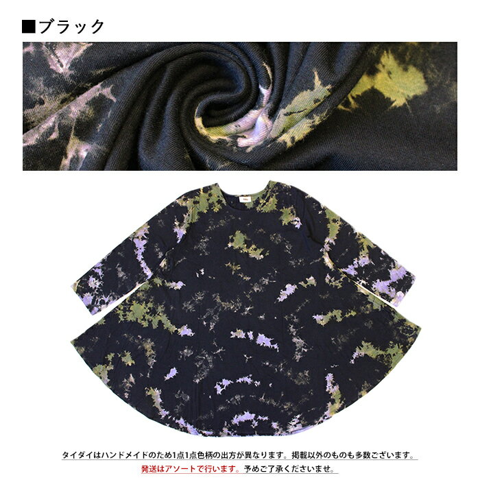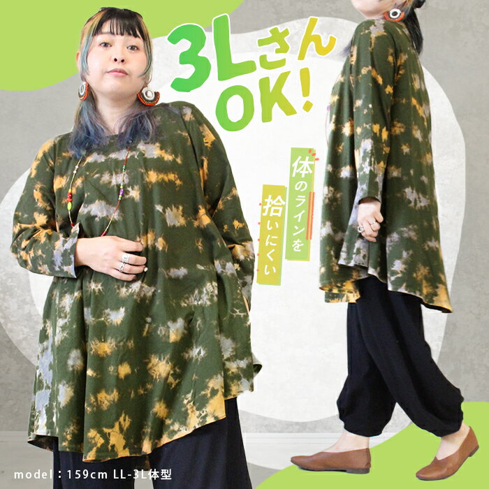 チュニック 長袖 レディース 大きいサイズ 秋 冬 春 Aライン カットソー レディース 綿100 コットン 薄手 タイダイ 大きめ フレアワンピース ゆったり 体型カバー XL 3L 4L おしゃれ かわいい *2-1t