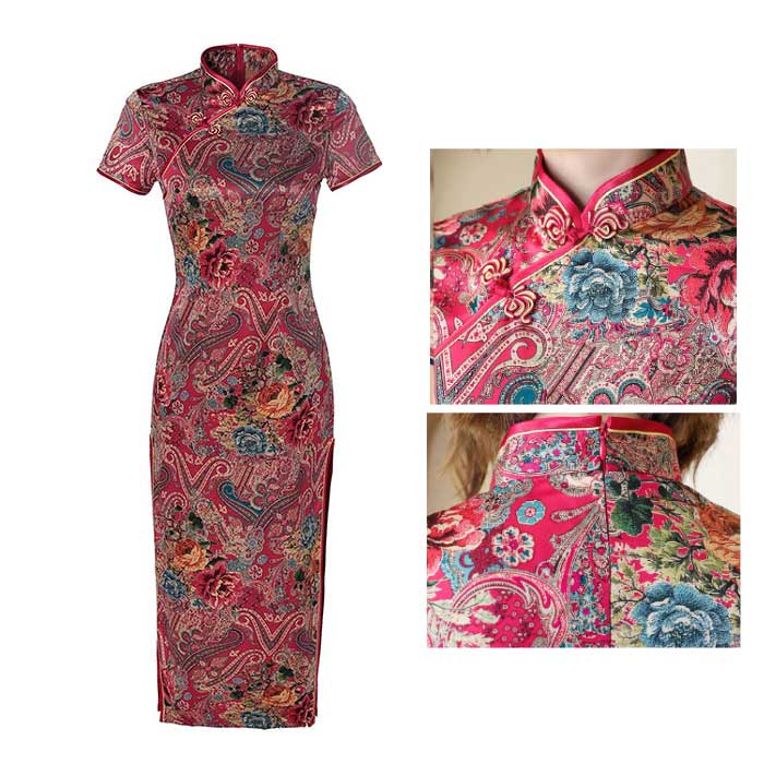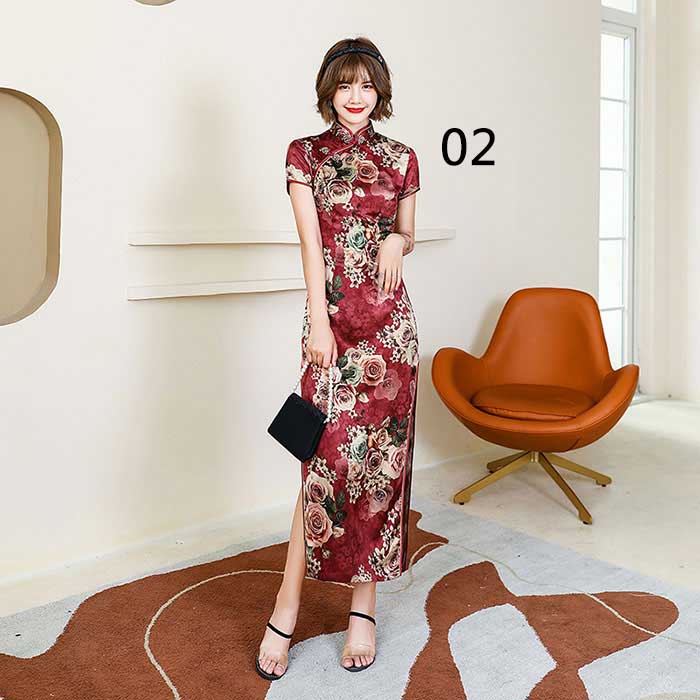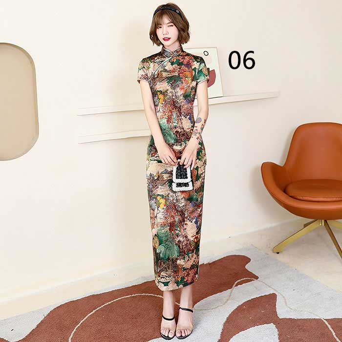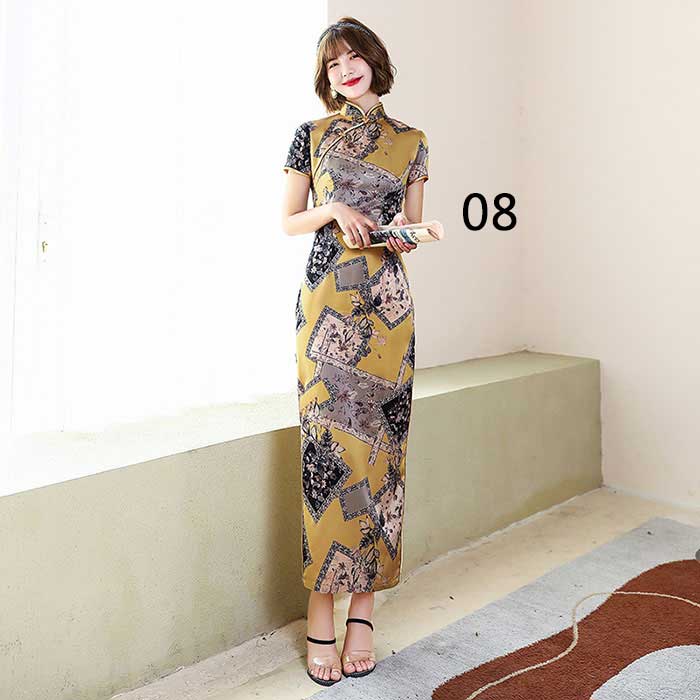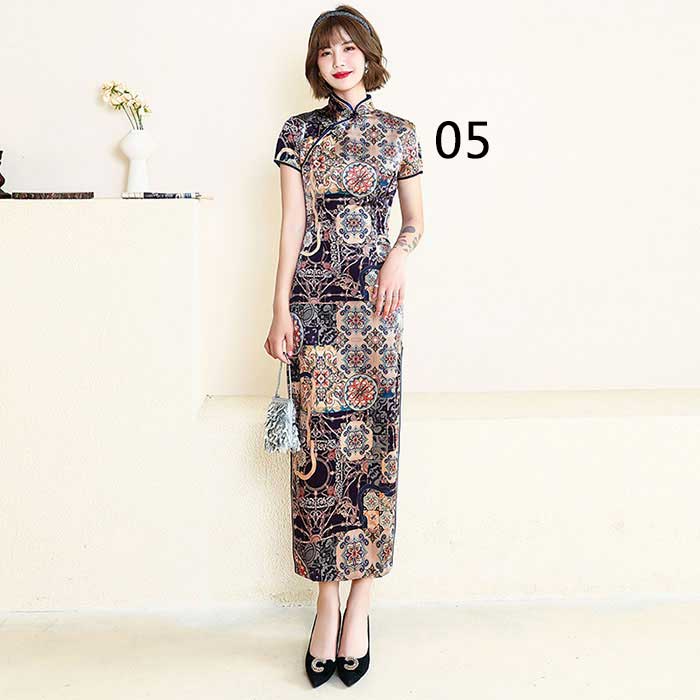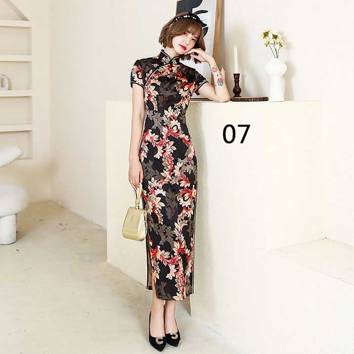ワンピース 半袖 花柄 チャイナドレス チーパオ ロング丈 中華ドレス チャイナ服 全8色 コスプレ 中華風 二次会 パーティー ロングドレス チャイナ風 ロングワンピース 中国風 パーティードレス 総柄 細身 スリット入り 華流コスプレ セクシー ママ 30代 40代 50代
