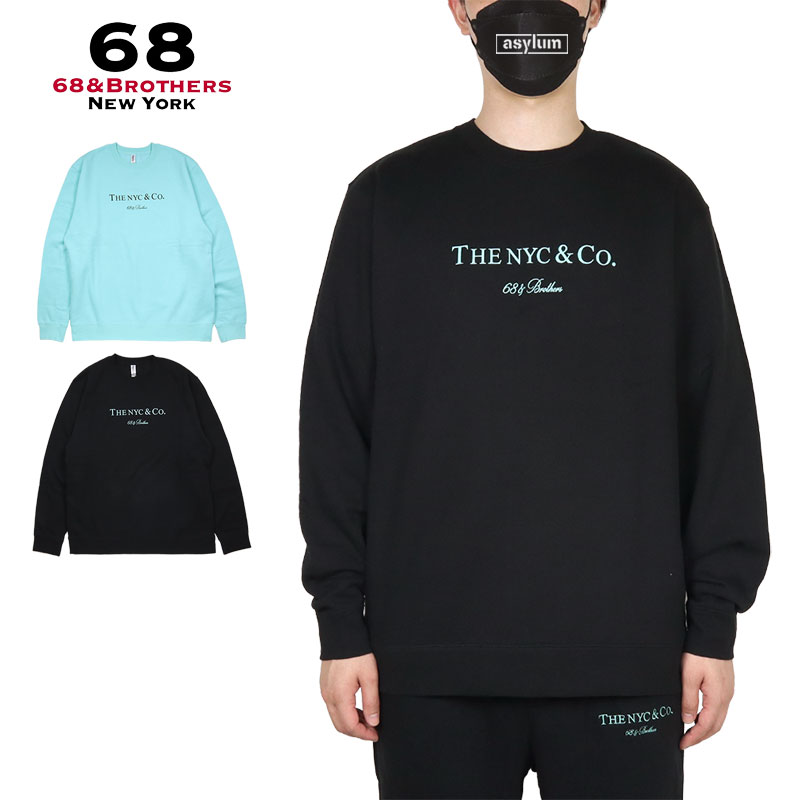 68&BROTHERS トレーナー クルーネック 68&ブラザーズ スウェット メンズ 男性 おしゃれ ブランド おしゃれ かっこいい 春 秋 冬 プレゼント ストリート ビッグシルエット 68bros007 アクア ブラック M L XL