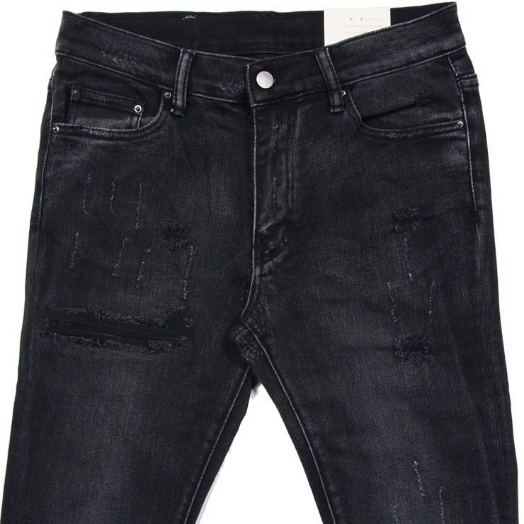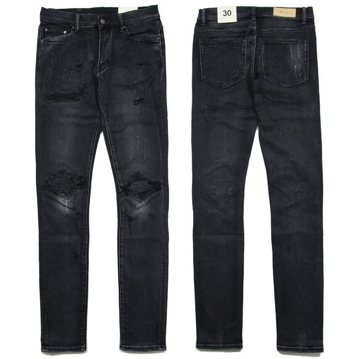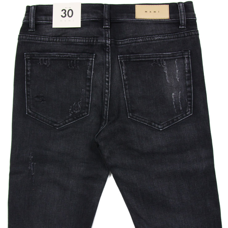 【MAX80%OFF♪誕生祭SALE 最大15%OFFクーポン配布中】mnml ミニマル デニムパンツ スキニーパンツ スキニージーンズ クラッシュデニム ストレッチ スリム ダメージ かっこいい おしゃれ メンズ ブランド 大きいサイズ X162 ブラック 28 29 30 32 34 36 38